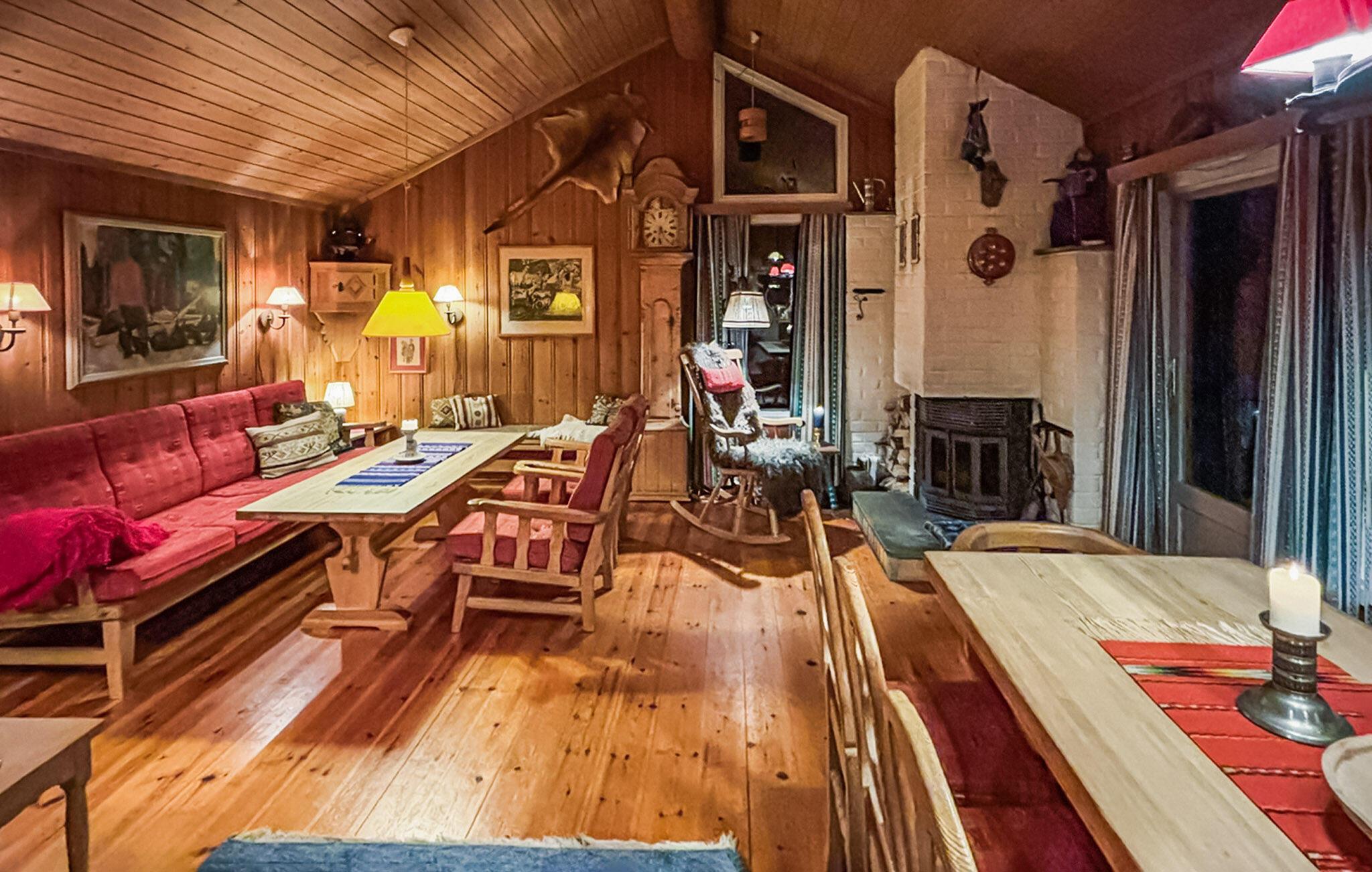 Oplev afslappende dage i dette hyggelige feriehus med klassisk skandinavisk charme og en storslået udsigt over skove og bjerge. Træd indenfor og bliv budt velkommen af det varme træinteriør. Tænd op i brændeovnen og sæt jer til rette i en af de komfortable lænestole. Opholdsstuen er møbleret med traditionelle træmøbler, gennemtænkte detaljer og stemningsfuld belysning. Tilbered lækre feriemåltider i det veludstyrede køkken. Nyd måltiderne sammen ved det store spisebord og beundr udsigten over den omkringliggende skov gennem de store vinduer. Tilbring tid på den rummelige terrasse og lad blikket vandre over landskabet. Sid i solen og lyt til vindens susen gennem træerne. Om aftenen kan I tilberede et let måltid ved bålet og opleve den særlige duft af træ og natur. Ejendommen ligger i et roligt område og tilbyder masser af plads til afslapning og leg for børn. Tag på vandreture gennem skovene omkring Øverbygda og følg stierne langs Klarälven. Observer elge og hjorte i deres naturlige habitat eller padle langs den rolige flod. Om vinteren byder området på fremragende muligheder for langrend eller sneskovandring. Besøg den nærliggende by Torsby med dens charmerende butikker og caféer, eller udforsk regionens fredfyldte søer.