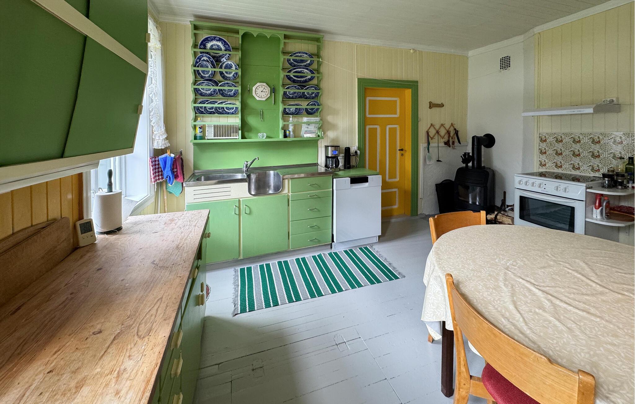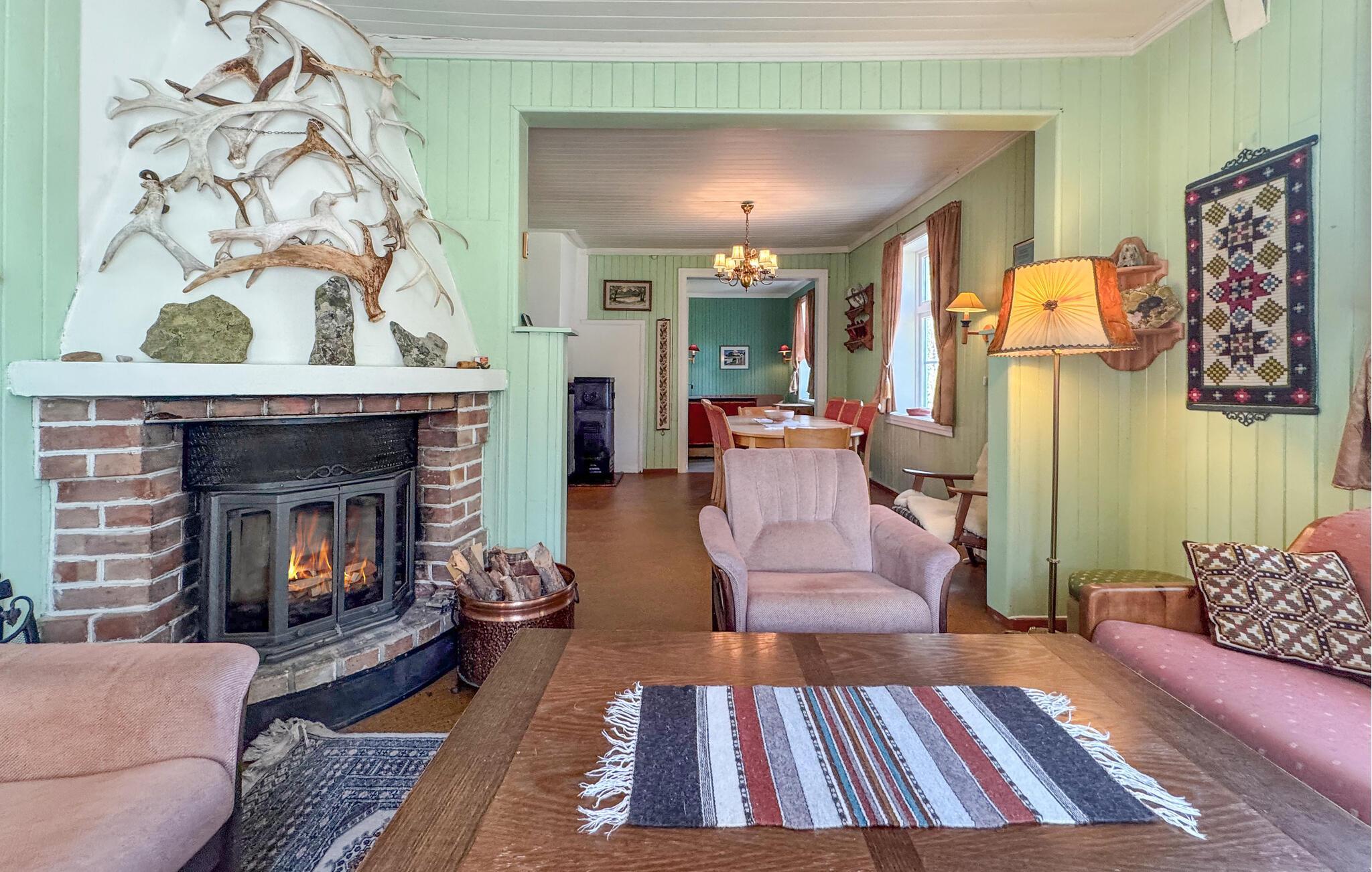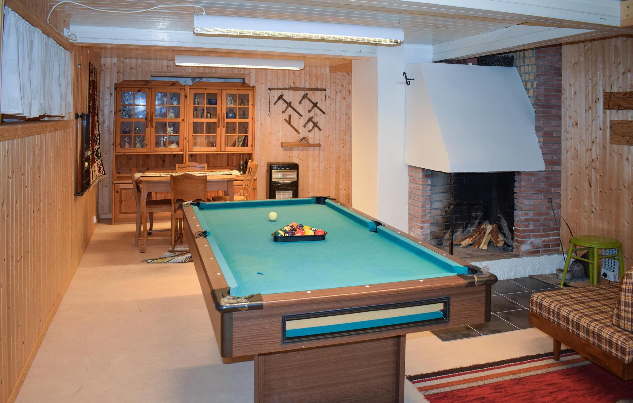 Dette charmerende hus forener rustik stil med et strejf af nostalgi på en harmonisk måde, så I hurtigt føler jer hjemme. Træbeklædte rum i forskellige nuancer, komfortable sofaer og lænestole samt den imponerende brændeovn skaber en atmosfære, der både er afslappende og opløftende. Tilbered lækre måltider sammen, og server et godt glas vin dertil. Har I lyst til aktivitet, kan I tage et slag billard eller bordtennis.