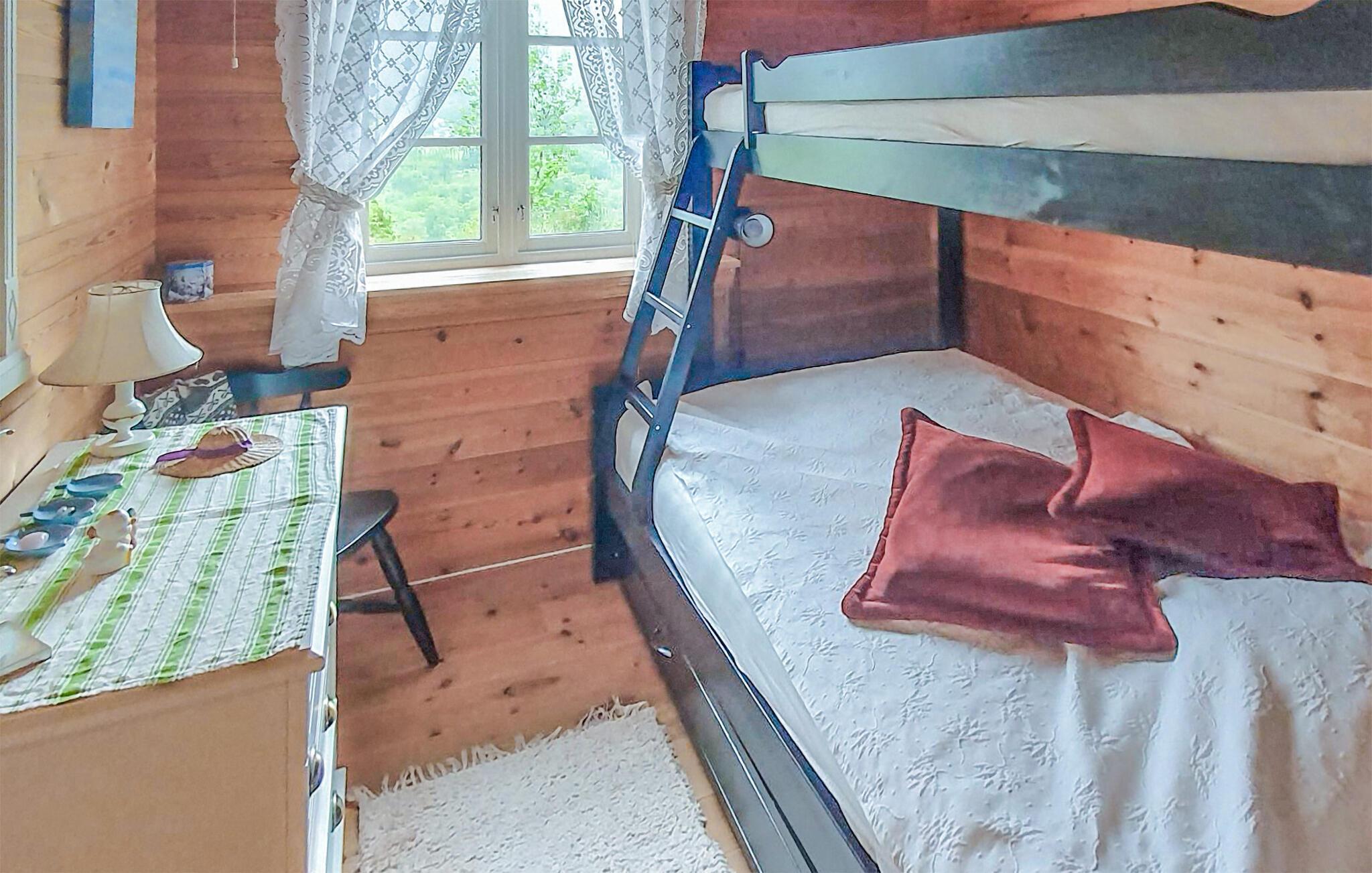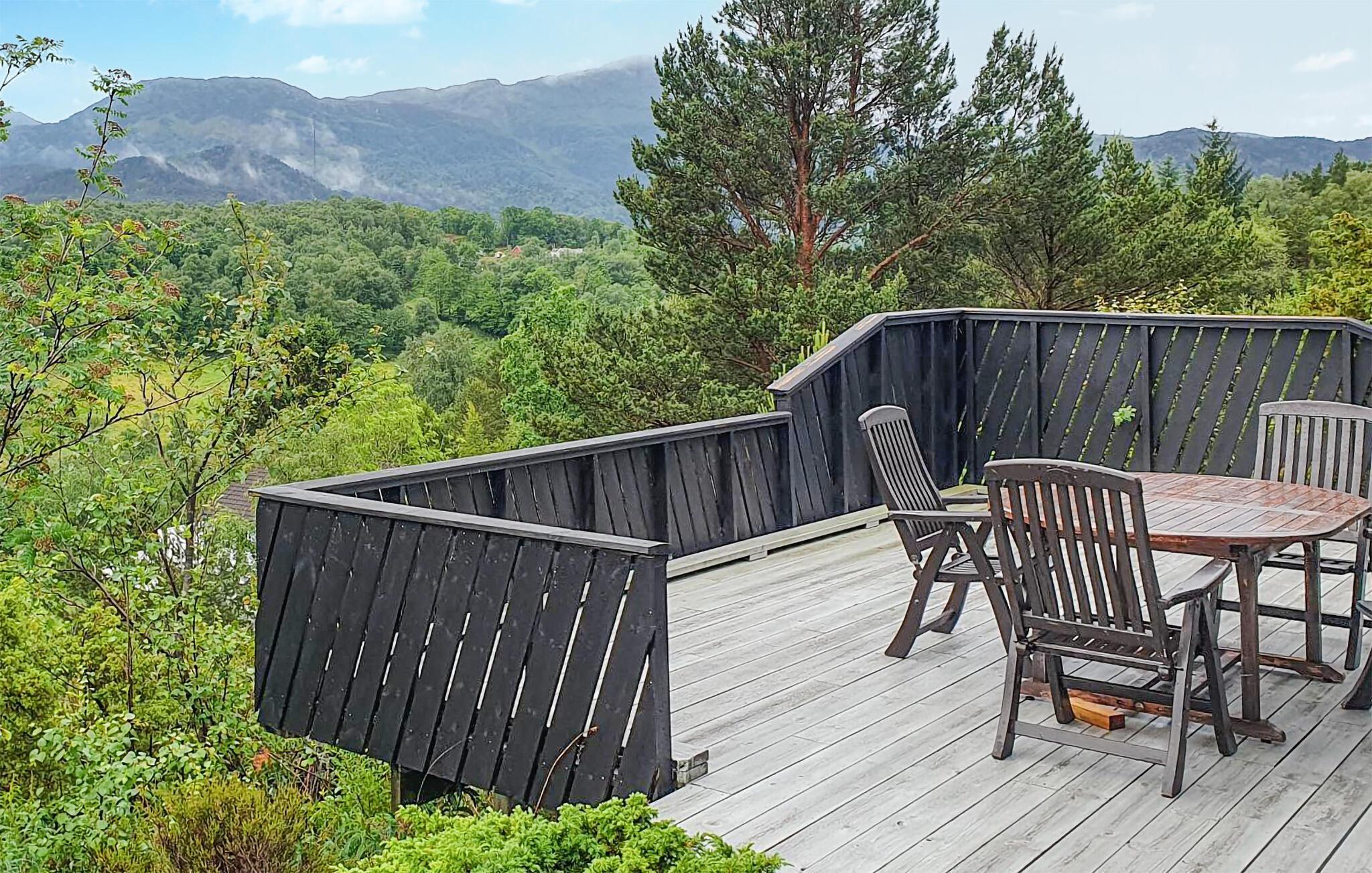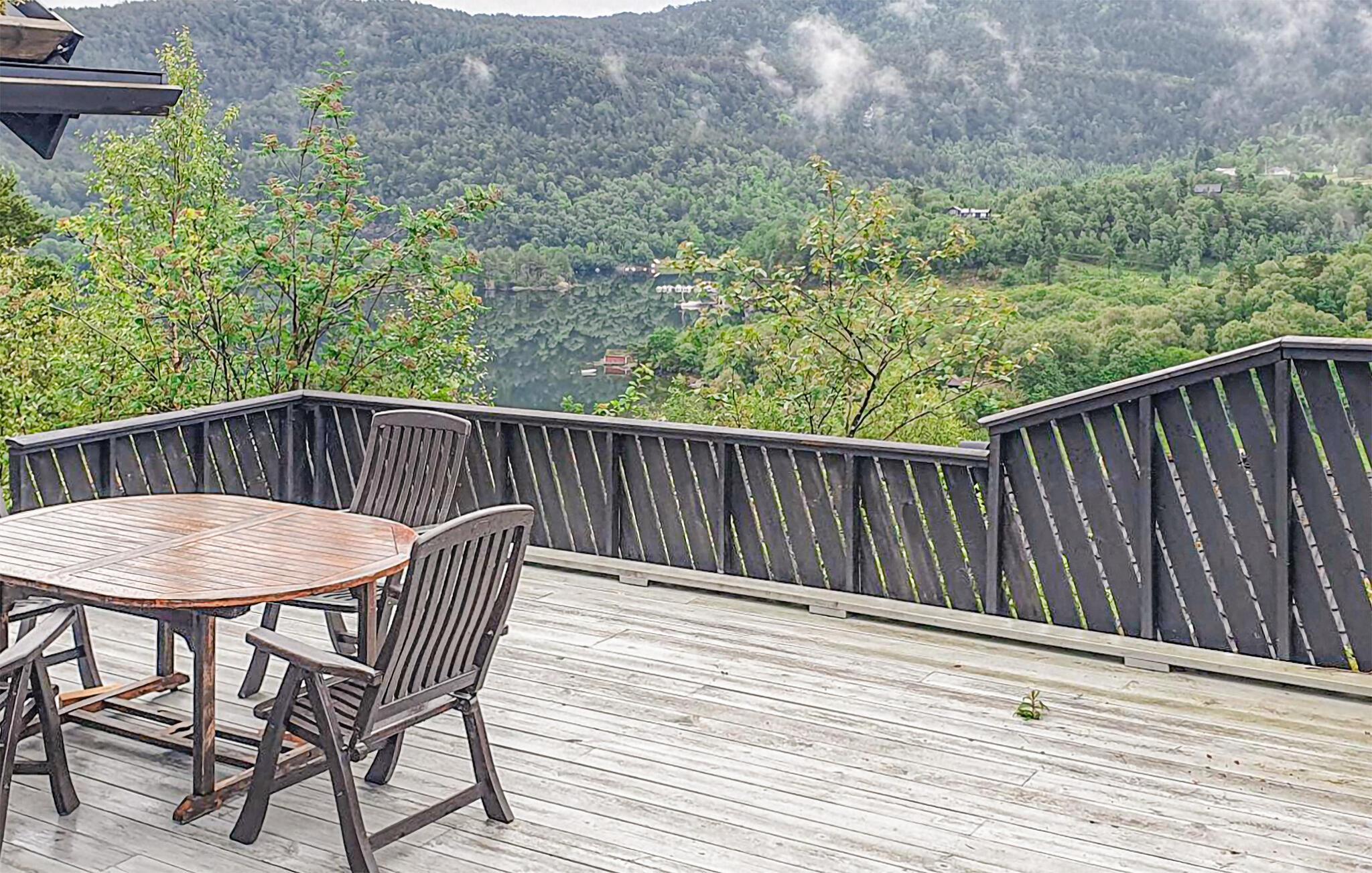 Dette idylliske feriehus på Bjørnafjorden har et rummeligt udeområde og en betagende udsigt over fjorden, så her er det optimale sted til jeres næste familieferie. Om morgenen kan I begynde dagen med morgenmad på terrassen, mens I ser ud over den funklende fjord. I har også en vidunderlig udsigt over de rolige omgivelser ved det indendørs spisebord.