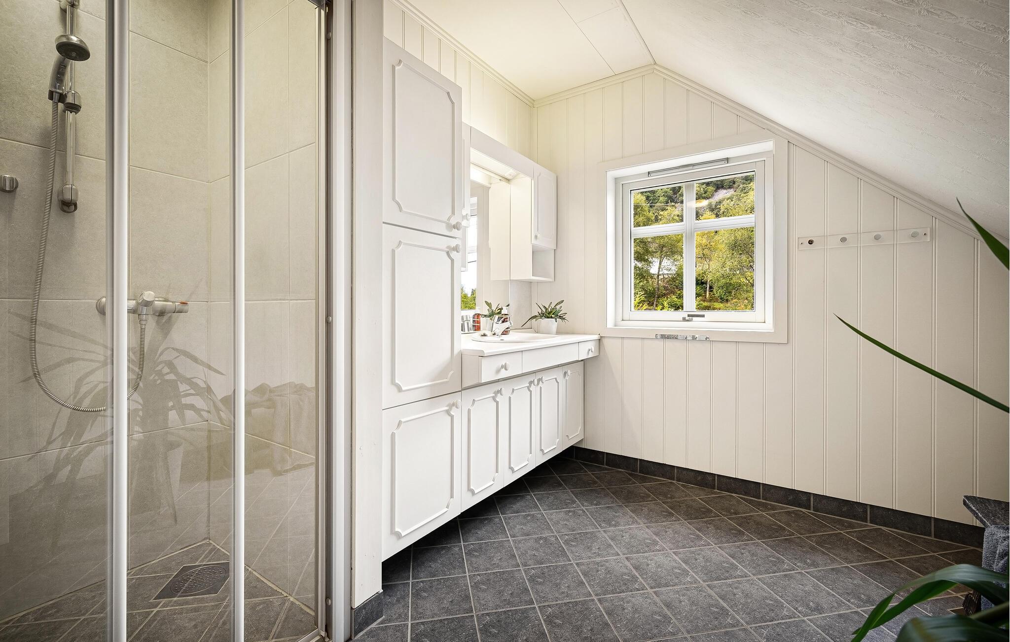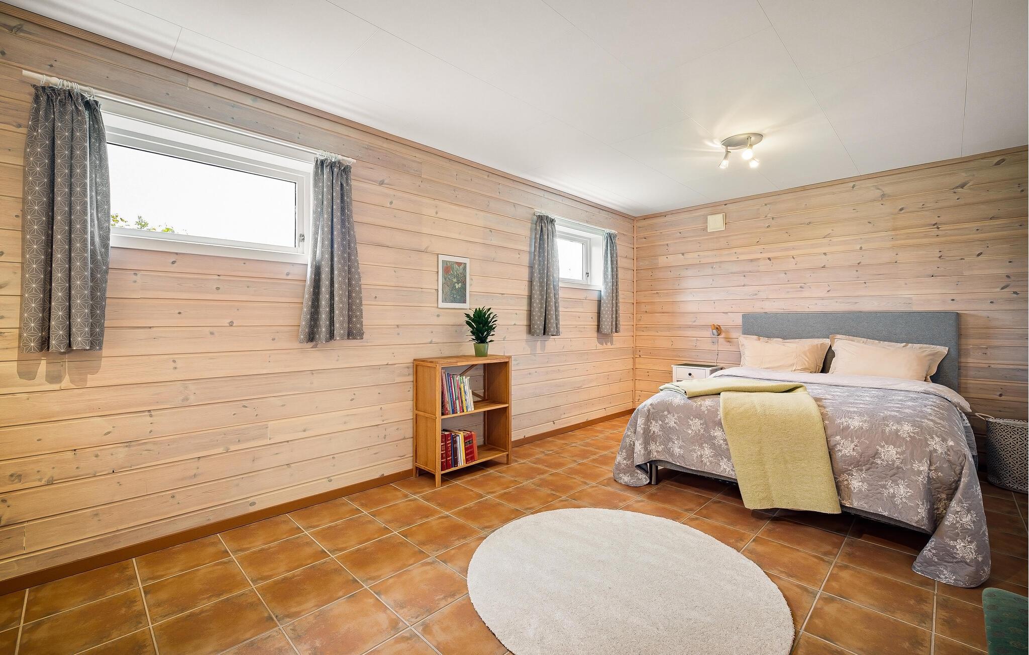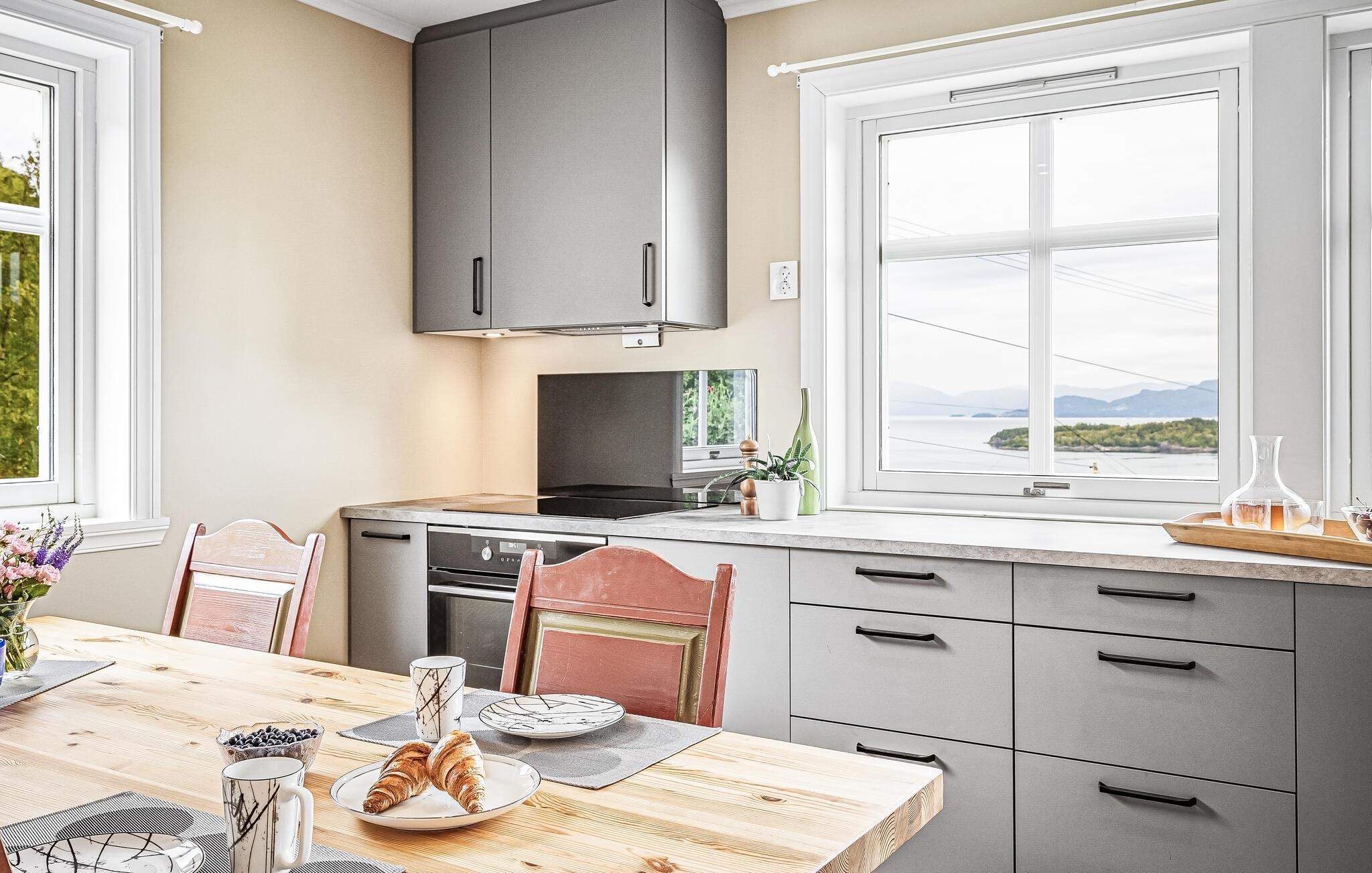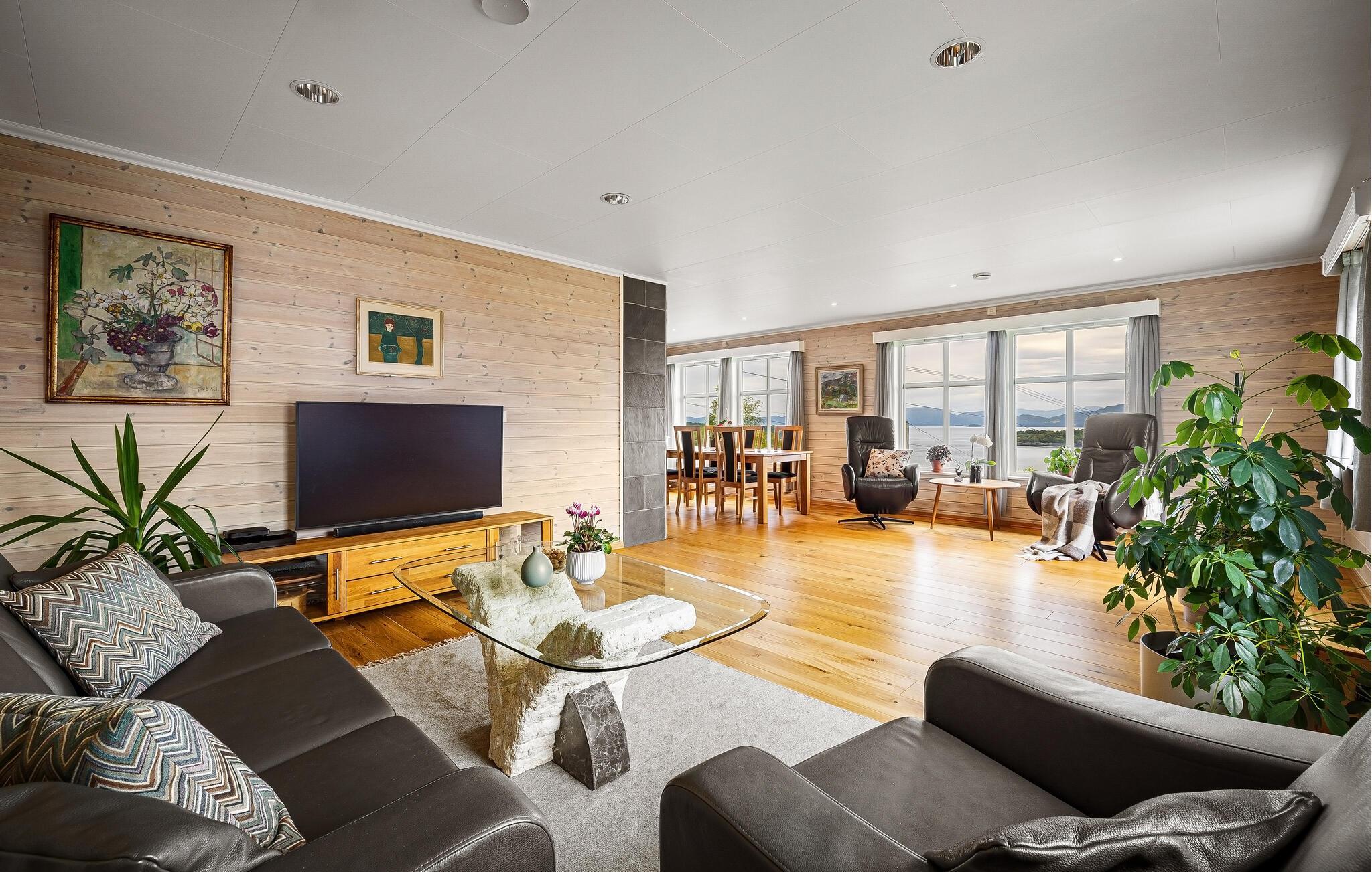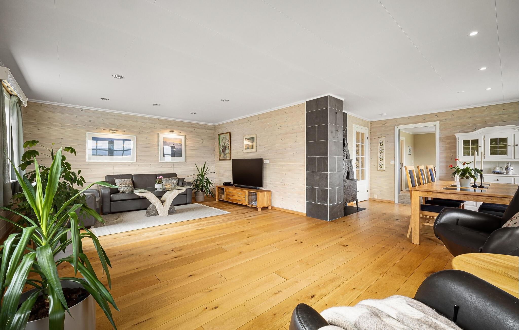 Nyd afslappende dage i rolige omgivelser, langt væk fra hverdagens travlhed. Dette stilfulde feriehus giver jer den ideelle kombination af komfort, natur og panoramaudsigt. Den rummelige opholdsstue byder jer velkommen med lyse trævægge, store vinduer og komfortable siddeområder. Slap af i en behagelig lænestol med udsigt over fjorden, eller tilbring aftenerne med at lave mad sammen i det store køkken med spisebord.