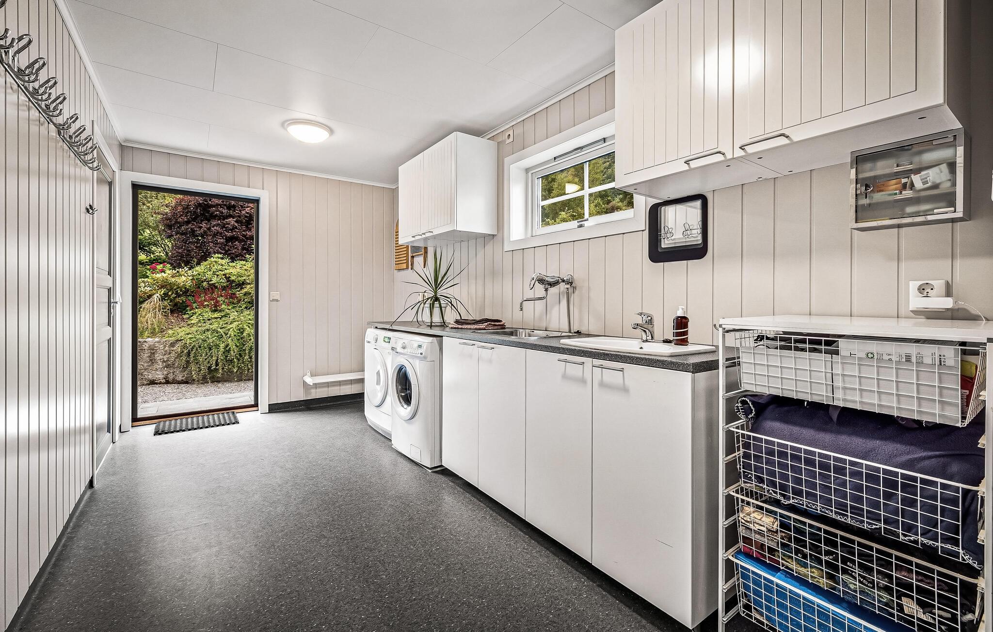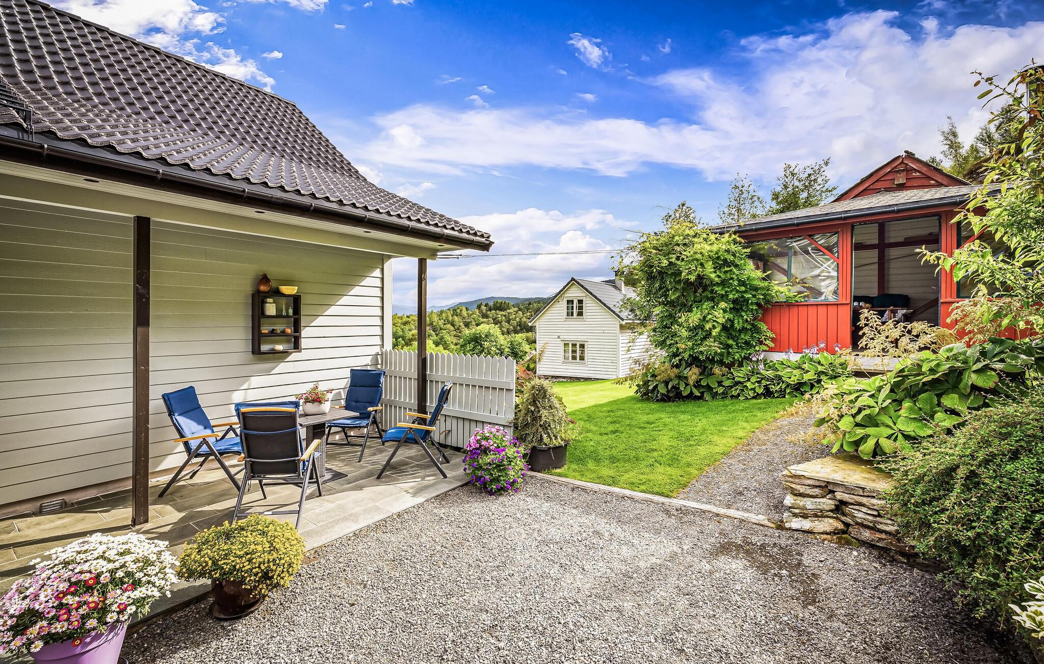 Udnyt den store have med dens velholdte græsplæne. Tilbring hyggelige timer i den overdækkede grillhytte med pejs, eller sæt jer godt til rette på terrassen. Bevæg jer frit rundt på den store grund med dens afsidesliggende pladser. Nyd freden og roen, og lad blikket vandre over den glitrende fjord.