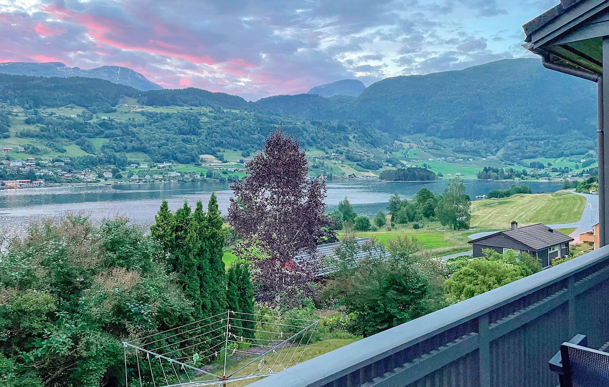 Der er en vidunderlig fjordudsigt fra huset, og flere terrasser med fuld solskin.
