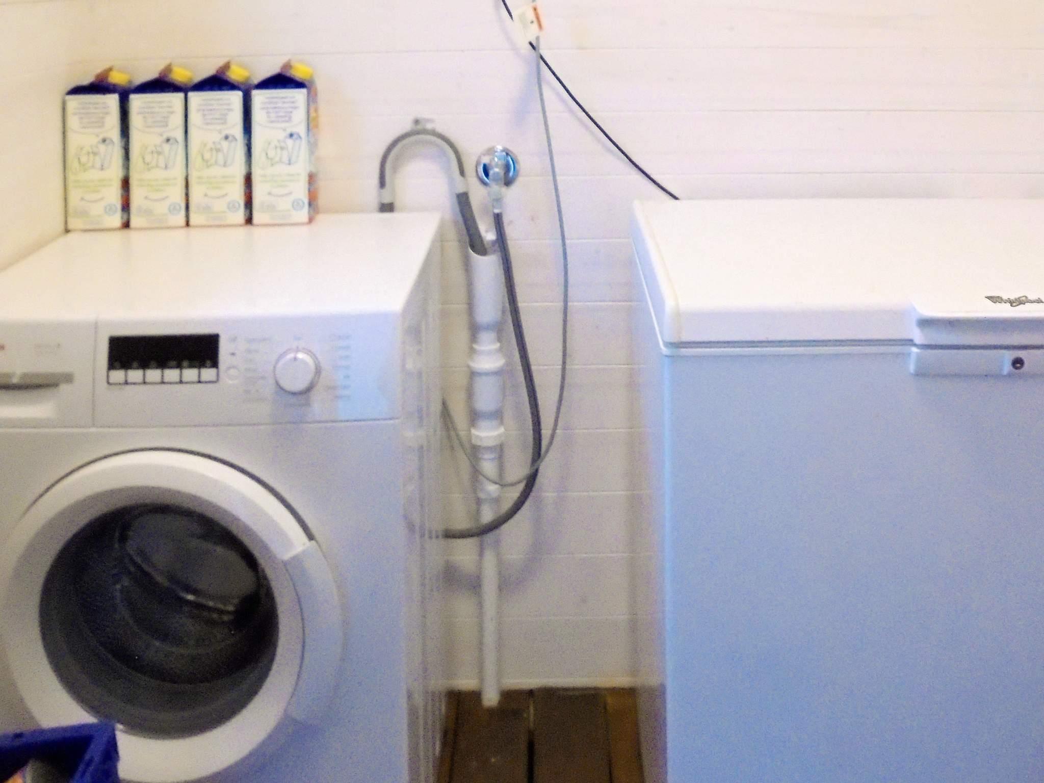 Feriehuset har god standard, og er koselig innredet. Vaskemaskinen og fryser står i boden ved inngangspartiet.