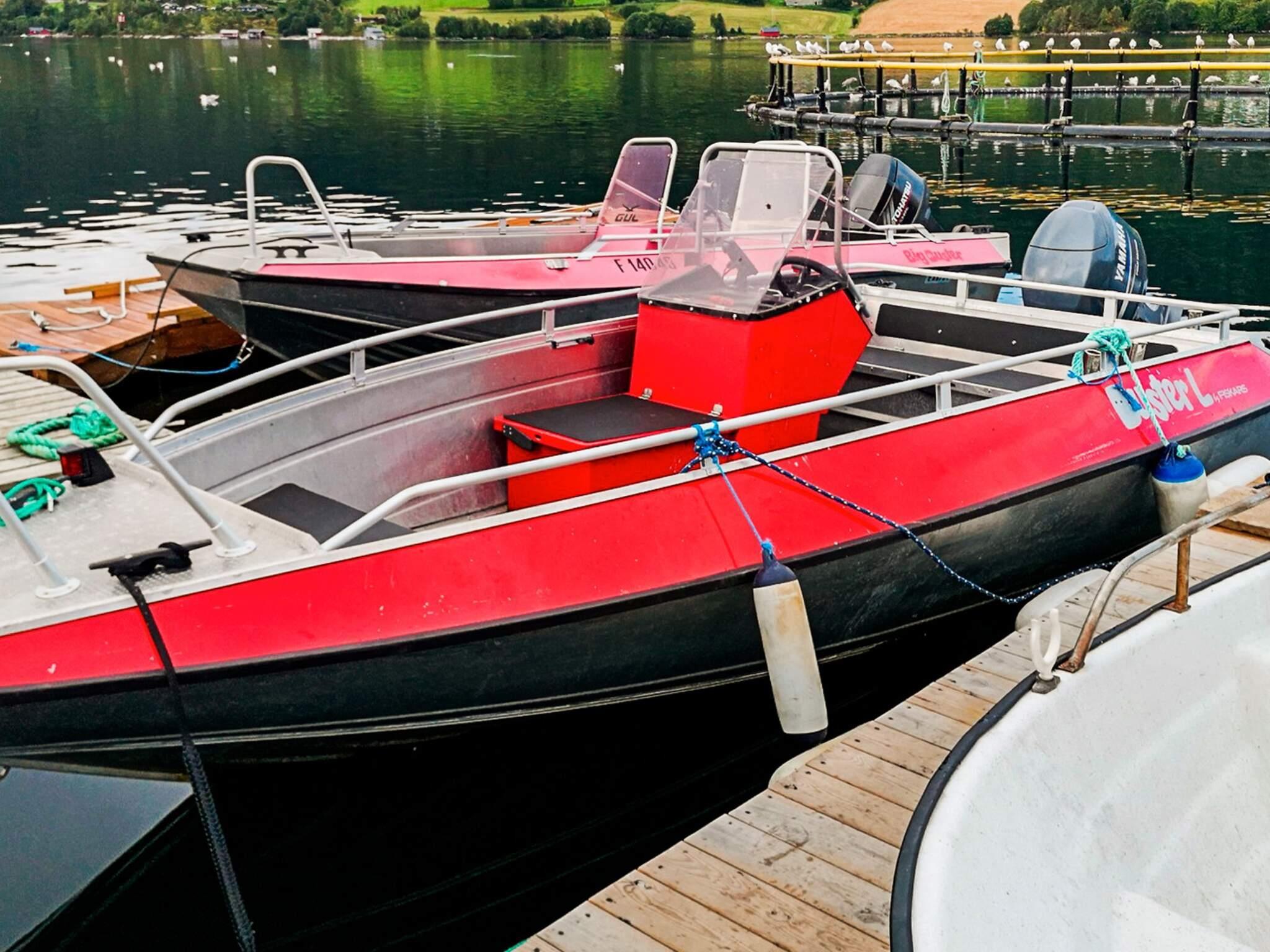 Båtene ligger ved en flytebrygge i småbåthavnen, 60 m unna. De tre største båtene har innenbords motorer og lukket kabin. Gode fiskemuligheter i området både innover i fjorden og lenger utover. Flytevester er inklusiv i båtleien. Fiskefileteringsbenk i naustet med vann og lys, og utendørs ligger 60 m unna.