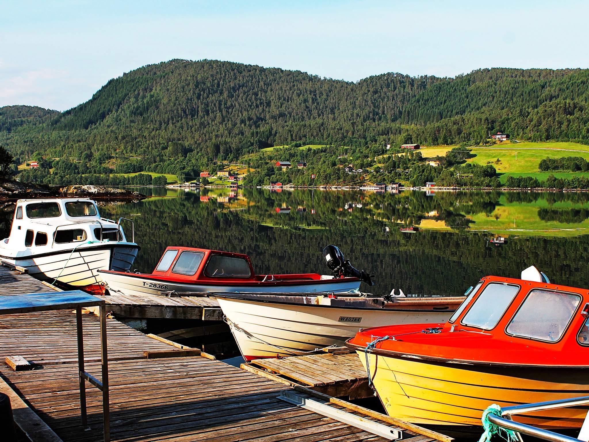 Båtene ligger ved flytebrygge i småbåthavnen, 100 m unna. De tre største båtene har innenbords motorer og lukket kabin. Gode fiskemuligheter i området både innover i fjorden og lenger utover. Flytevester er inklusiv i båtleien. Fiskefileteringsbenk i naustet med vann og lys, og utendørs, 100 m unna.