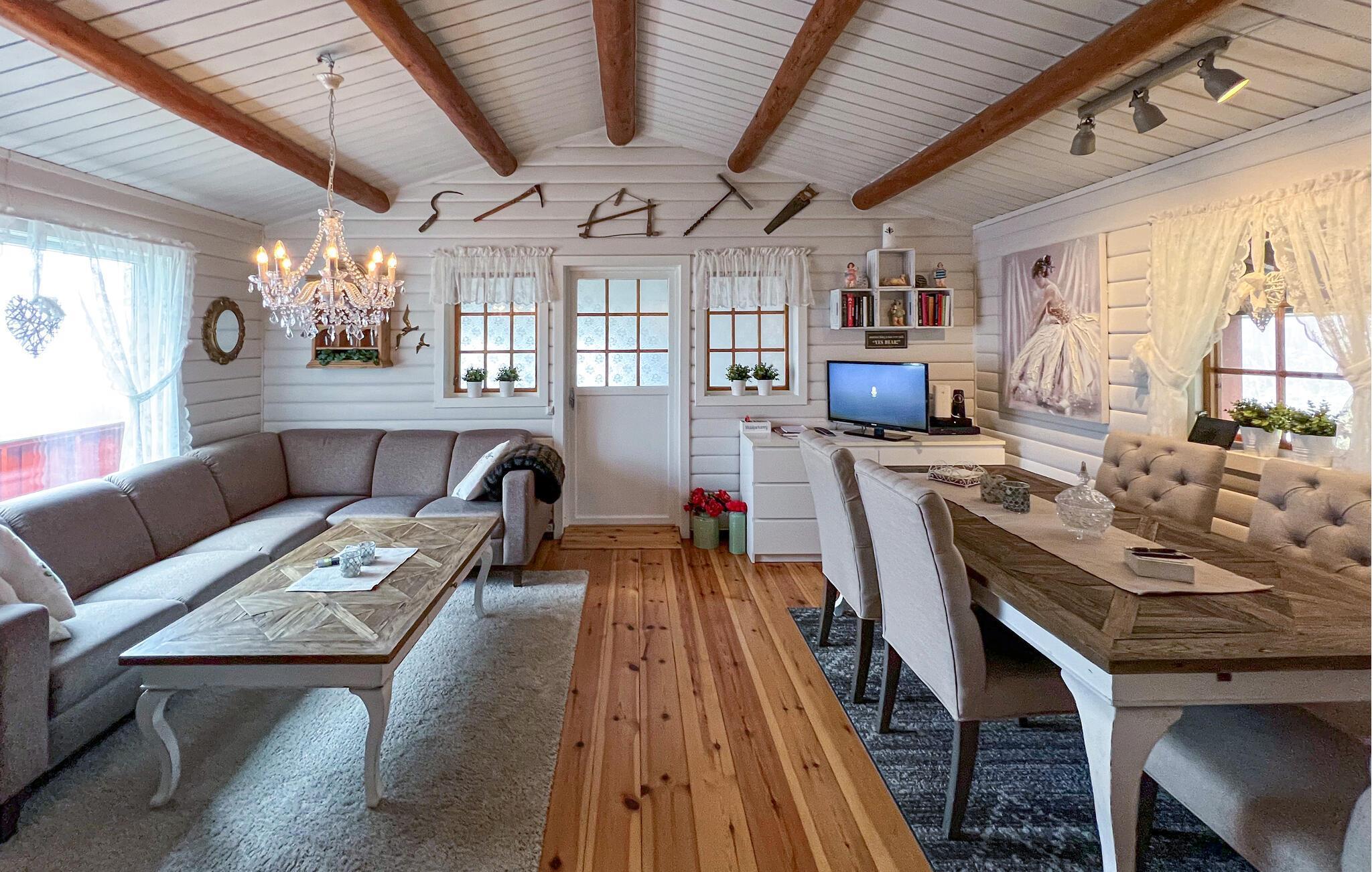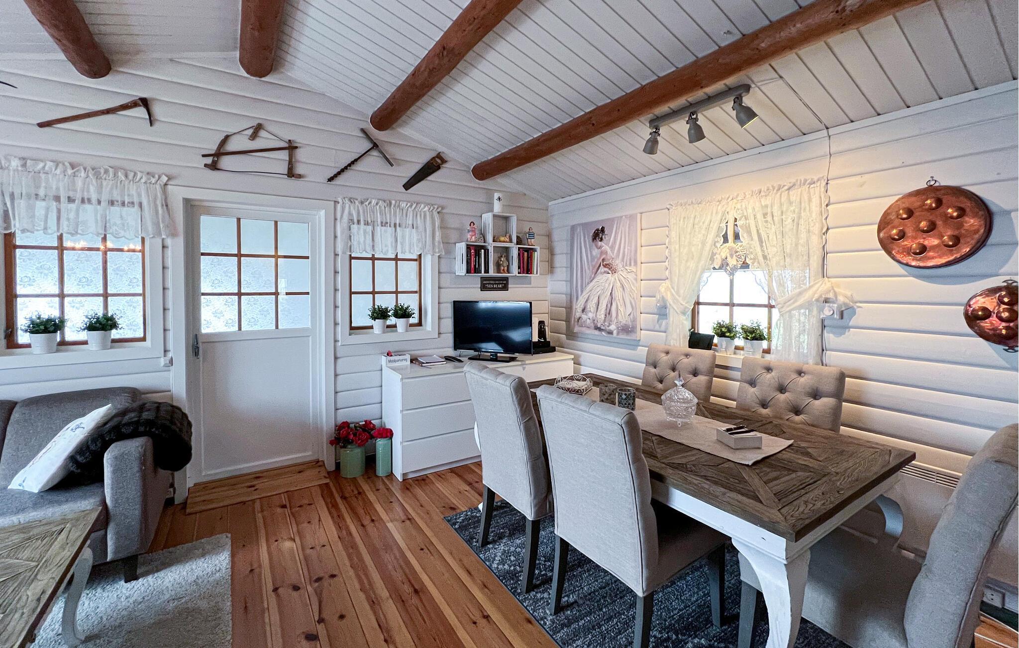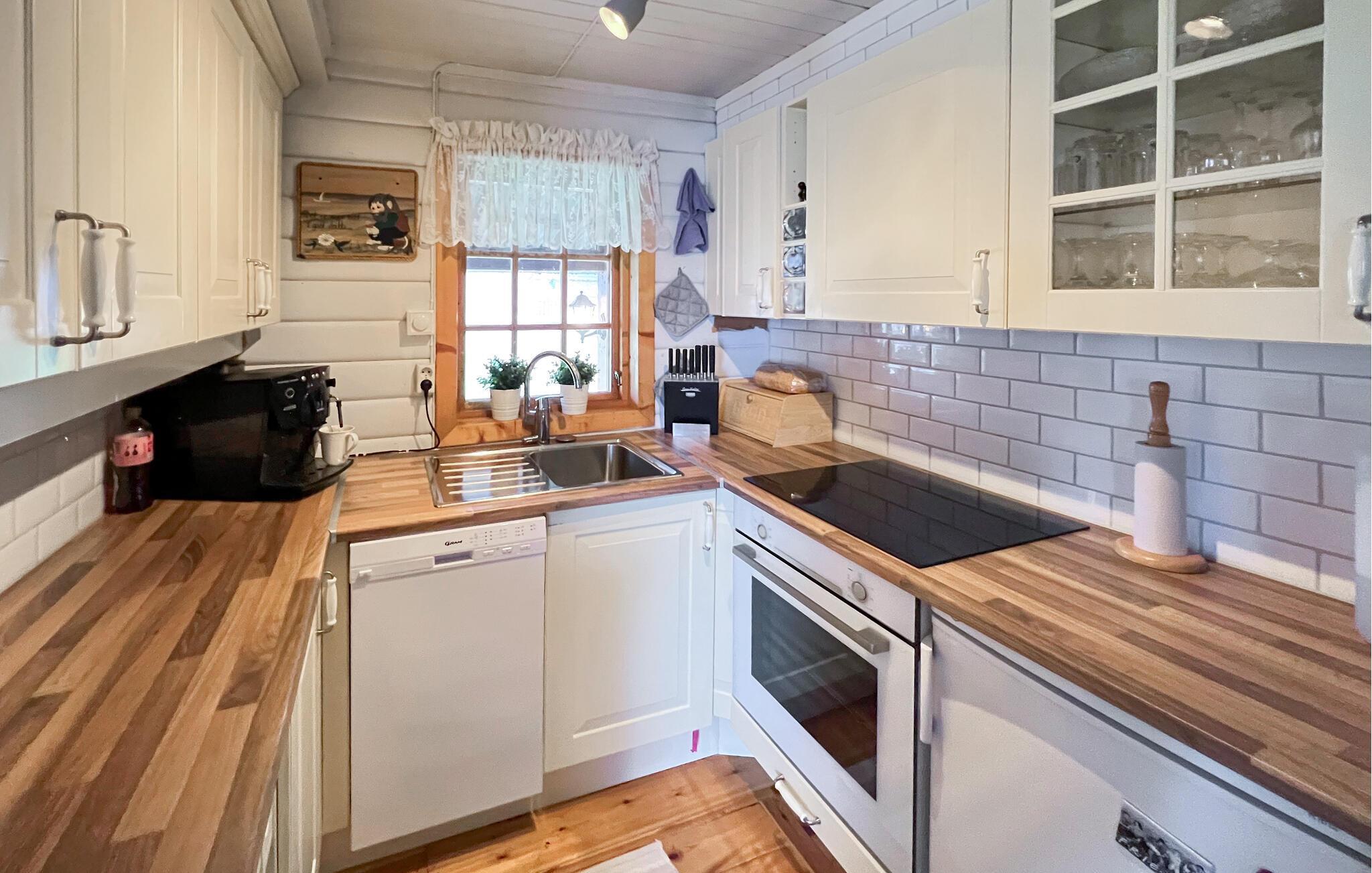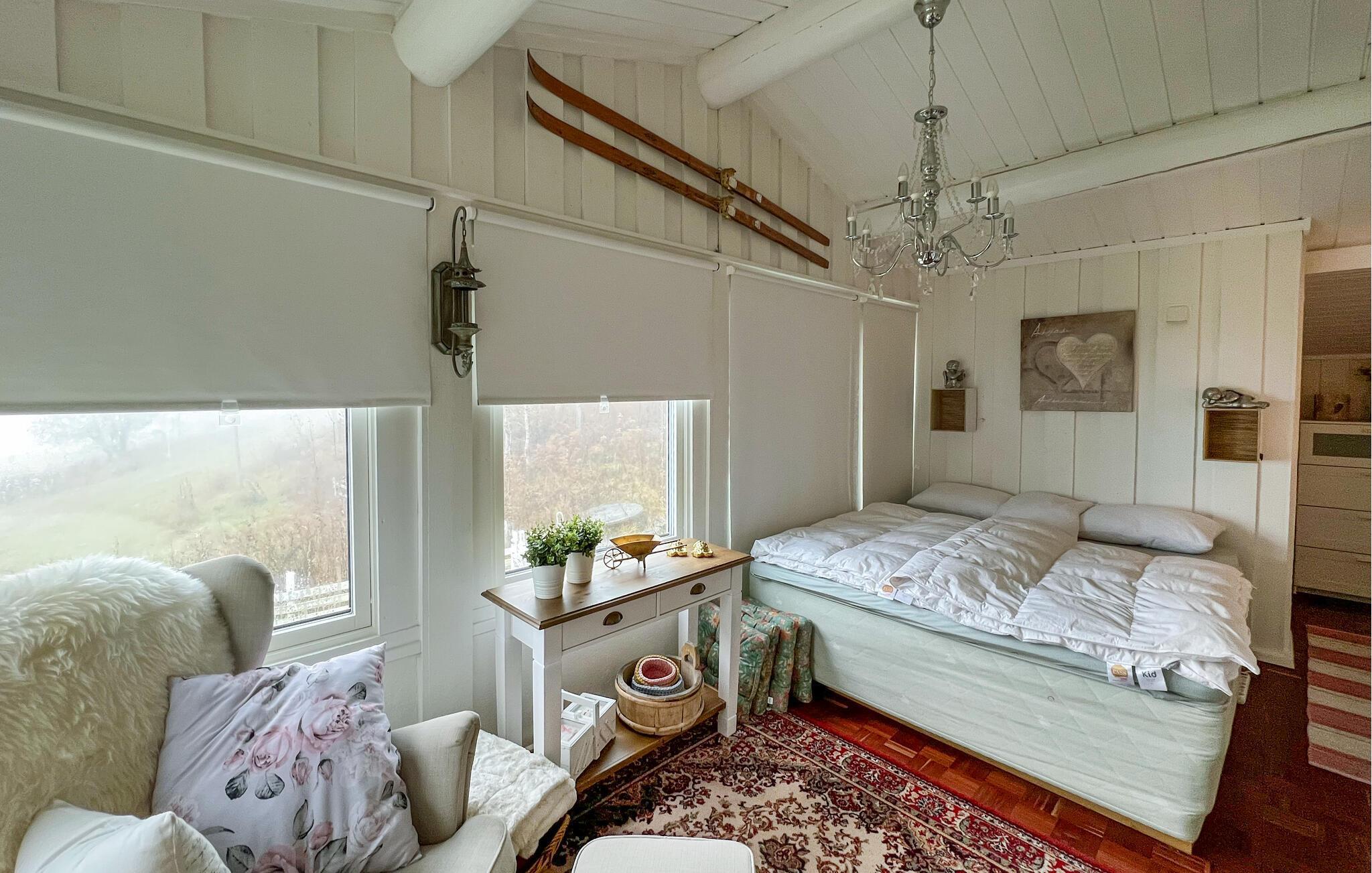 Nyd en afslappende ferie i dette hyggelige feriehus i Torpa, i den maleriske Valdres-region. Huset udstråler skandinavisk charme og tilbyder en lys, venlig atmosfære. I stuen sørger den rummelige hjørnesofa og en stilfuld lysekrone for en hyggelig stemning. De hvide trævægge og rustikke bjælker skaber en varm, indbydende atmosfære. Tilbring afslappede aftener foran den hyggelige brændeovn og brug den hyggelige spiseplads til at nyde måltider sammen.