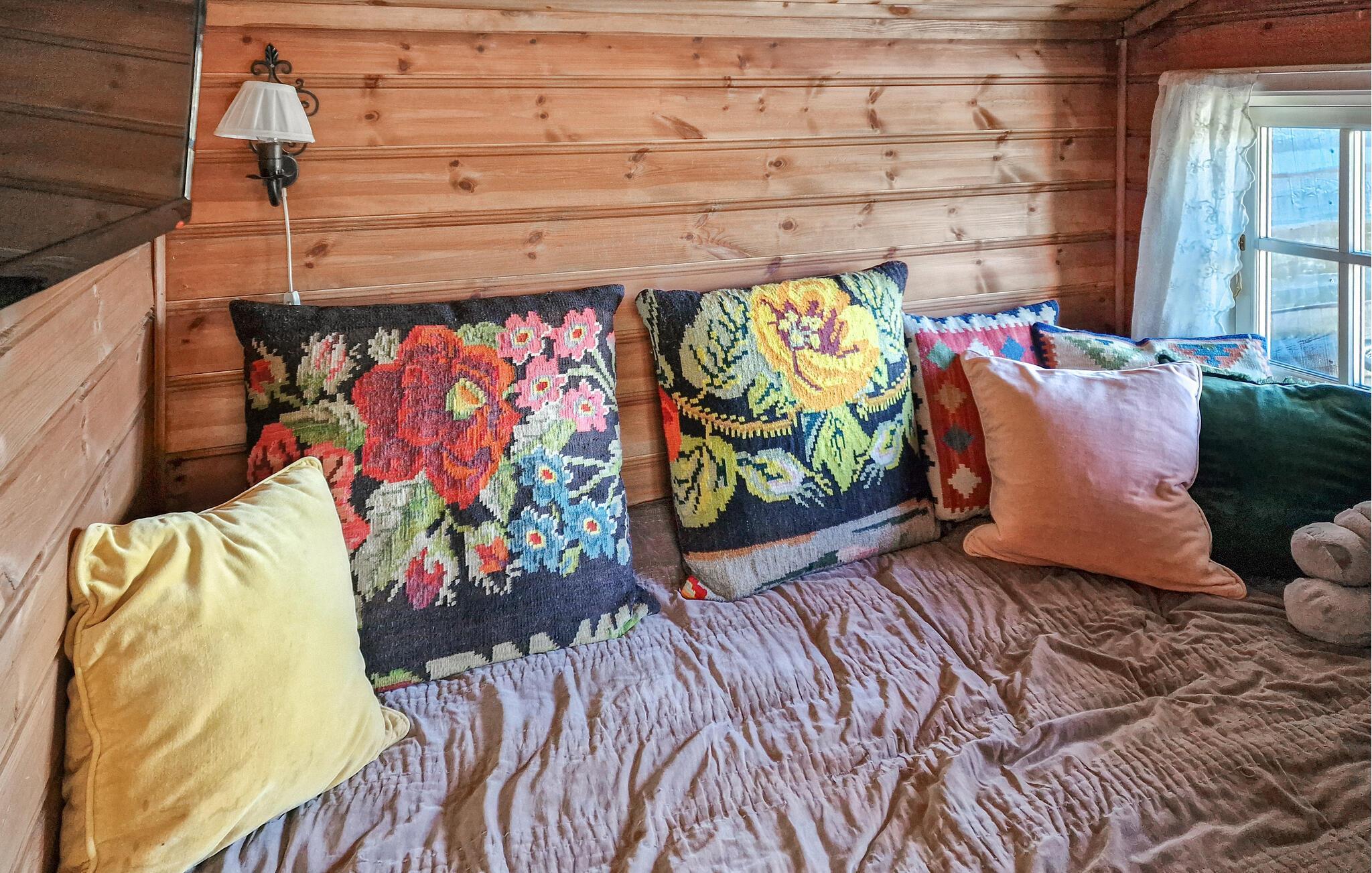 Denne hyggelige og idyllisk beliggende hytte tilbyder masser af plads til en større familie, hvor de kan nyde den rustikke charme og moderne faciliteter. Tilbered lækre måltider i det indbydende køkken, lyt til den knitrende pejs under hyggelige måltider, nyd afslappende øjeblikke i saunaen, og glæd jer til hyggelige spilleaftener eller en god film i den behagelige sofa.