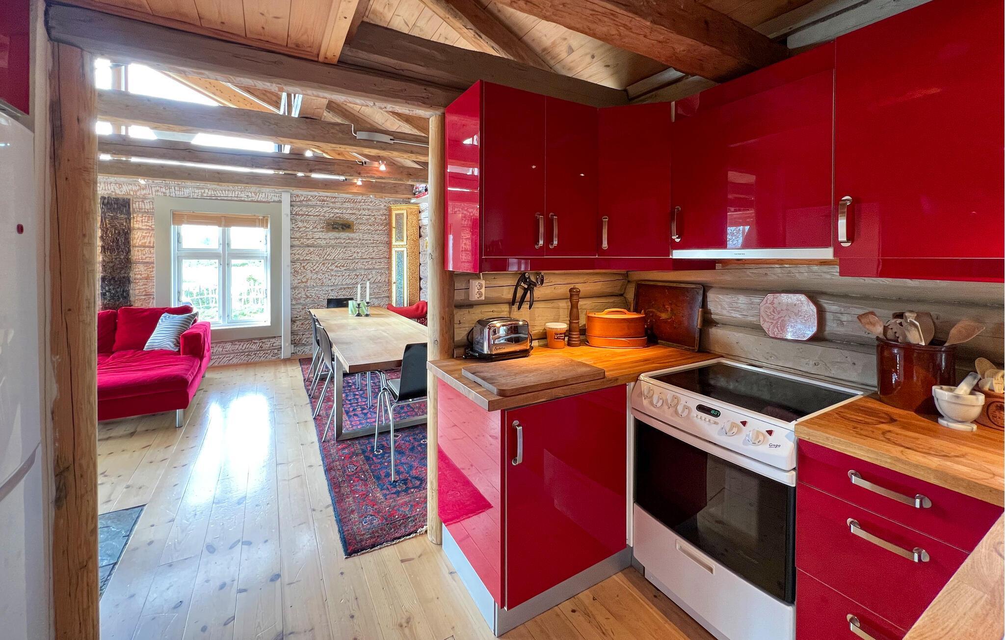 Dette rustikt indrettede hus er både hyggeligt og originalt. Store vinduer lukker masser af naturligt lys ind og giver jer uhindret udsigt over det bølgende landskab. En brændeovn sørger for hyggelig varme på kølige dage, mens de komfortable siddepladser lægger op til at læse, spille spil eller blot slappe af. Tilbring afslappende timer her med en bog eller lyt til den knitrende ild.