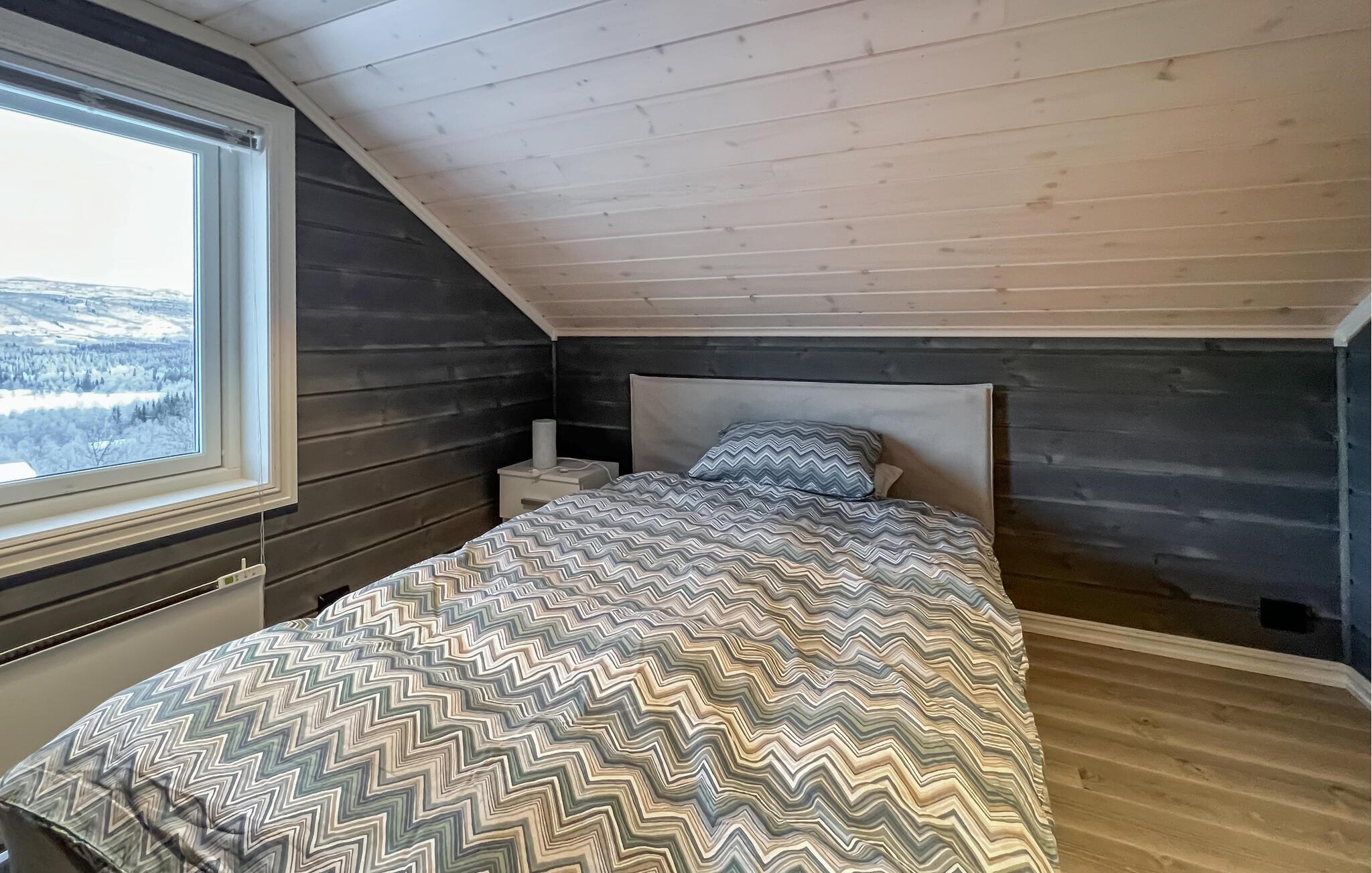 Dette stilfulde feriehus er noget særligt med sin enkle, moderne indretning og en åben, lysfyldt stue. På to etager giver det jer plads til afslappet samvær: lav mad sammen i det veludstyrede køkken, nyd komforten ved pejsen eller slap af i den komfortable sofa. Terrassen lægger op til at indånde den friske bjergluft og nyde den vidunderlige udsigt over det omkringliggende landskab - et perfekt sted at planlægge eller afslutte dagen.