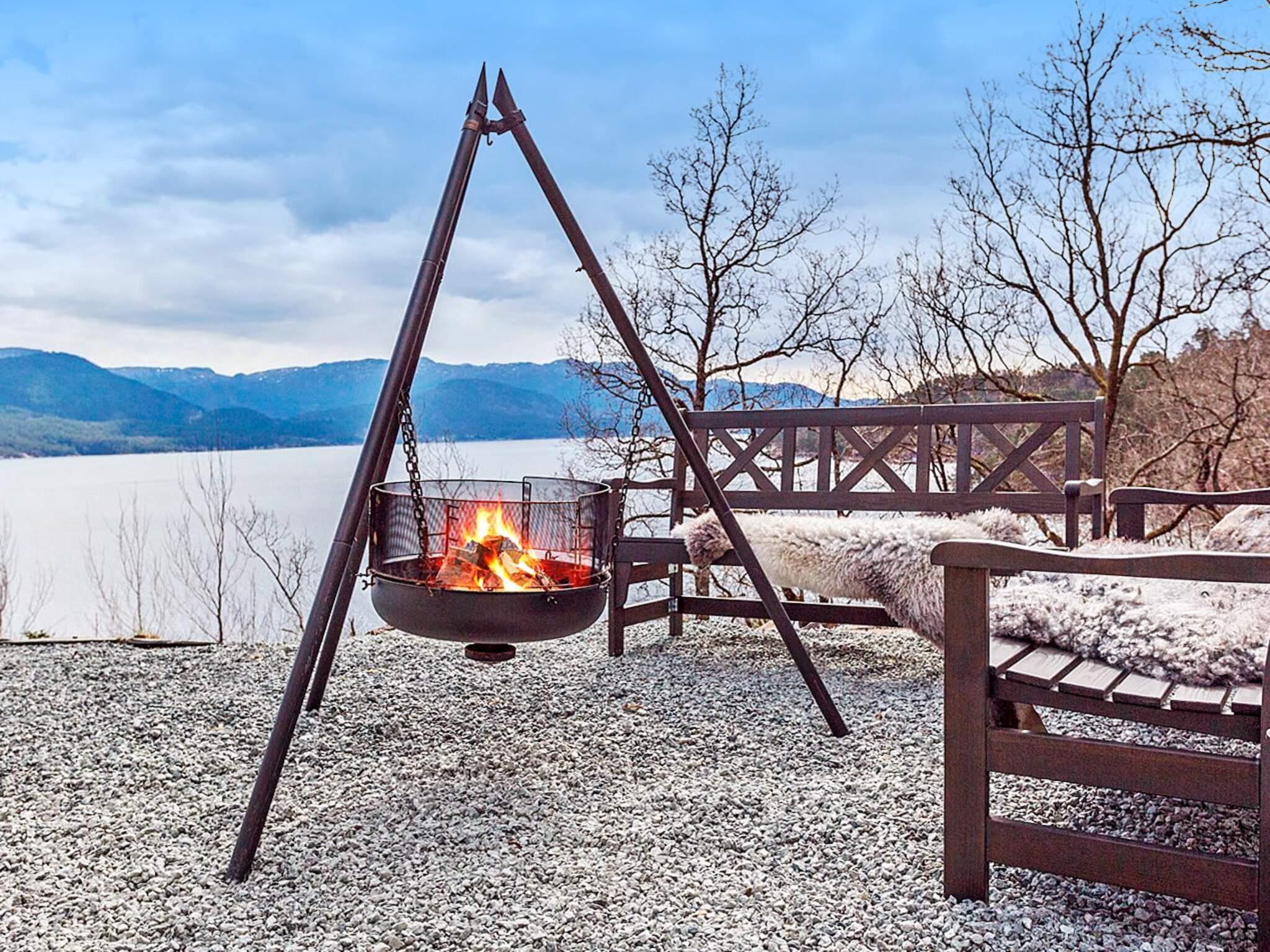 Like nedenfor huset kan dere bade fra svabergene, bratt ned til sjøen. Fint å tenne i bålpannen rett utenfor terrassen.