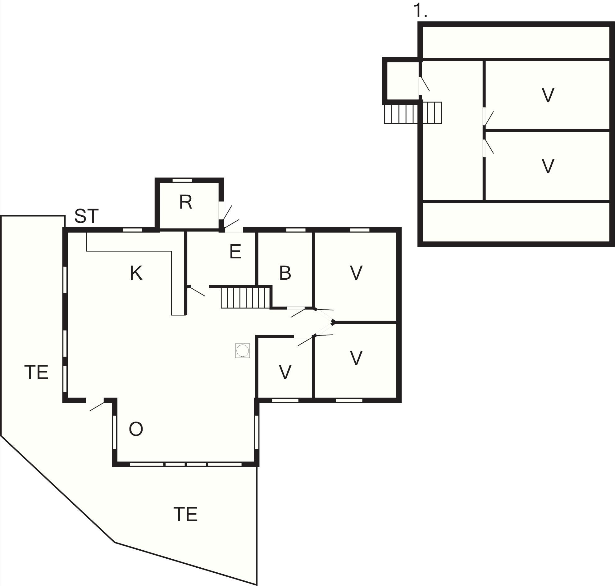 1 Opholdsstue: brændeovn, tv, parabol