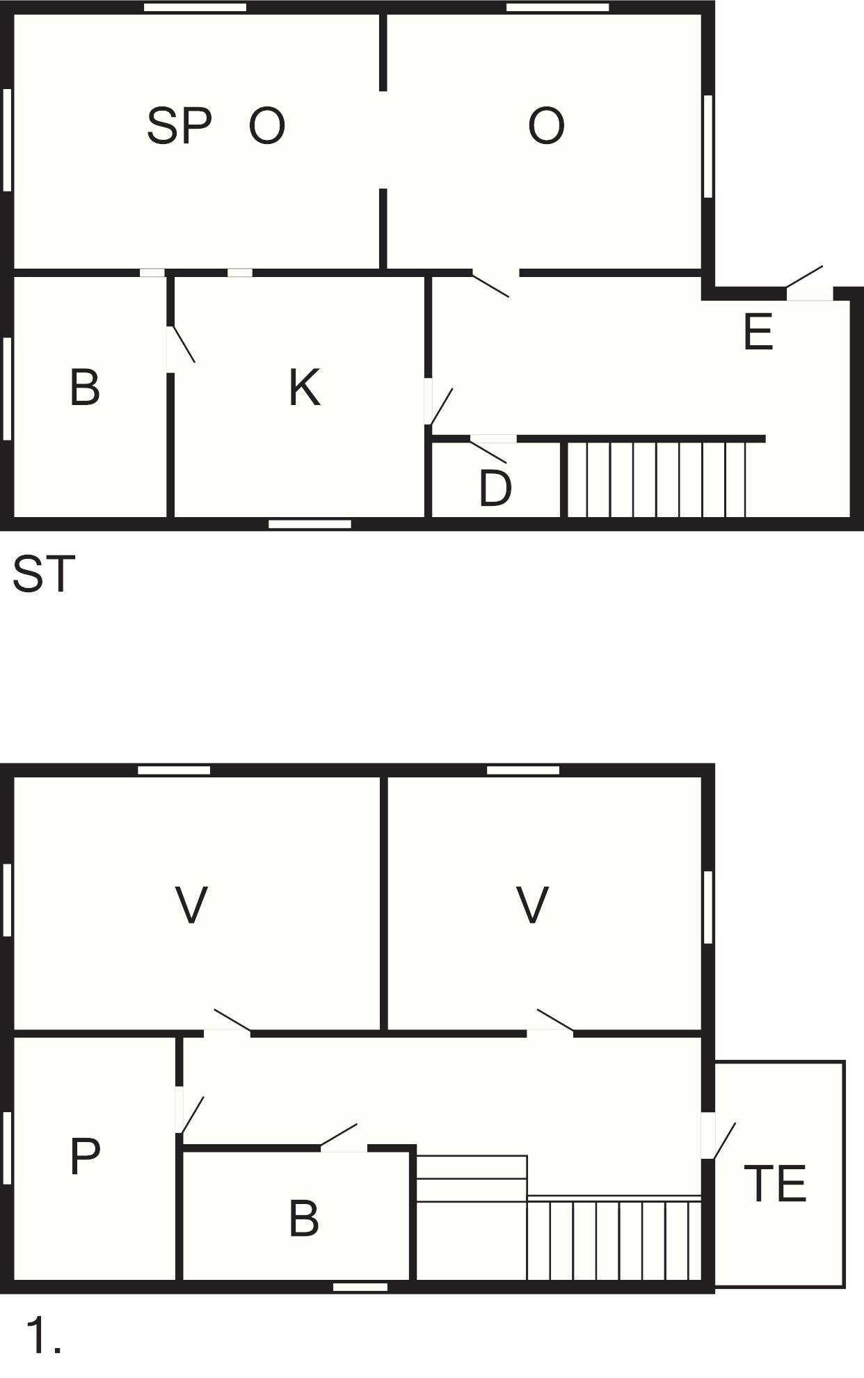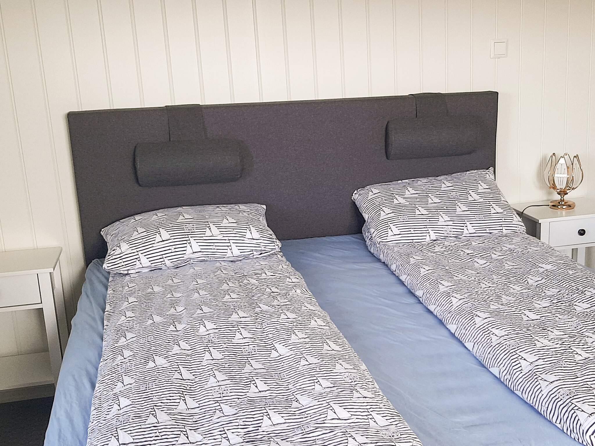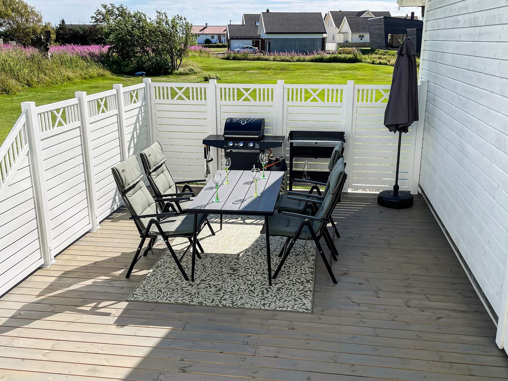 Feriehusets første etasje har et flott kjøkken samt gang og to lyse stuer. Det er 2 bad, et i hver etasje. Begge med WC og dusjkabinett, vaskemaskin i det ene. I andre etasje er det 2 soverom med en dobbeltseng i hvert rom. Balkong. På baksiden av huset er det en stor plen, perfekt for grilling, aktiviteter og familiehygge.