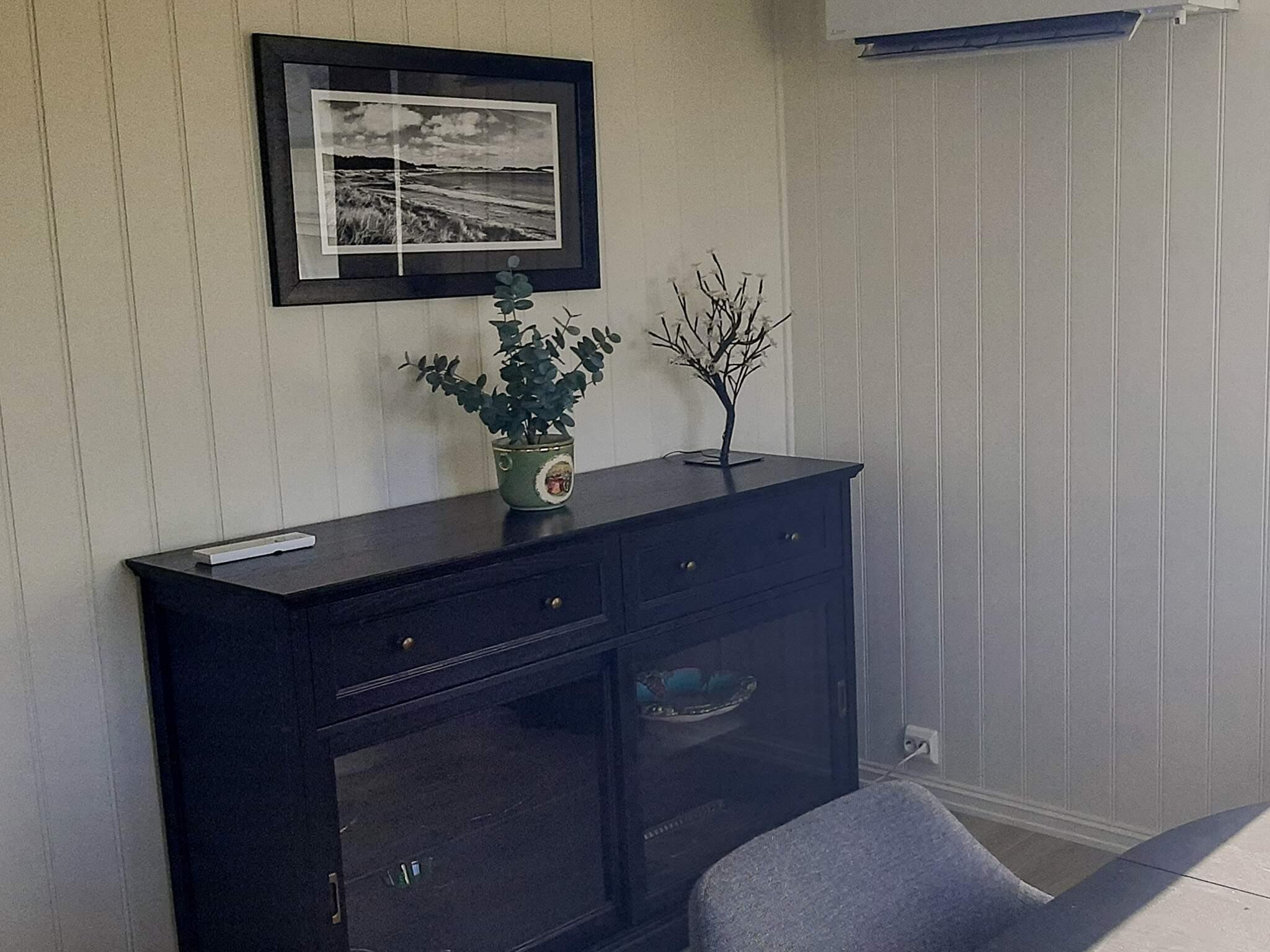 Og: Altan, el-varme, luft/luft varmepumpe, havegrill, anlagt have 1800 m2, blandet møblering, udsigt over vand, ikke-ryger hus