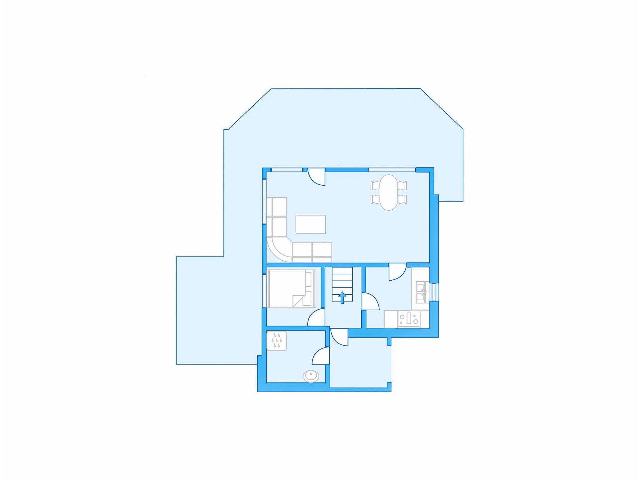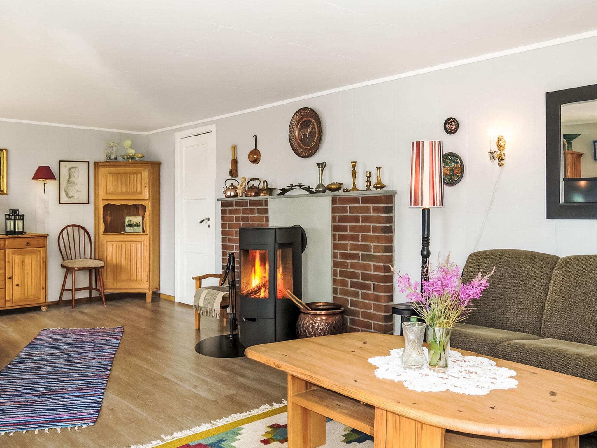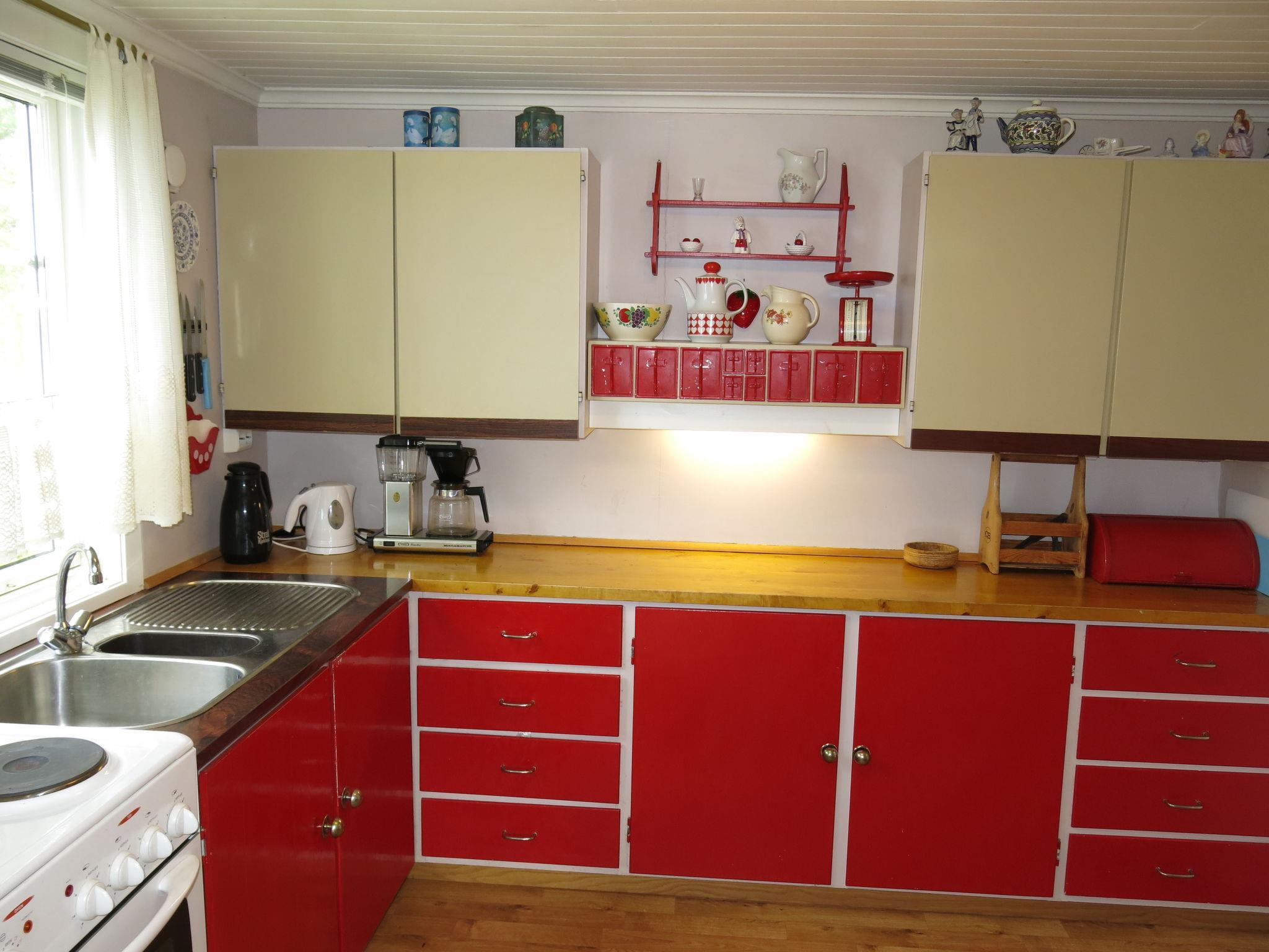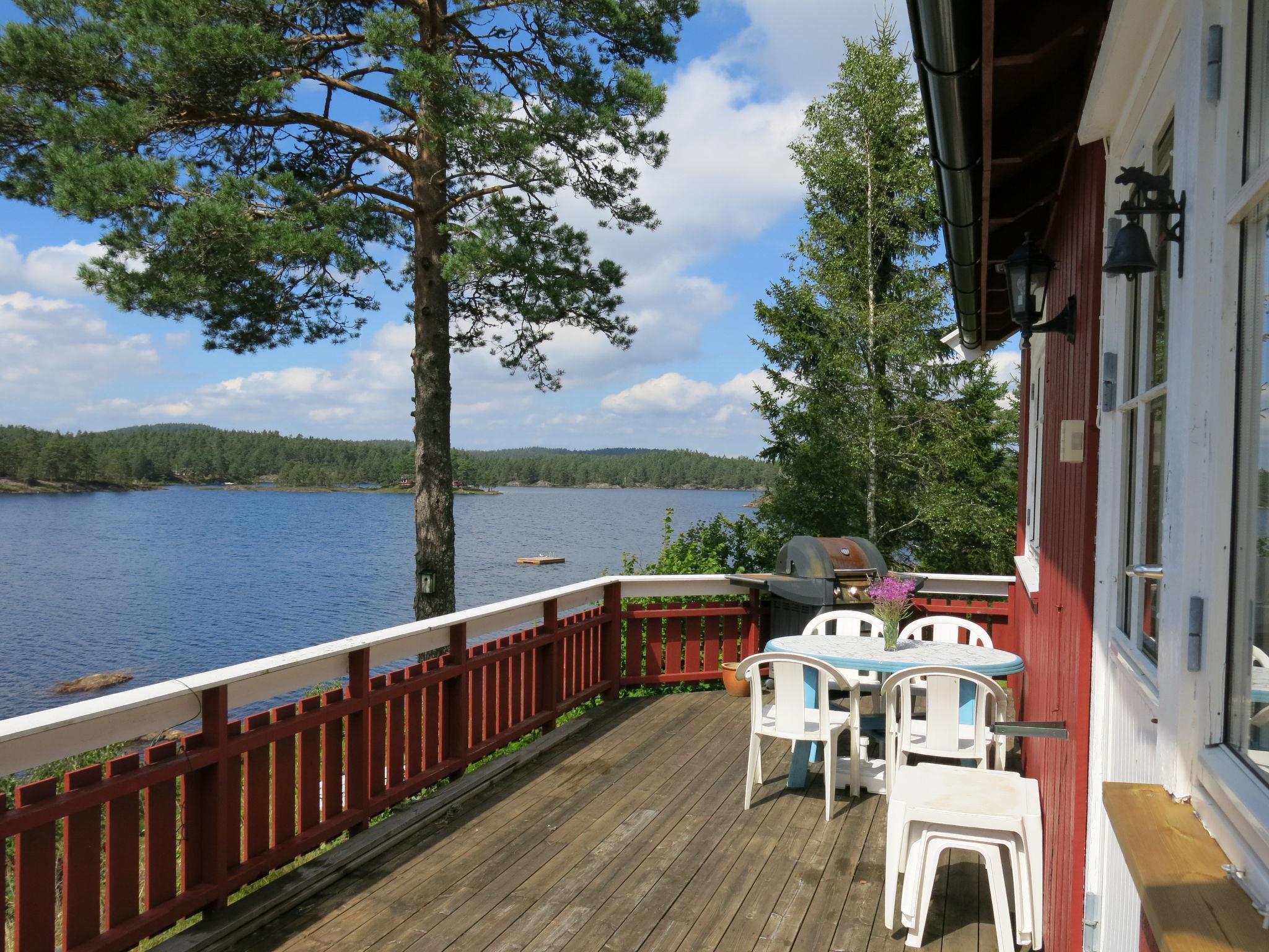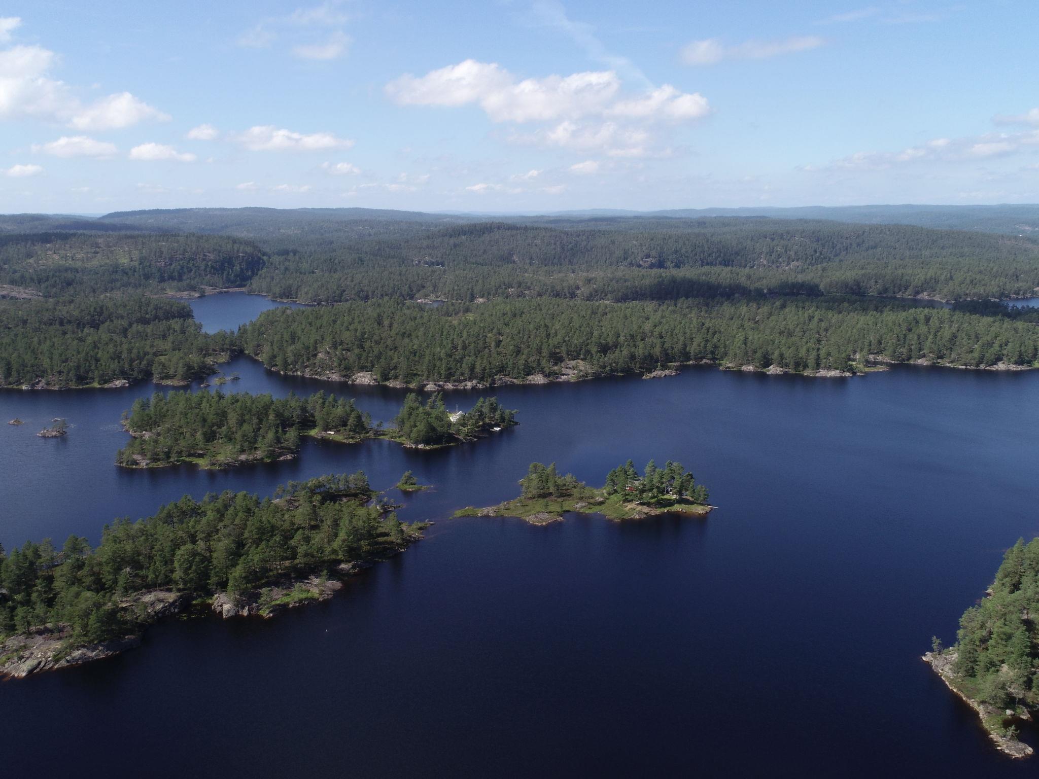 "Ogge", 5-room house 85 m2 on 2 levels. Simple and cosy furnishings: living room with Scandinavian wood stove, dining table and TV. Exit to the terrace. 1 room with 1 double bed (150 cm, length 200 cm). 1 double bedroom with 1 double bed (150 cm, length 200 cm). Kitchen (4 hot plates, oven, kettle, freezer, electric coffee machine). Sep. WC. Upper floor: 2 rooms with sloping ceilings, each room with 1 x 2 bunk beds (75 cm, length 190 cm), 1 double bed (150 cm, length 200 cm). Shower. Wooden floors. Very beautiful view of the lake. Please note: one double bedroom is outside the apartment. Maximum 2 pets/ dogs allowed. Smoke alarm. Freezer approx. 20 l. Process water from the well, drinking water from the store. The shower is accessed from the outside and WC (combustion toilet) in the annex. Bed layout is flexible. There are more sleeping options available than the maximum number of people allowed which may, however, not be exceeded. 924531169