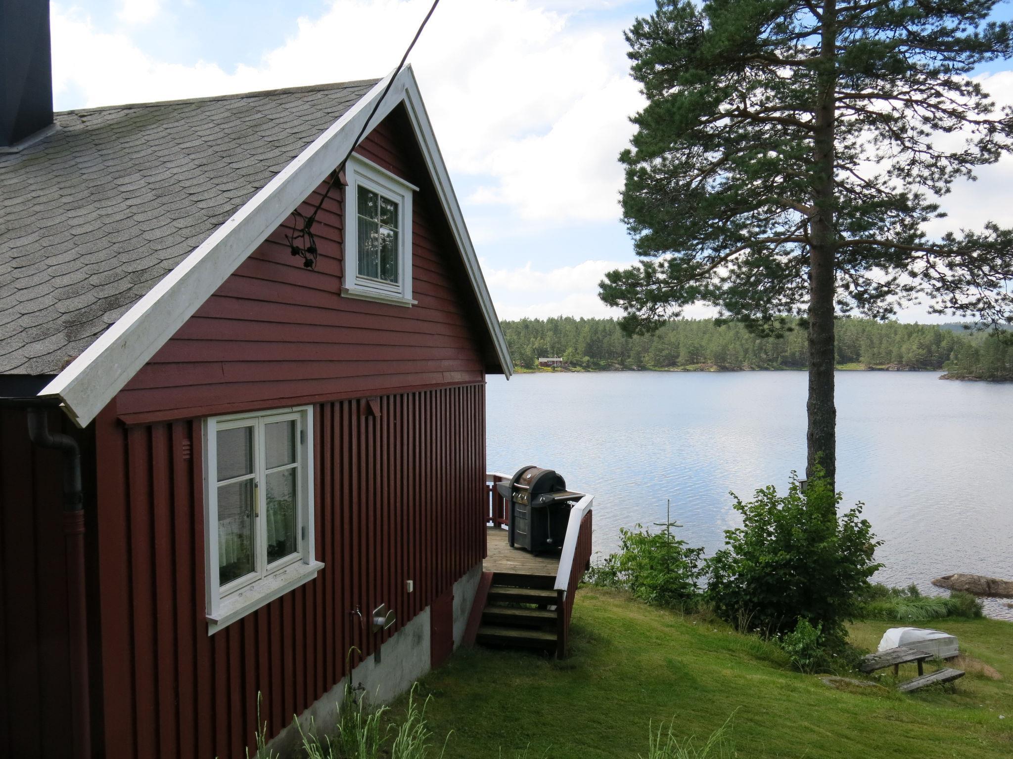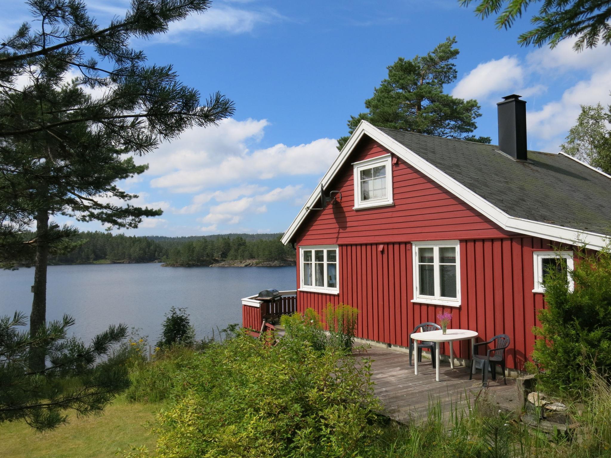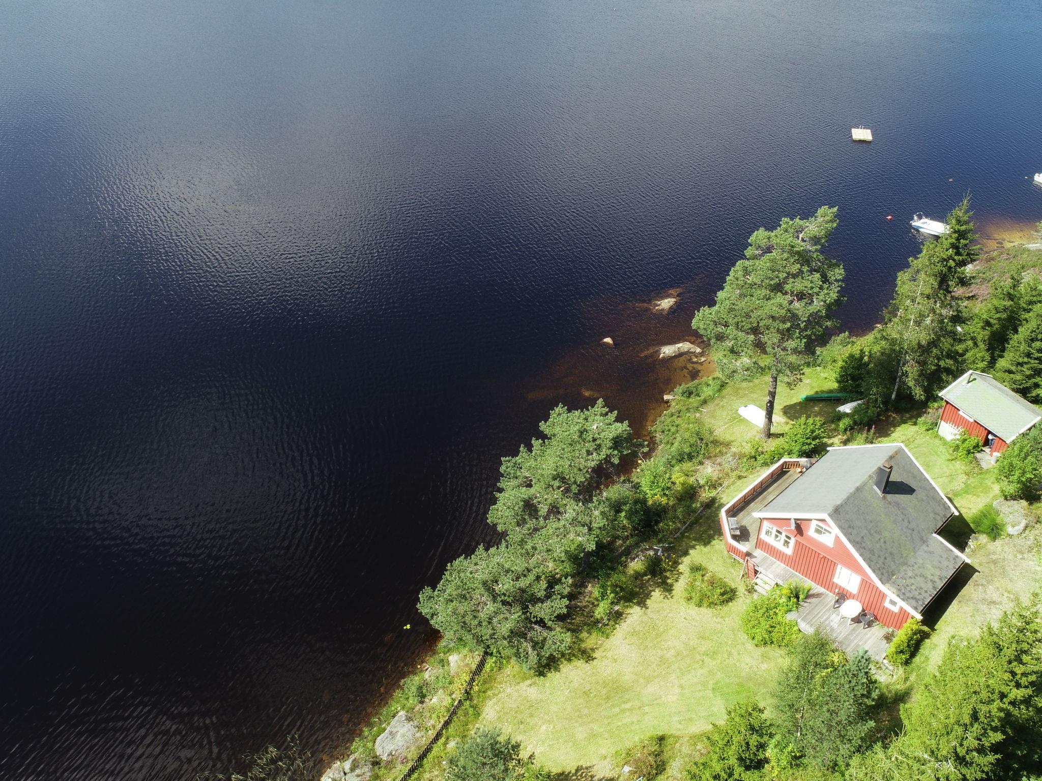 Beautiful house "Ogge", detached. Property composed of main house and outbuilding 14 km from the centre of Vatnestrøm, 14 km from the centre of Birkeland, 26 km from the centre of Kristiansand, 15 m from the lake, in the countryside. Private: natural state property 1'200 m2 with meadow. Terrace, garden furniture, barbecue, bathing place. Available: canoe. Rowing boat with motor (on request). 40 m footpath to the house. Parking on the premises. Shop 14 km, bus stop "Oggeveien/Ogge" 300 m, ferry "Kristiansand" 26 km. Walking paths from the house 50 m, fishing possibilities 15 m.
