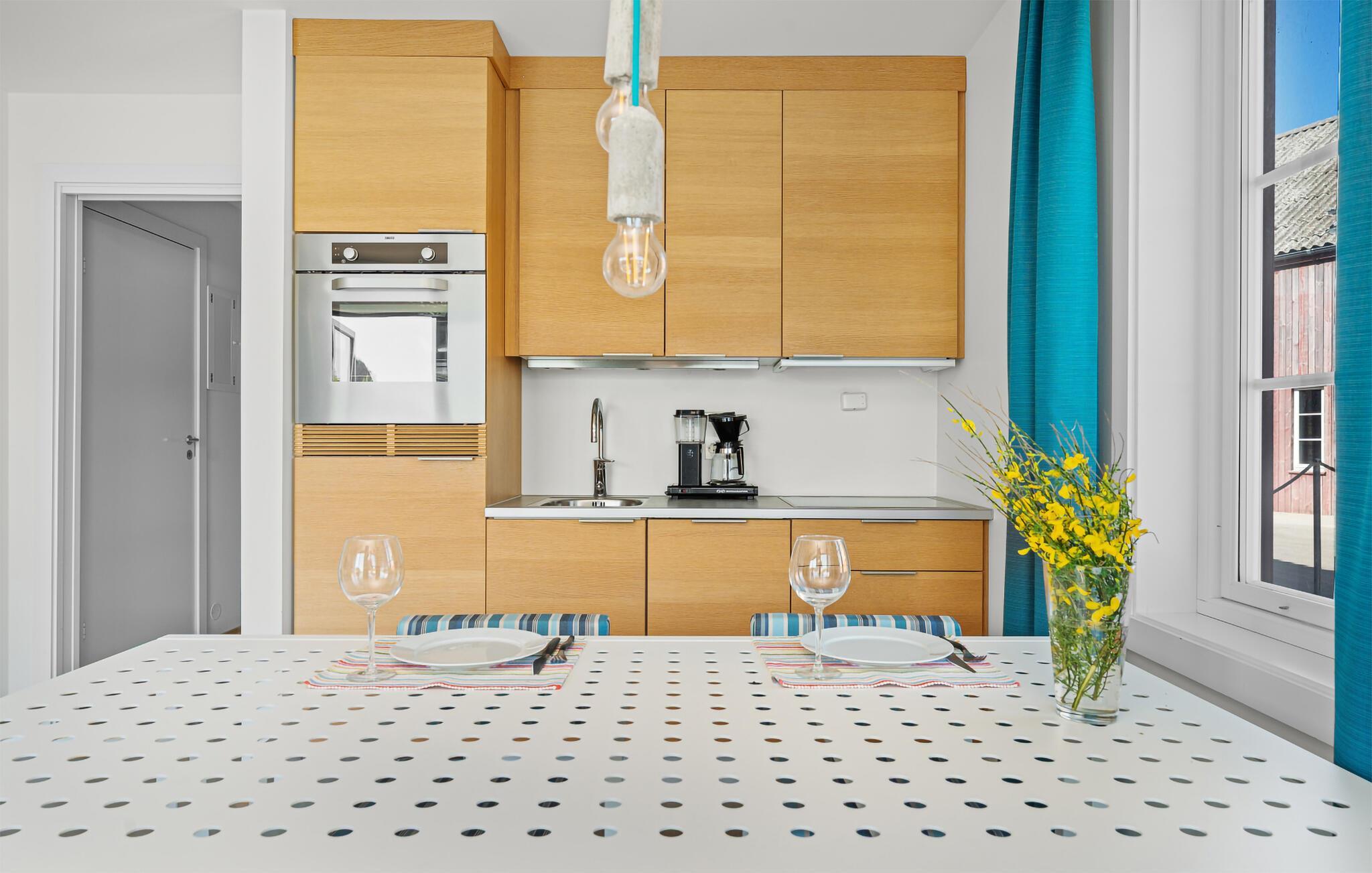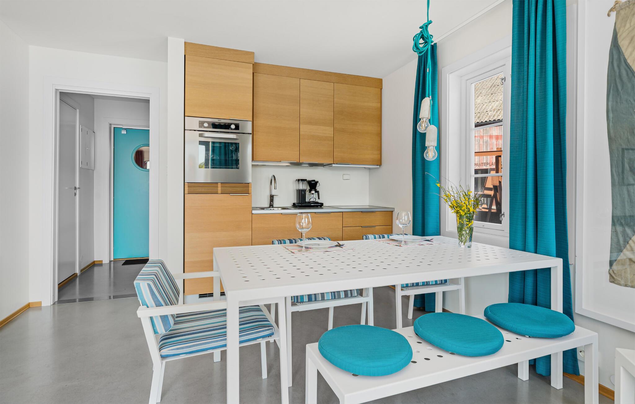 Jeres stilfulde feriehus, beliggende på en ø, tilbyder de ideelle rammer for en afslappende ferie ved kysten. Den rolige beliggenhed ved vandet, den gennemtænkte planløsning og de lyse værelser med deres rene linjer skaber en behagelig atmosfære fra det øjeblik, I ankommer. Lav mad sammen i det funktionelle køkken og nyd jeres måltider ved bordet med udsigt over det glitrende hav.