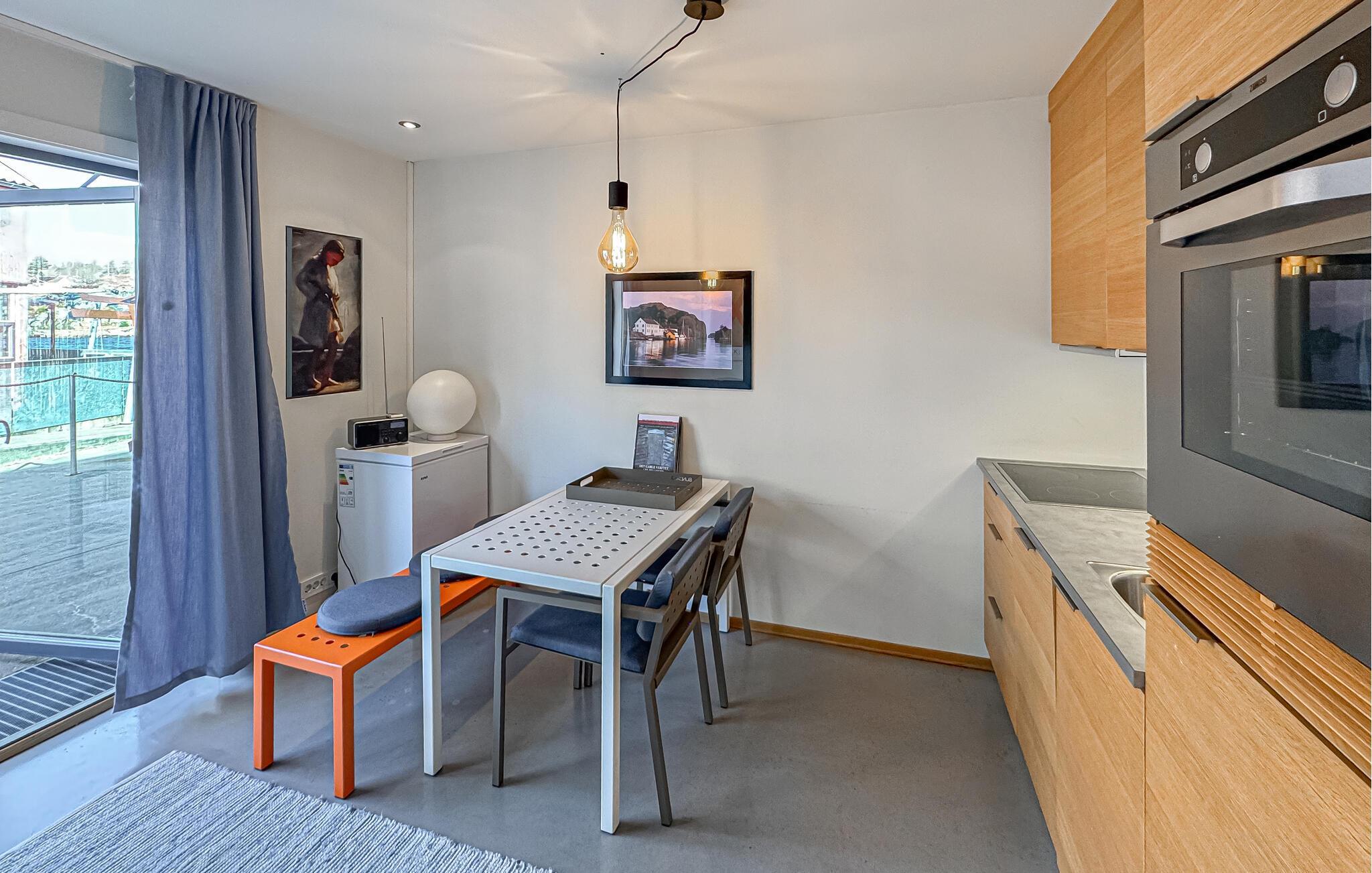Denne lyse og luftige lejlighed har en beskyttet beliggenhed ved havnen på den smukke ø Ny-Hellesund og tilbyder jer et komfortabelt hjem væk fra hjemmet under en naturfyldt ferie ved havet. Tilbered solide måltider i det dejlige, åbne køkken og nyd fælles måltider ved det lyse spisebord. Hold hyggelige spilleaftener eller fordyb jer i en god bog på den behagelige sofa.