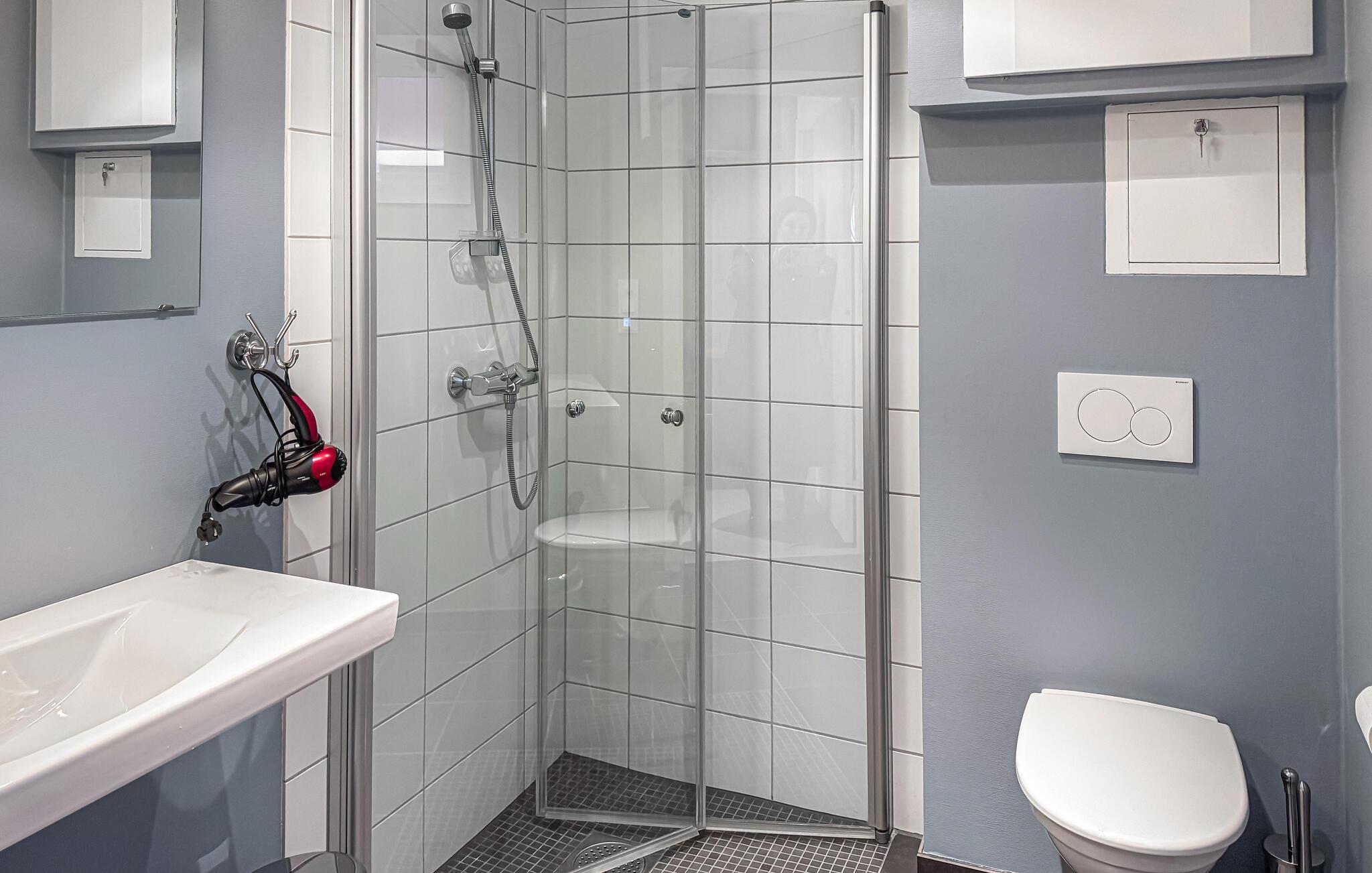 Badeværelse (nr. 1) - WC. Varmt og koldt vand. Bruser
