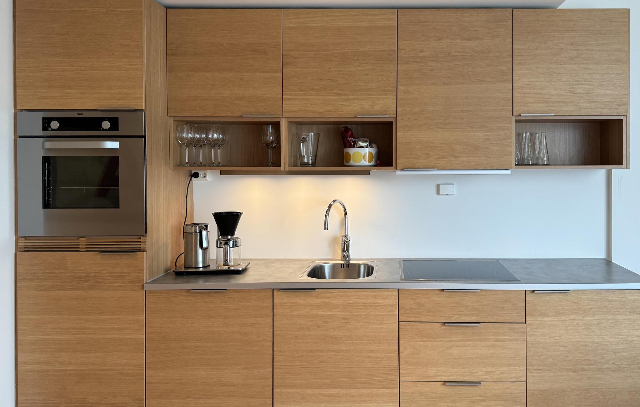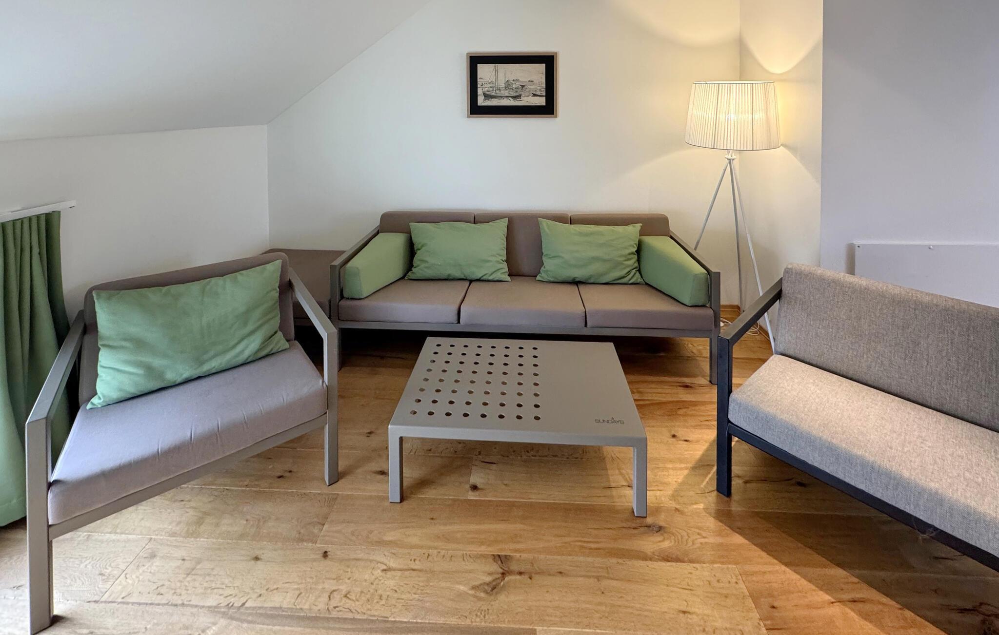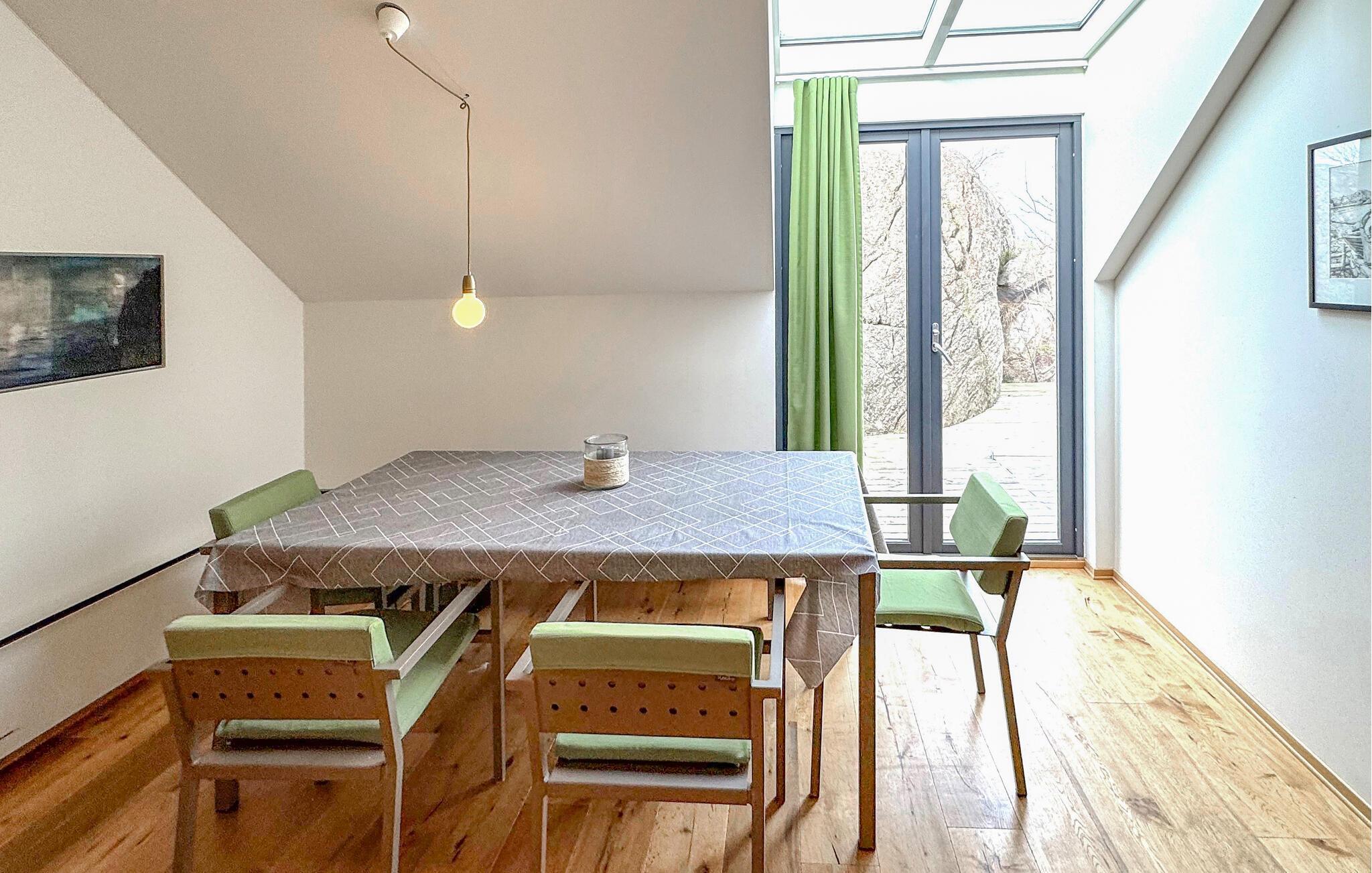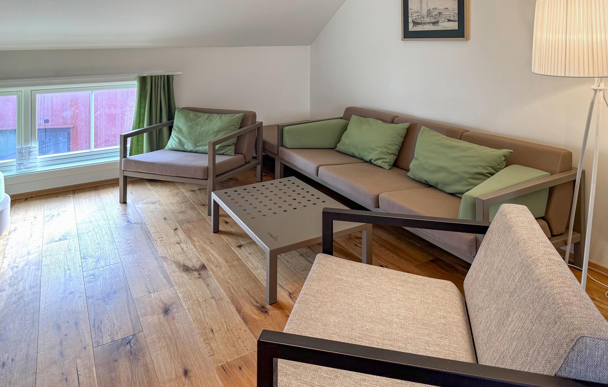 Denne lyse og luftige lejlighed giver jer mulighed for at sætte den travle hverdag på pause med familien på den beskyttede ø Ny-Hellesund. Dens komfortable interiør er indrettet med naturlige materialer og et harmonisk design, der skaber en behagelig atmosfære. Glæd jer til at lave mad sammen i det moderne køkken og nyde hyggelige måltider ved det stilfulde spisebord. Slap af i sofaen, nyd en spilleaften eller tag jer tid til en god samtale over et glas vin.