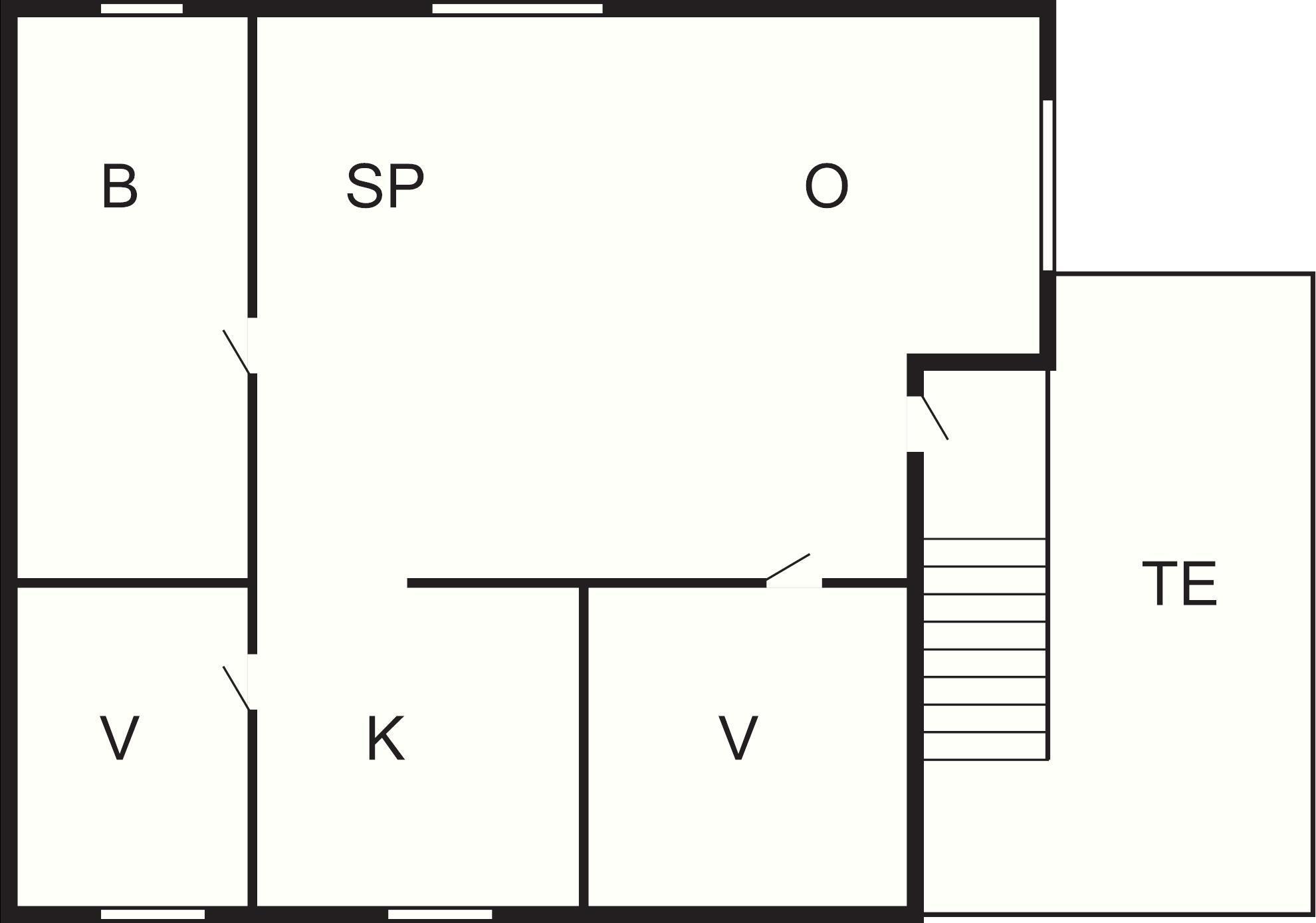 1 Opholdsstue: (1O), brændeovn, radio, stereoanlæg, tv