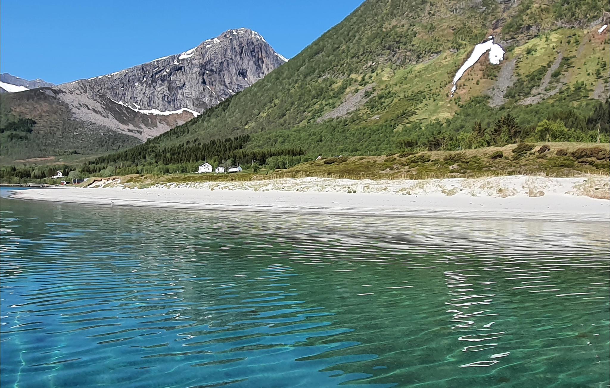 Huset ligger cirka 25 minutter fra Sortland. Sortland er en lille by med gode indkøbsmuligheder, spisesteder og underholdning. Der er gode fiskerimuligheder i fjorden direkte under sommerhuset, og husejeren har en båd, der kan lejes efter forespørgsel. Husk at medbringe jeres egne redningsveste. Hvis I er heldige, kan I se marsvin og spækhuggere i fjorden samt spændende fugleliv. Området er fantastisk til vandreture både om sommeren og vinteren.