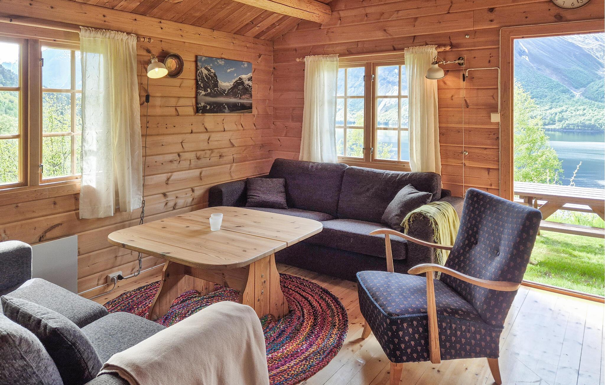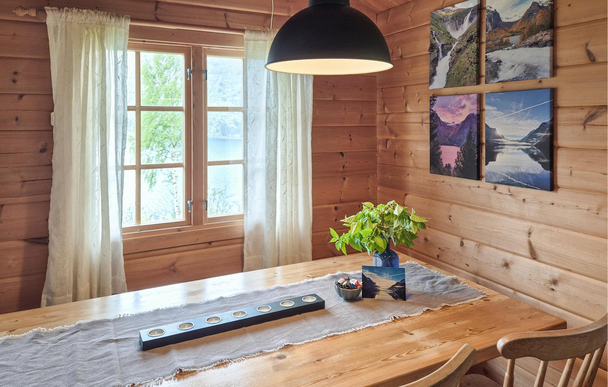 Her kan du sænke skuldrene og leve i harmoni med naturen. Fra feriehuset får du en fantastisk panoramaudsigt over Eikedalsvatnet. Området med feriehuset ligger i et område med mægtige bjerge og frodige landsbyer. Der er masser af godt fiskeri i området med muligheder for at fise i både søer, floder og fjorde (husk fiskerilicens).