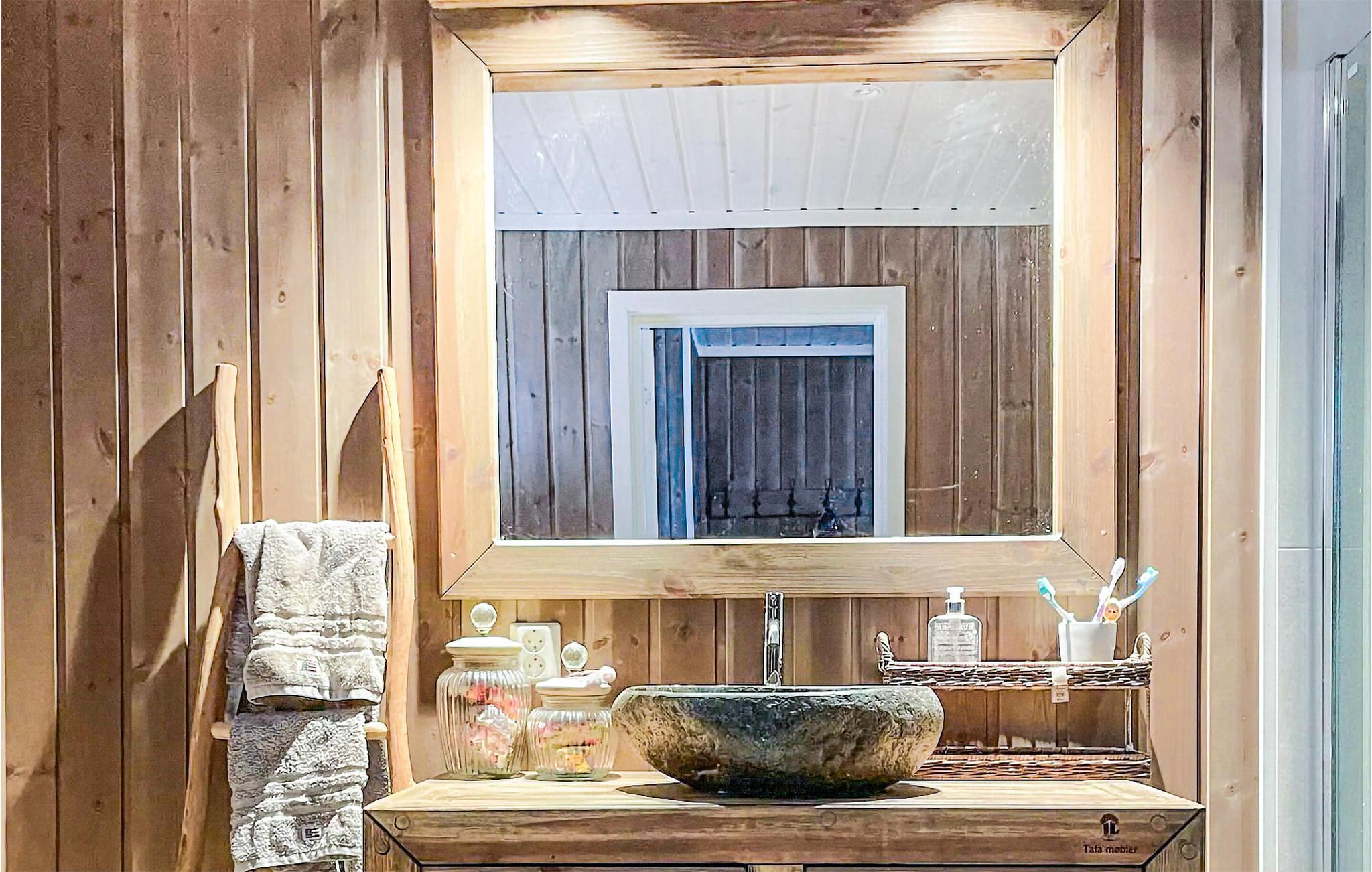 Tilbring en uforglemmelig ferie med et vidunderligt landskabspanorama i dette feriehus. Det moderne feriehus byder velkommen i en vidunderlig beliggenhed nær søen. Nyd en afslappende pause med dine kære i de attraktive værelser, hvor moderne møbler og rustikke elementer som træpaneler og fritlagte murværk danner en charmerende blanding. Gulv-til-loft vinduer giver dig mulighed for at opleve nærheden til naturen optimalt. Glæd jer til fælles måltider eller underholdende spilleaftener i en hjemlig atmosfære Efter en begivenhedsrig dag kan I sidde behageligt sammen i lang tid, lægge fødderne op i sofaen og sludre længe ved den knitrende pejs. På terrassen kan du slappe af udenfor og nyde de lange sommeraftener. Der er kun få skridt til badesøen, forfrisk dig i vandet på varme sommerdage, her får lystfiskere også for pengene. Lige ved huset går en vandresti, så du kan udforske de smukke naturomgivelser til fods. Hele familien vil have gode minder fra deres ferie i dette feriehus i lang tid.