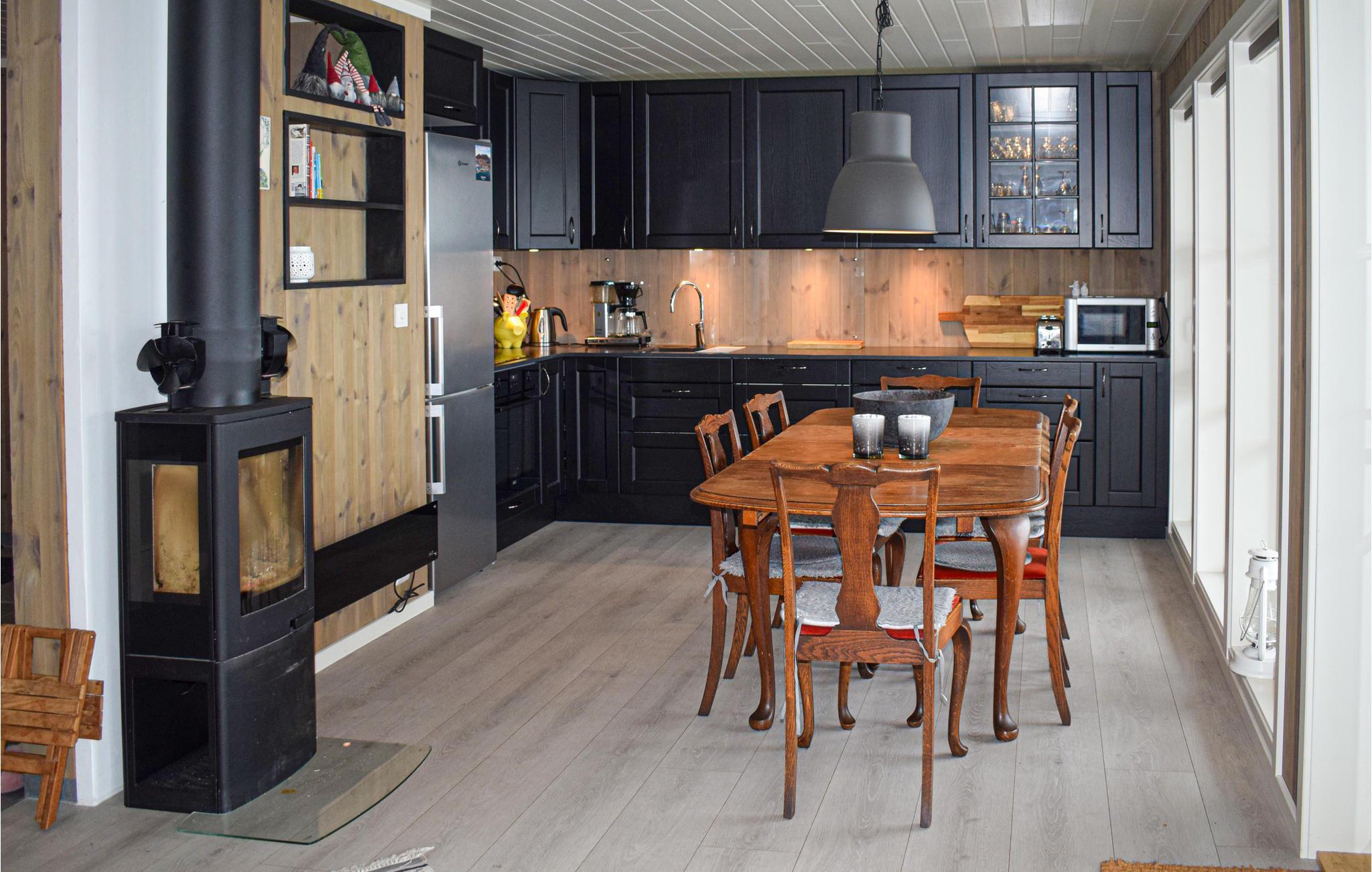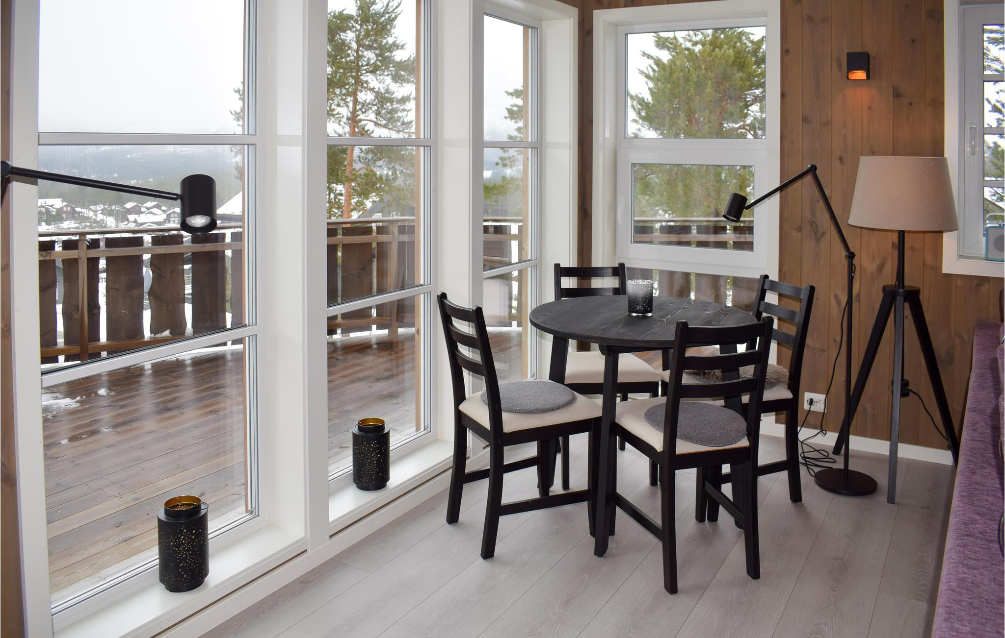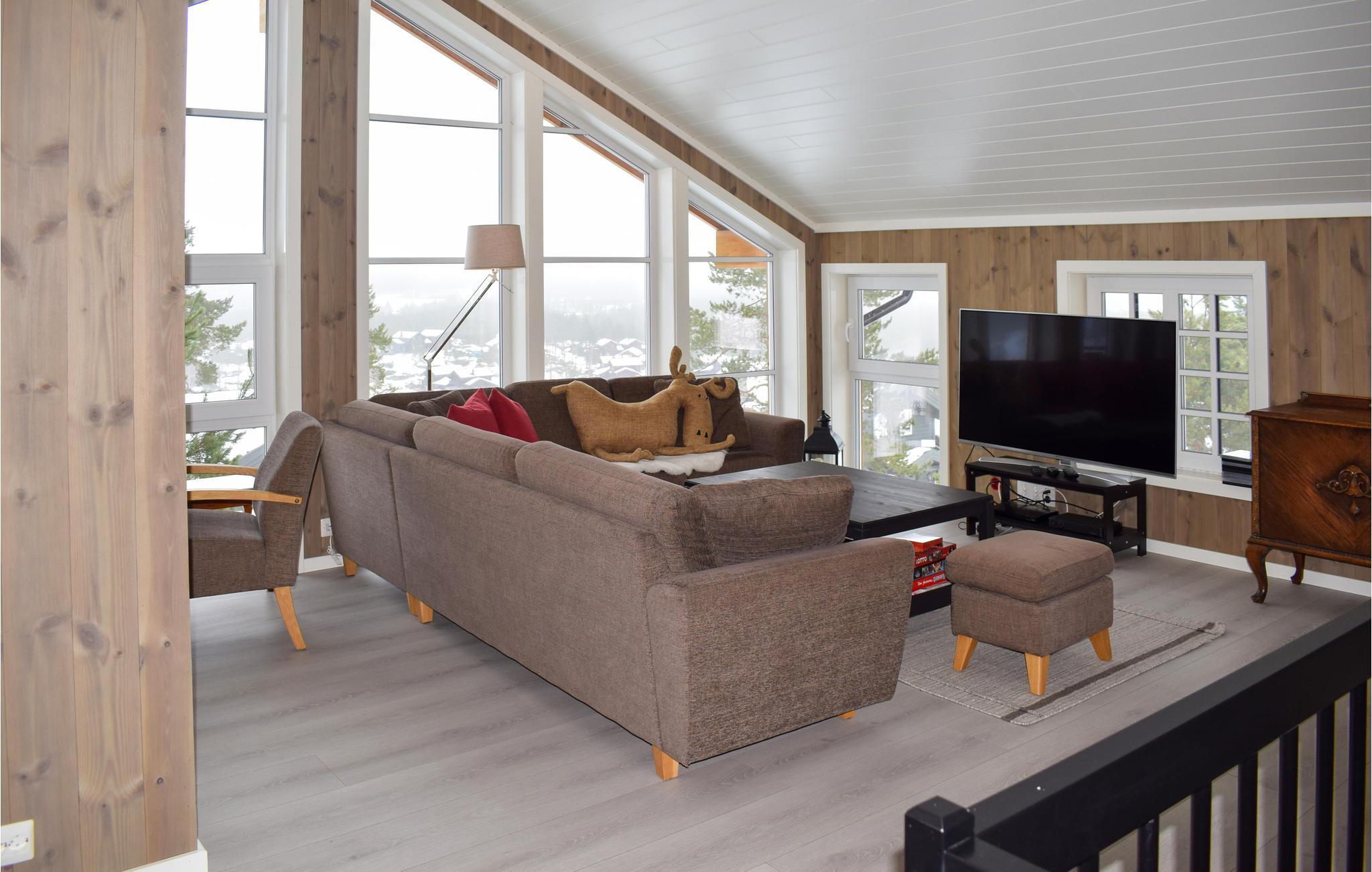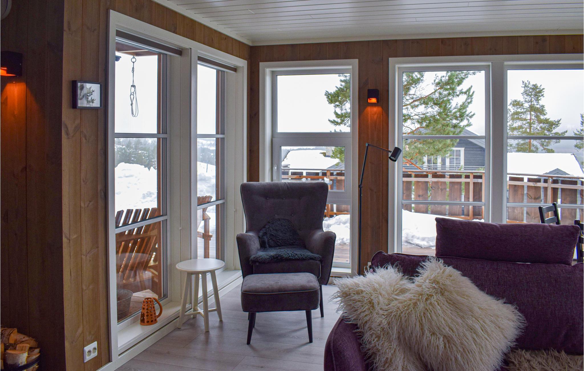 Det komfortable og rummelige hus med græstag har en fantastisk panoramisk beliggenhed og er den ideelle base for en fantastisk ferie med masser af aktiviteter, især med børn. Find jer godt til rette i de attraktive værelser med familien og nyd den vidunderlige udsigt over bjergene gennem de store panoramavinduer, som giver lyst til at udforske området nærmere. Flere komfortable sofaer lægger op til at slappe af efter en aktiv dag. Særligt hyggeligt er det, når man fyrer op i pejsen og sidder sammen i lang tid, mens flammerne knitrer.