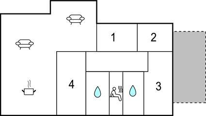 Badeværelse (nr. 1) - WC. Varmt og koldt vand. Bruser