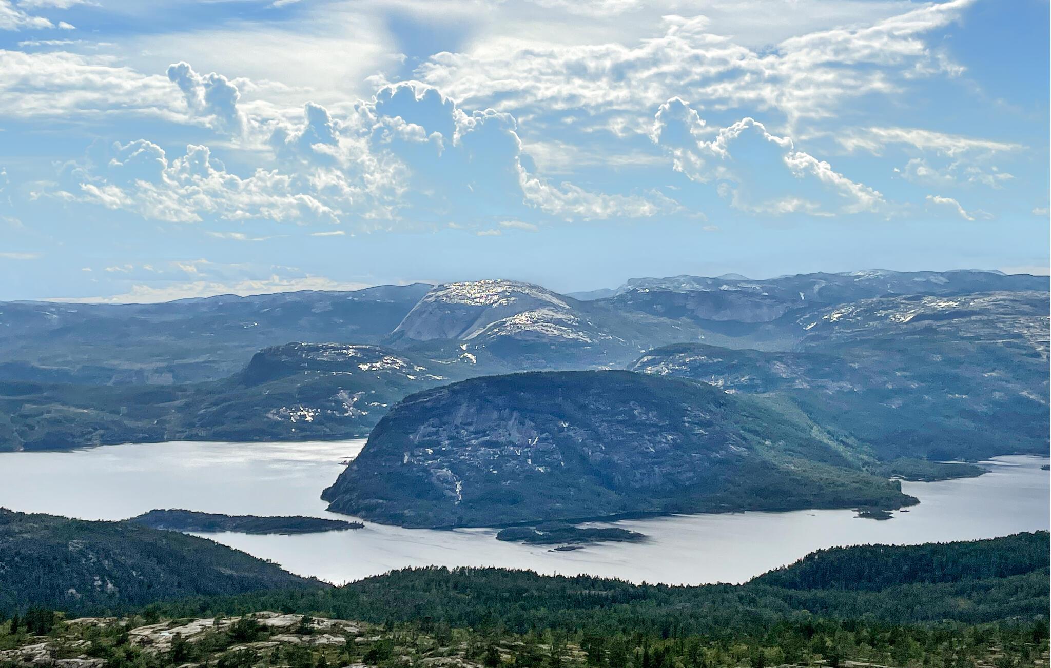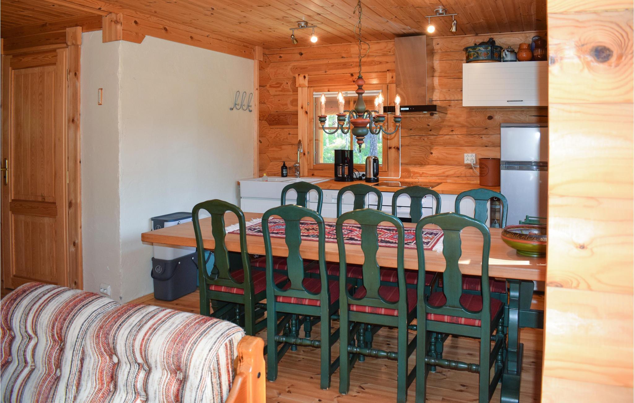 Den fine bjælkehytte med praktisk indretning er perfekt til en familienferie nær Vrådal. Den åbne hems er et sjovt sted for jeres børn, som kan få deres eget lille helle. Terrassen har komfortable siddepladser og giver jer en smuk udsigt til fjorden, så her er der også en skøn plet, hvor man kan nyde morgenkaffen.