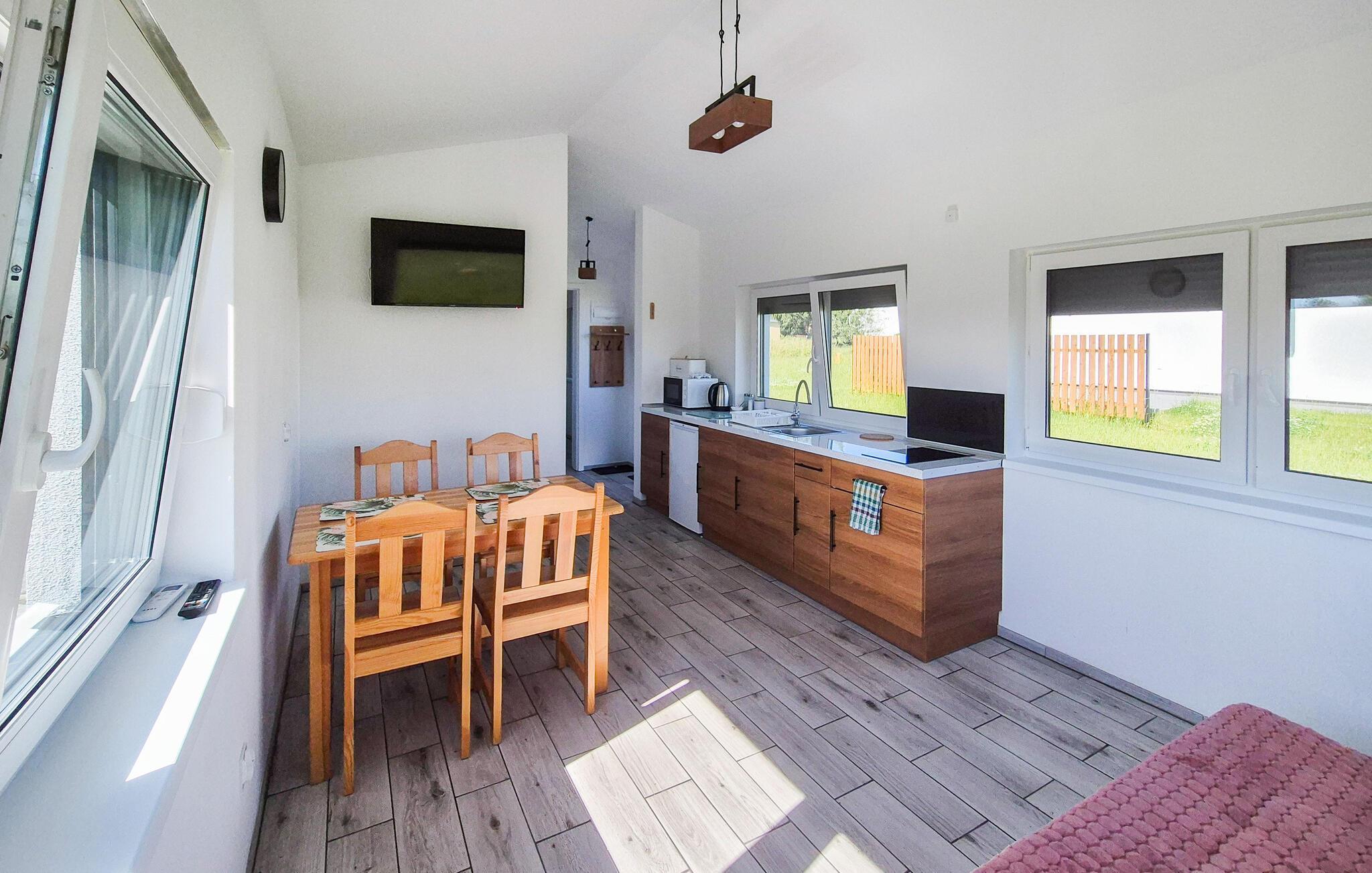 Bedzino har en rolig beliggenhed med et stort udvalg af muligheder. Udforsk de maleriske omgivelser på cykelture eller afslappede gåture gennem naturen. Den nærliggende sø er et oplagt udflugtsmål, hvis I vil fiske eller bade. I området er der også charmerende steder til en dagstur, herunder lokale markeder og historiske attraktioner samt byen Köslin. Benyt lejligheden til at opleve kulturen og naturen i regionen, mens I slapper af i de idylliske omgivelser.
