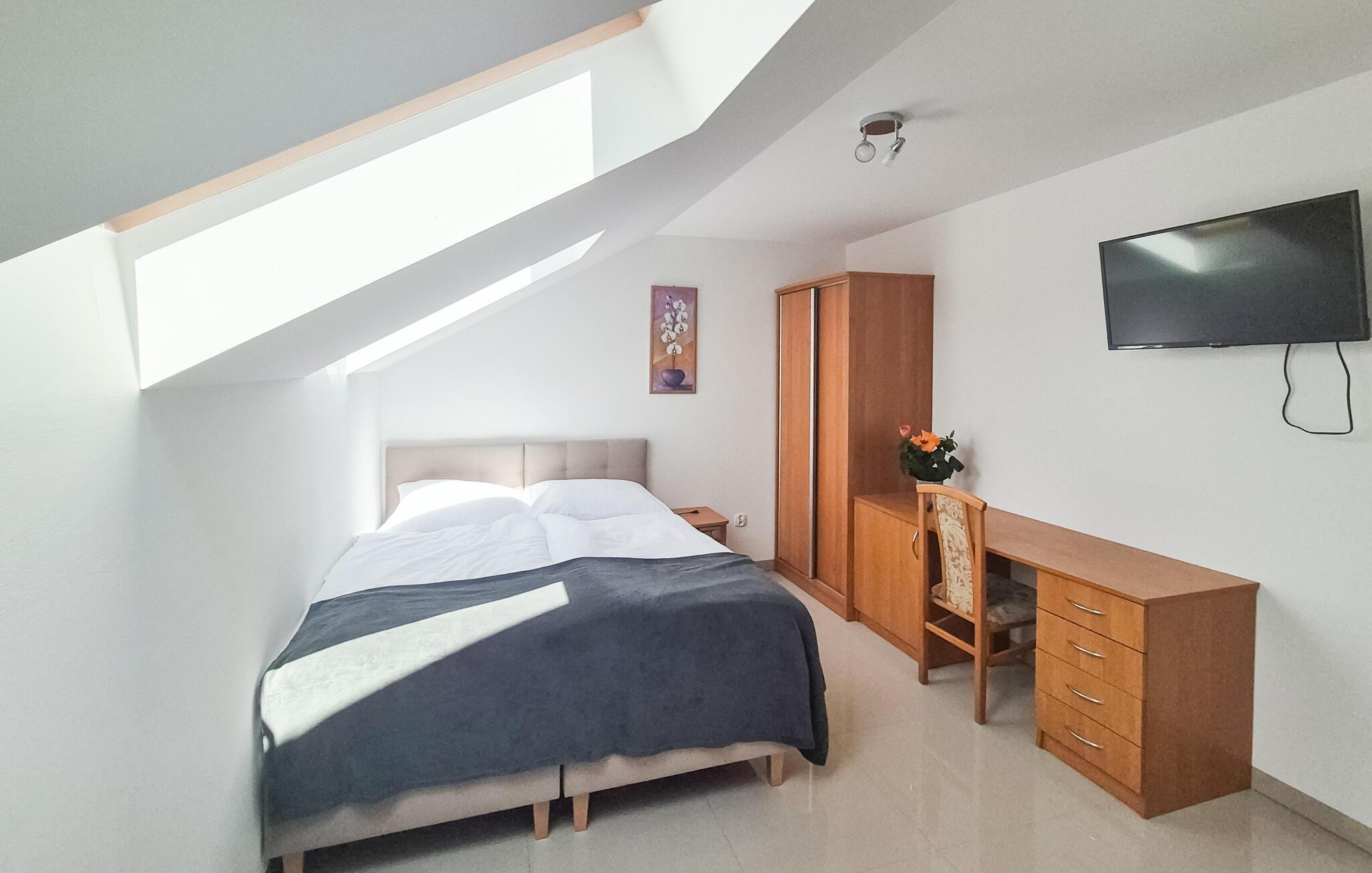 Denne indbydende, æyse ferielejlighed ligger i Bedzino, nogle få kilometer fra den polske kyst mod Østersøen. Nyd nogle afslappende dage her med kæresten, den lille familie eller jeres hunde. De velindrettede, flotte rum giver jer alt, hvad I skal bruge til at forsøde dagene, både når I laver mad, nyder dagens måltider, spiller brætspil eller bare slapper af.