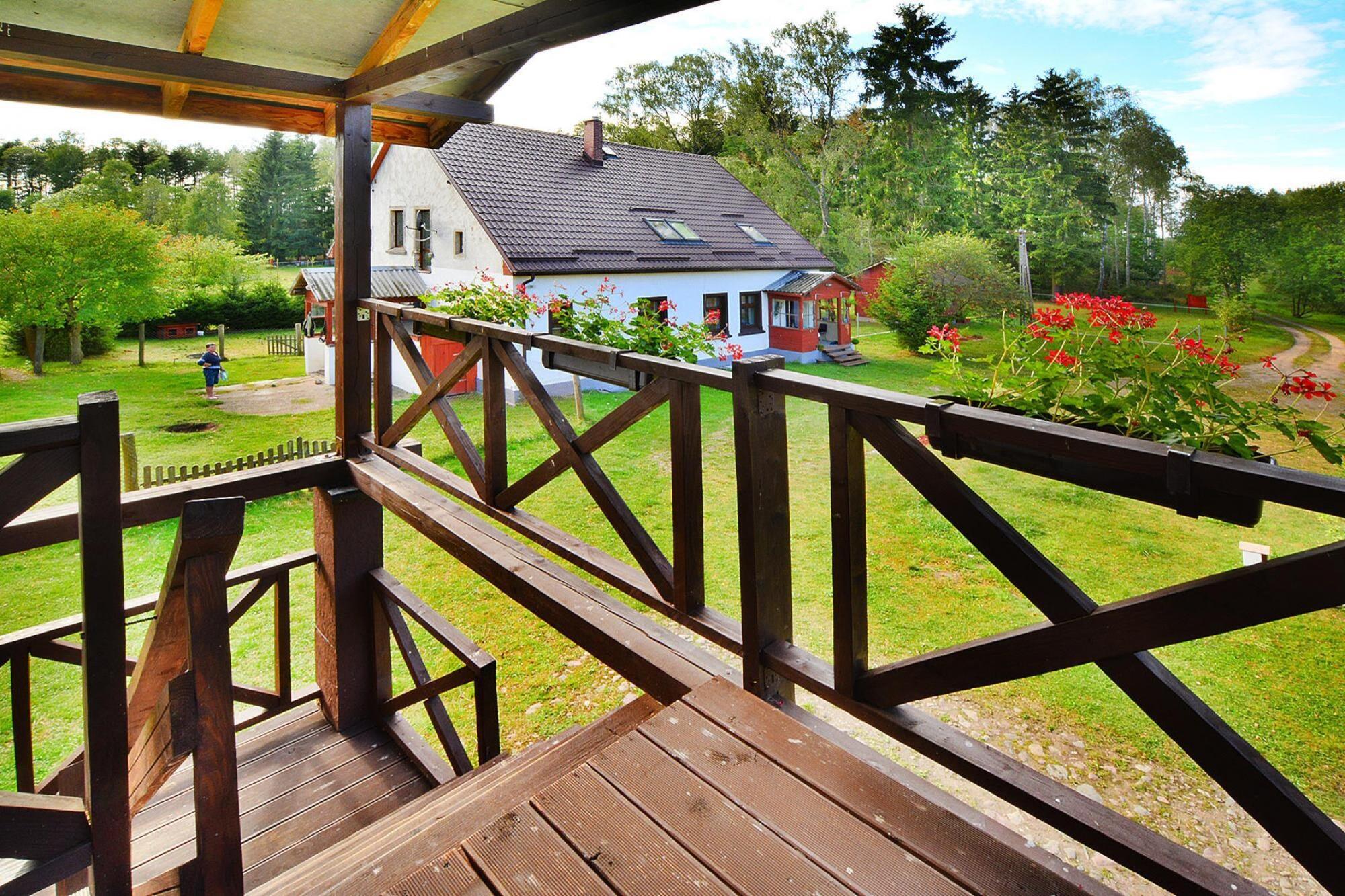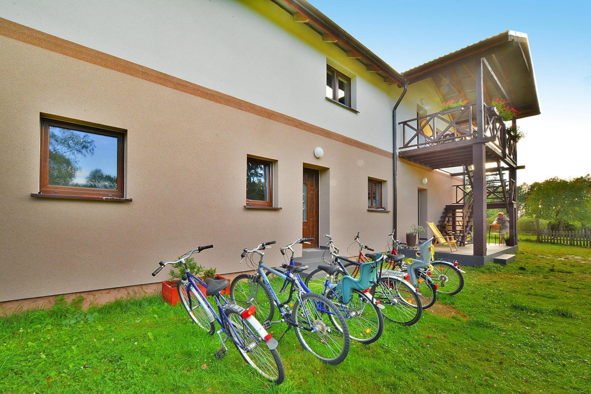 En oase af fred, midt mellem skove og enge, væk fra stress og jag, er der en velholdt ejendom med en unik ferielejlighed. En komfortabel, rummelig (185 kvm boligareal) ferielejlighed på første sal i en velholdt bygning. Det er forberedt til at rumme en gruppe på 10 gæster. Det har en selvstændig indgang udefra. Lejligheden består af en stue, 5 separate soveværelser og 2 badeværelser med bruser. Stuen er forbundet med et veludstyret køkken. Centralvarme. Udstyret inkluderer en vaskemaskine. Trådløst internet. Der er en overdækket terrasse og et stort område til leg og afslapning. Der er havemøbler, liggestole og grillfaciliteter. Der er legeplads og sikker parkeringsplads på det indhegnede område. En attraktion for børn er opdræt af huskyer (i en separat del af området). Ønsker du at opleve området fra et unikt perspektiv, tilbyder ejeren hundeslædeture (mod betaling). Du kan også leje en quad bike og tage på opdagelsestur på egen hånd. Prisen for opholdet inkluderer: sengelinned, håndklæder, el-, vand- og gasforbrug, slutrengøring, internet, parkering, barneseng og høj stol (forudgående reservation nødvendig). Den største attraktion er den uspolerede natur, der omgiver habitatet. Der er gode forhold til at vandre og cykle rundt. Stavstave og cykler kan lejes gratis af ejeren. Ikke langt væk (ca. 1,8 km) ligger et stutteri, hvor man kan tage rideundervisning. En større by (Bialy Bór) ligger cirka 5 km væk. Byen har et rigt gastronomisk og kommercielt udbud. Desuden er der to smukke søer i Bialy Bór. På en af ??dem (Lake Lobez) er der en sandstrand og leje af vandudstyr.