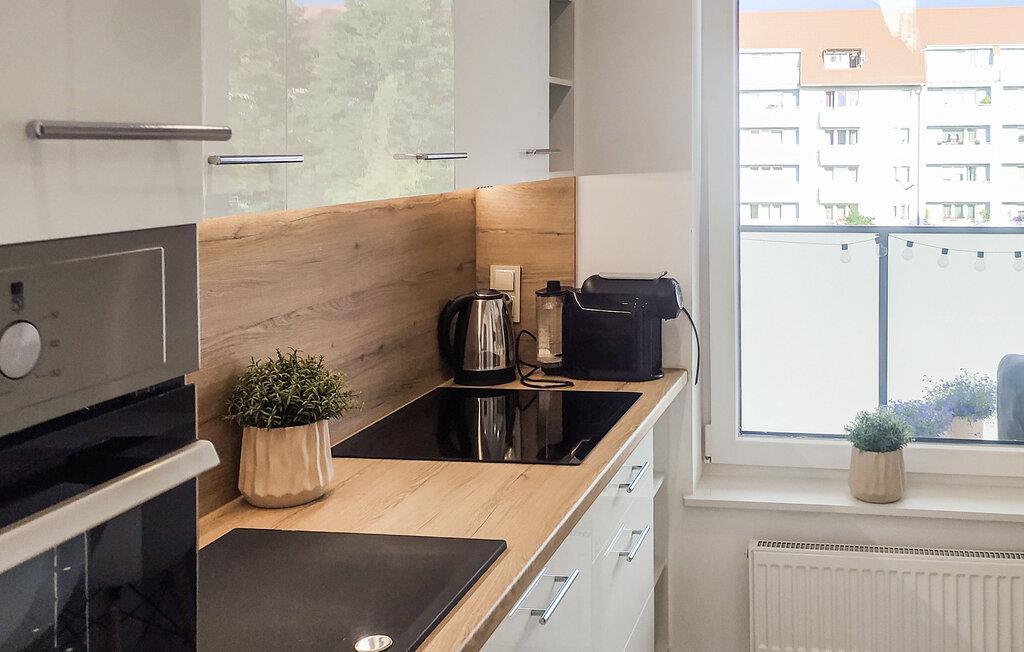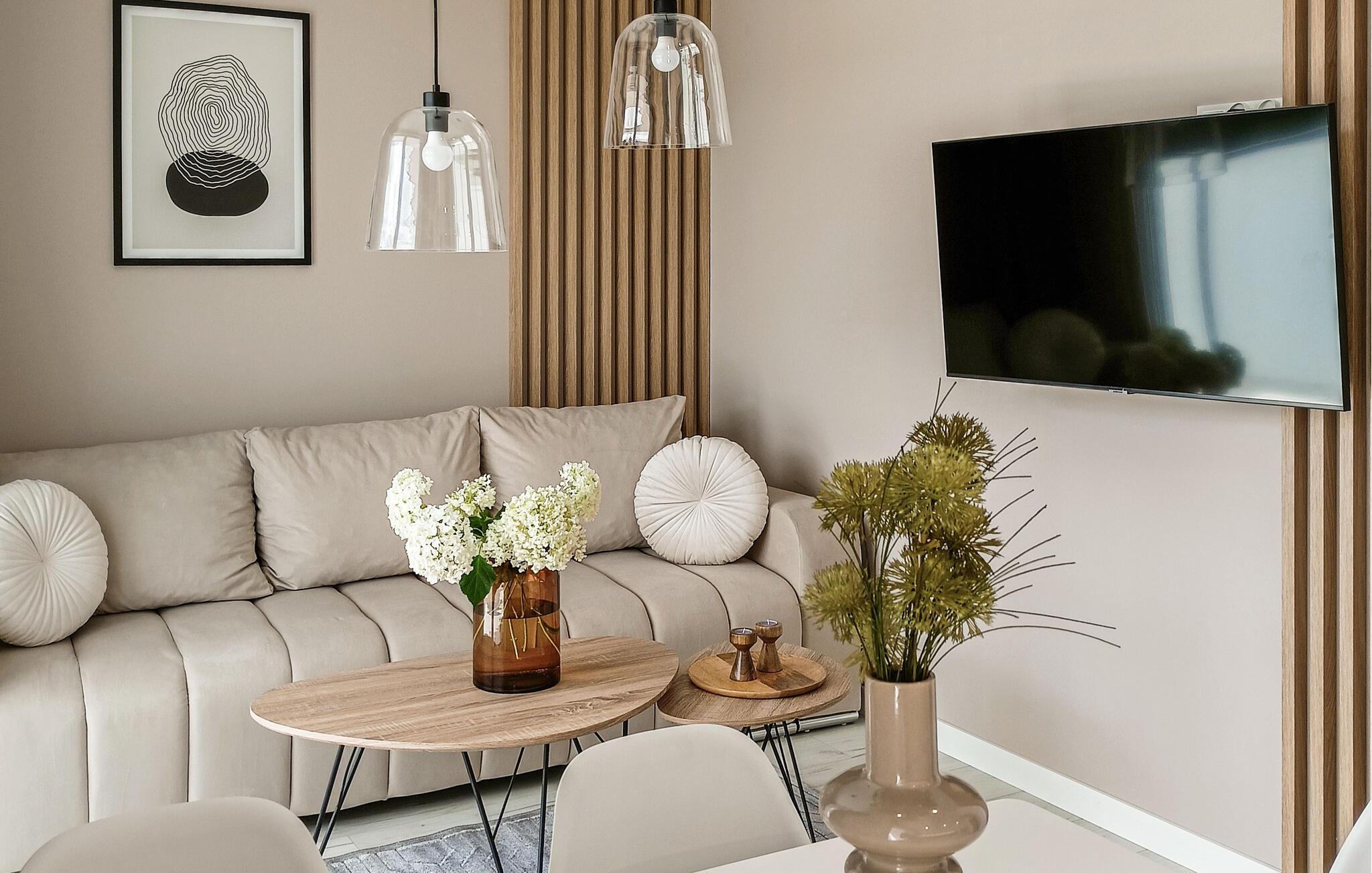 Velkommen til den moderne og komfortable lejlighed, der har en fremragende beliggenhed til en ferie med mange spændende udflugter og aktiviteter i naturen. Boligen er stilfuldt indrettet i bløde farveskalaer, og trods sin klejne størrelse får I mange gode faciliteter, der gør det nemt at for jer at slappe af før og efter dagens muntre leg. Efter aftensmaden kan I smække fødderne op i sofaen med snacks og en god film på tv'et, mens I lægger planer for de kommende dage.