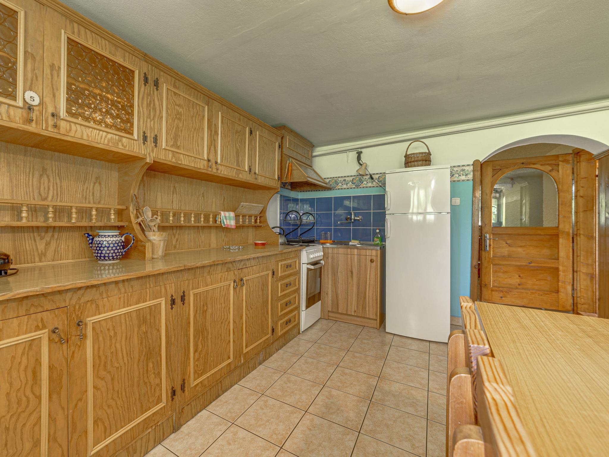 5-room apartment 100 m2 on 2 levels. Open dining room with open-hearth fireplace. Large kitchen (4 hot plates) with dining table, radio. Upper floor: 1 room 9 m2 with 1 french bed (150 cm). Interconnecting room 30 m2 with 2 beds (90 cm), 1 double sofabed, shower/WC and satellite TV. Exit to the garden, to the terrace. 1 room 15 m2 with 1 sofabed (90 cm), 1 french bed (140 cm), bath/WC. 1 room 20 m2 with 1 x 2 bunk beds, 1 french bed (200 cm), shower/WC. Exit to the balcony. Balcony, west facing position, terrace, south facing position. View of the mountains. Facilities: Internet (WiFi, free). Parking at the house. Please note: maximum 1 pet/ dog allowed. Private entrance, smoke alarm.