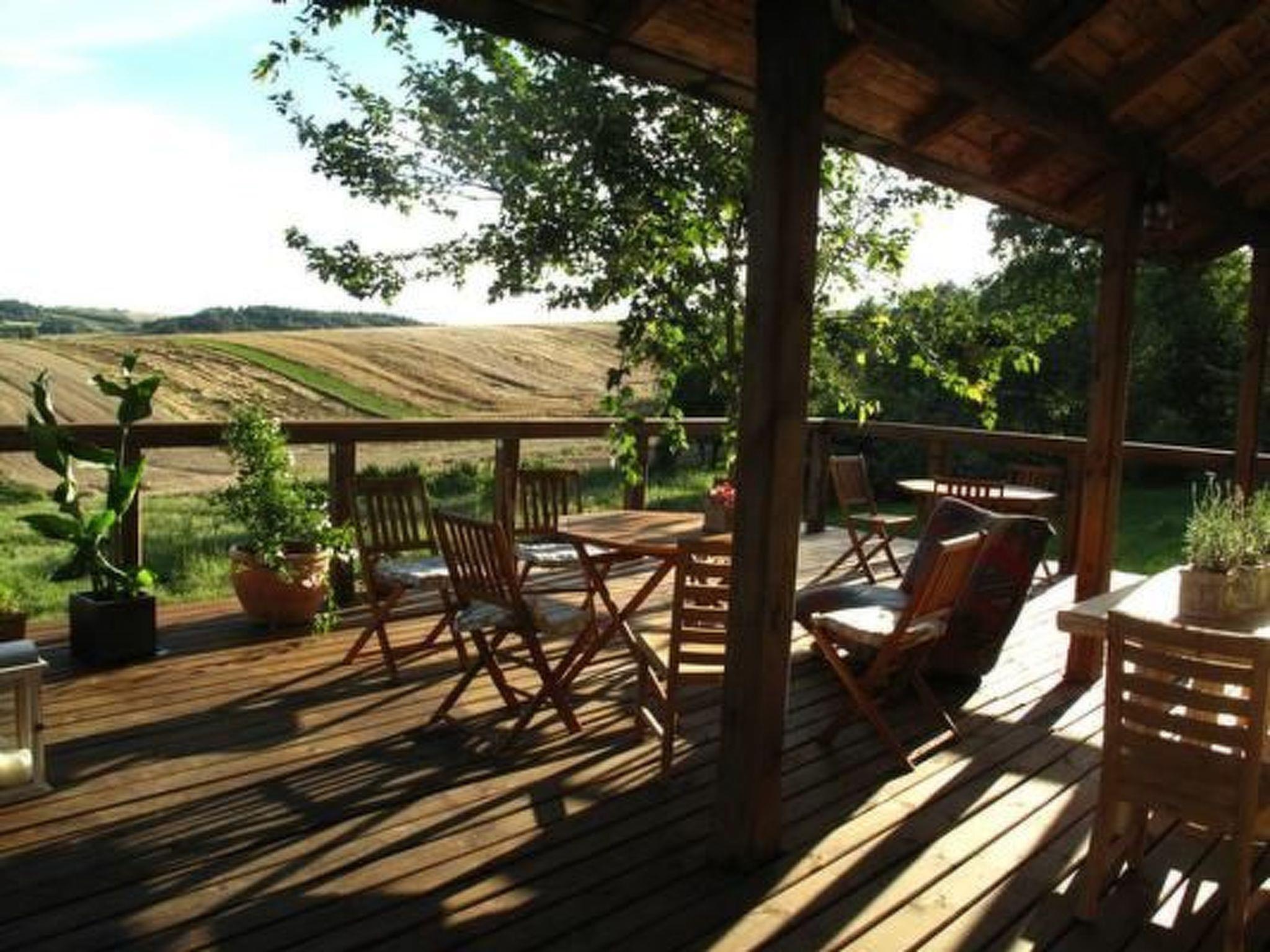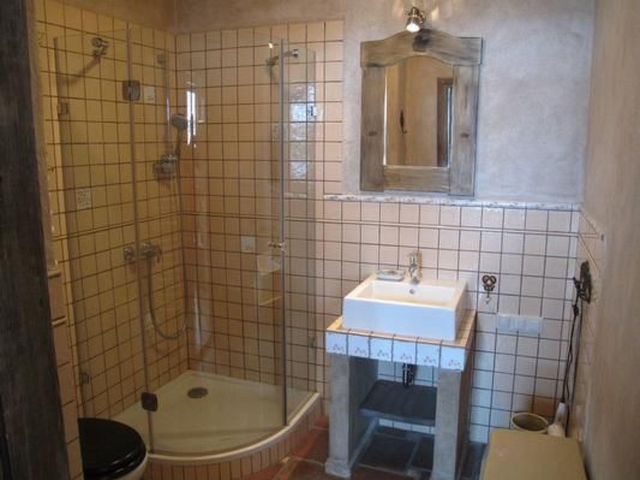 You will stay in a country house, which was built in 1910 and extensively renovated in 2010. The house is located in a quiet area on the edge of the village. The century-old history of the house is at your fingertips; On the one hand, its furnishings are cosy and rustic, but on the other hand, it offers guests all modern conveniences. On the ground floor there is a living room with a fully equipped kitchen. From the living room, sliding doors lead to a huge terrace overlooking the fields and the beautiful hilly landscape. Eating a meal at the dining table in the dining room or on the open terrace, you can imagine you are at home in remote, magical Tuscany. The house has three 1- and 2-bedroom flats, each with its own bathroom. On hot days you can cool off in our swimming pool or relax on a sun lounger in the shade, enjoying the view of the gently hilly Tuscan landscape. For the little ones, there is a playground with swings and a sandpit, while older guests can play volleyball, cricket or boules. Avid tennis players have the option of competing against each other on the adjoining earth court (for a fee) upon request.