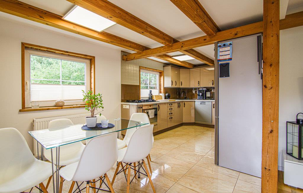 Dette smukke træhus ligger nord for Gdansk, ikke langt fra de dejlige sandstrande ved Østersøkysten. Indenfor venter et indbydende og praktisk interiør på jer, fuldt udstyret til et behageligt ophold. Tilbring hyggelige timer med familien i stuen, se en sjov film og varm jer foran pejsen på kølige aftener. Udnyt den indhegnede ejendom, som byder på gode faciliteter for store og små. Trampolinen, sandkassen og legetøjet inviterer jer til at have det sjovt udendørs og vil med garanti glæde jeres børn. Lad de små og jeres firbenede venner slå sig løs, mens I slapper af på terrassen under parasollen med en kold forfriskning.