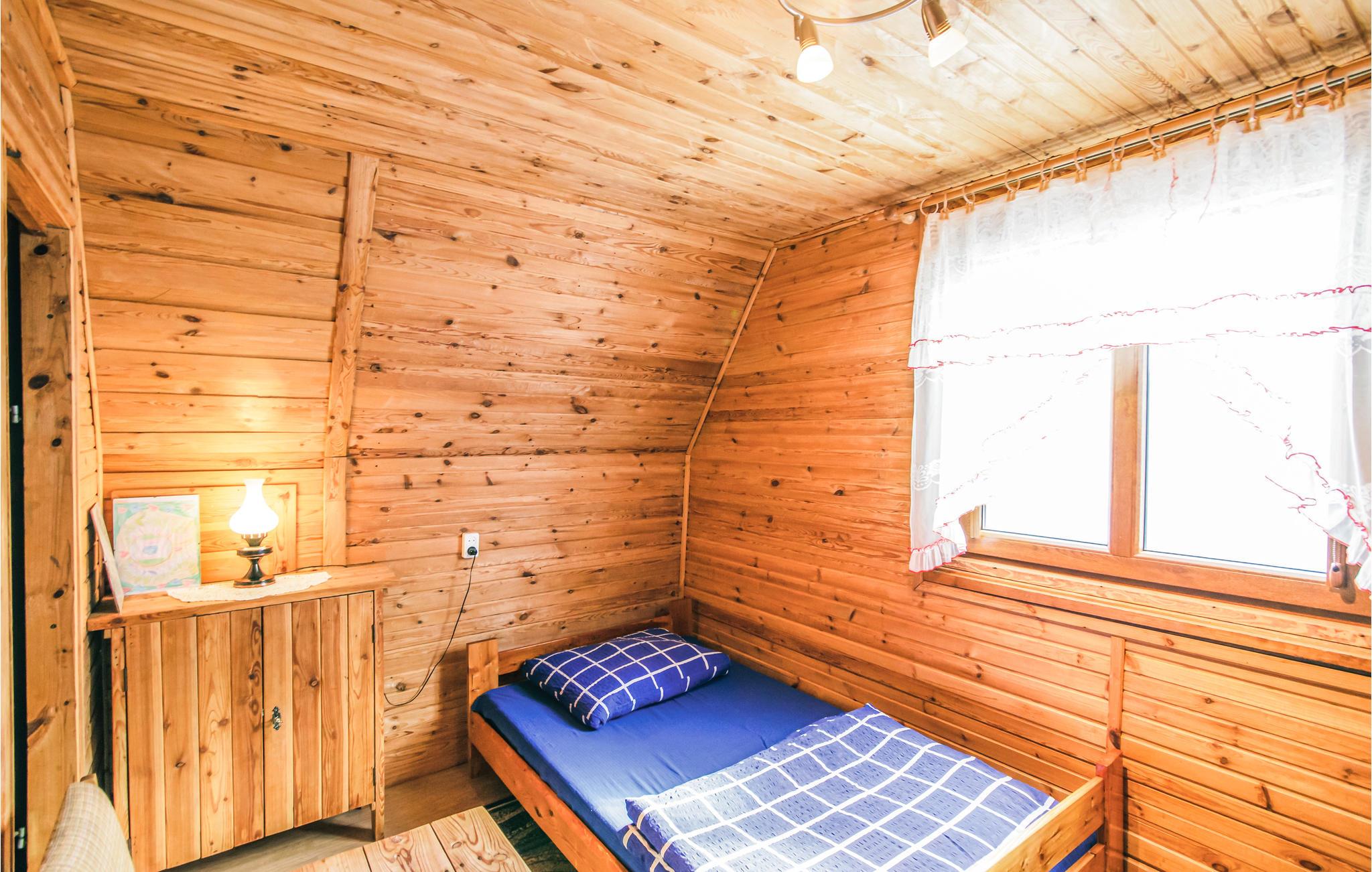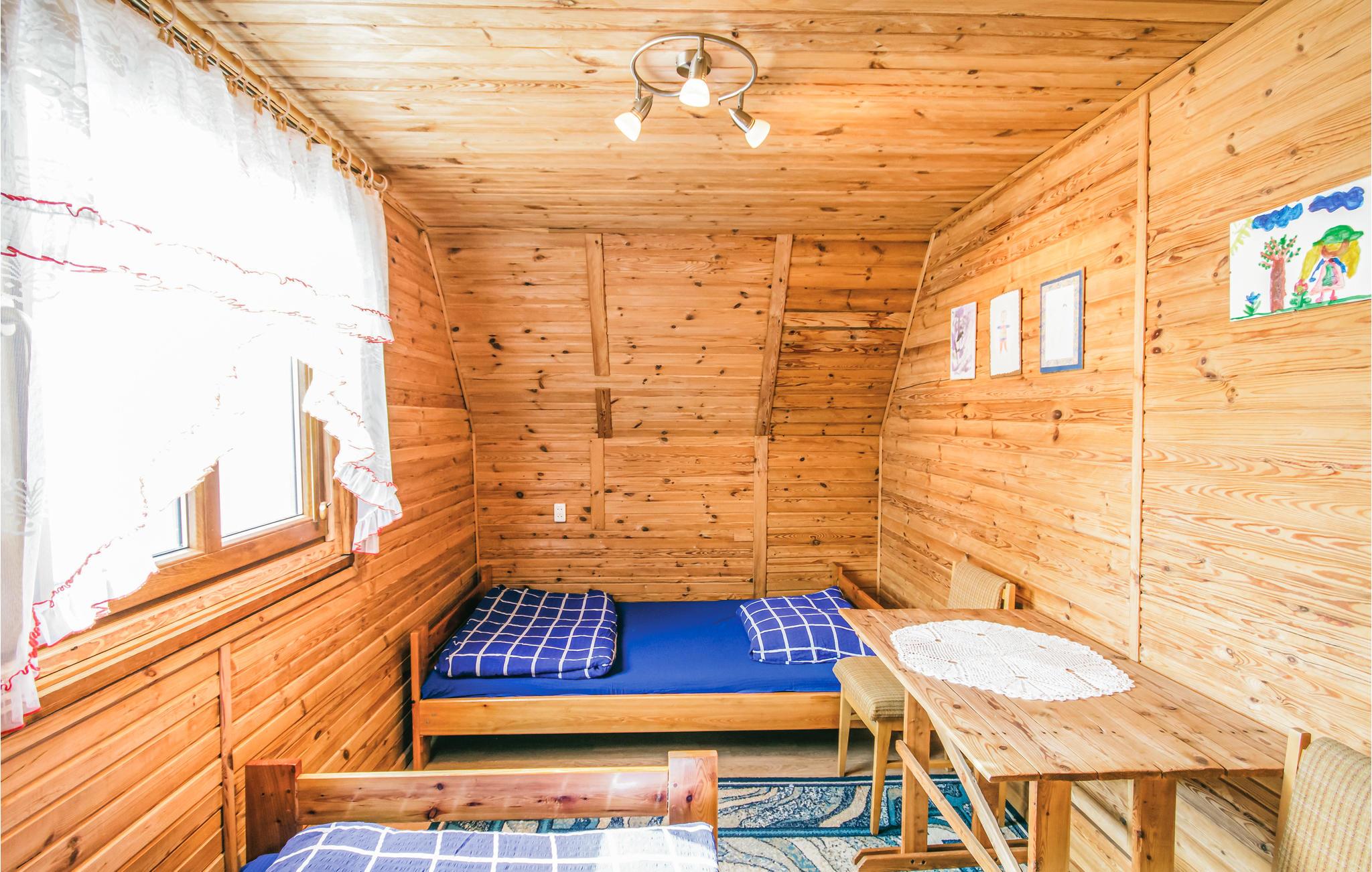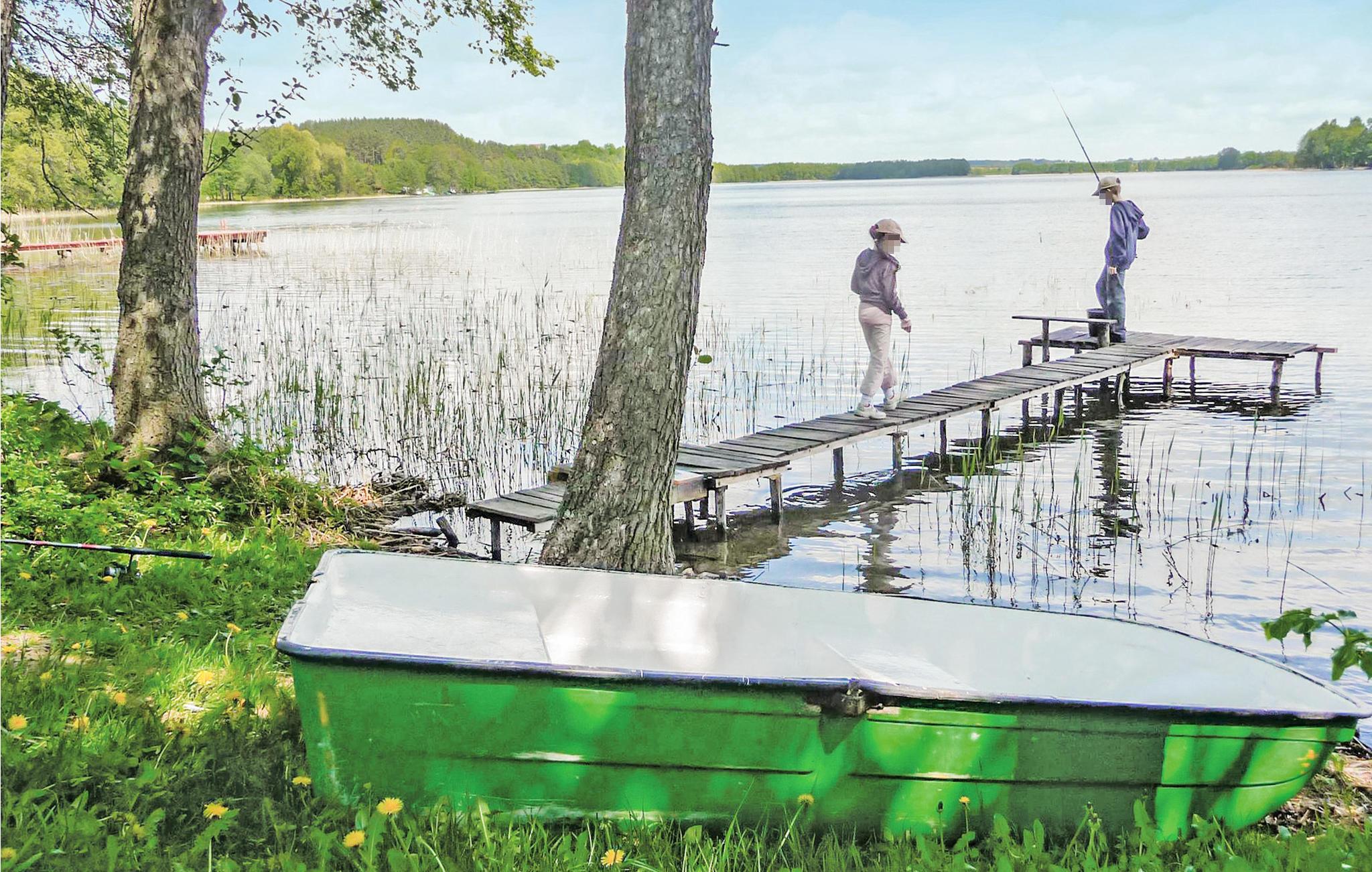 Rummeligt og solidt indrettet feriehus, bygget af træ. Huset ligger i dejlige omgivelser på en stor grund i nærheden af vand. I kan leje sejlbåd mod betaling. I bor i grønne frodige omgivelser og i Masuren er der mange muligheder for at slappe af. Den nærliggende sø hedder Juksty. Marsuren er det helt rigtige sted at opholde sig for alle der holder af at være I og på vandet, her er der mange søer, bække og floder. Et rent paradis for alle former for vandsport.