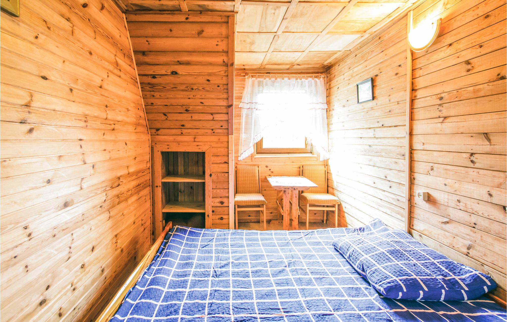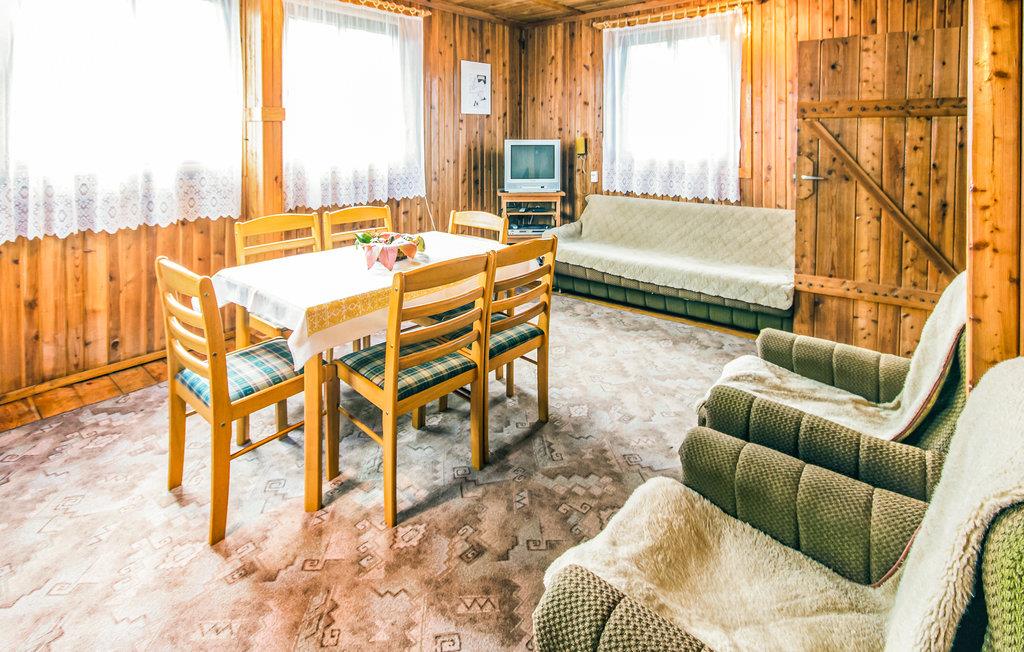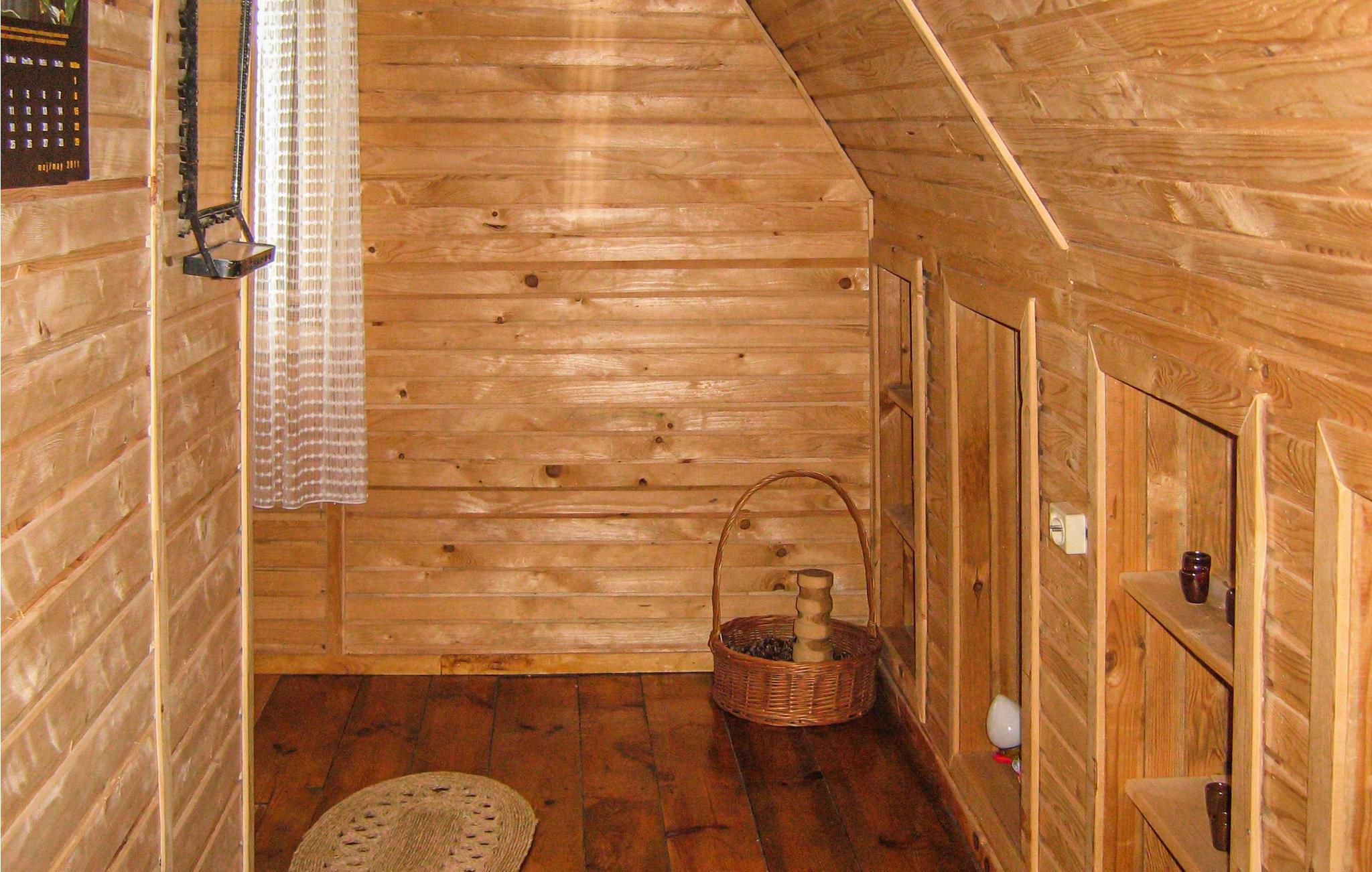 Rummeligt og solidt indrettet feriehus, bygget af træ. Huset ligger i dejlige omgivelser på en stor grund i nærheden af vand. I kan leje sejlbåd mod betaling. I bor i grønne frodige omgivelser og i Masuren er der mange muligheder for at slappe af. Den nærliggende sø hedder Juksty. Marsuren er det helt rigtige sted at opholde sig for alle der holder af at være I og på vandet, her er der mange søer, bække og floder. Et rent paradis for alle former for vandsport.