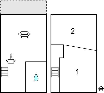 Dobbelthus på en lukket grund lige ud til søen. Her er der både balkon og overdækket terrasse.