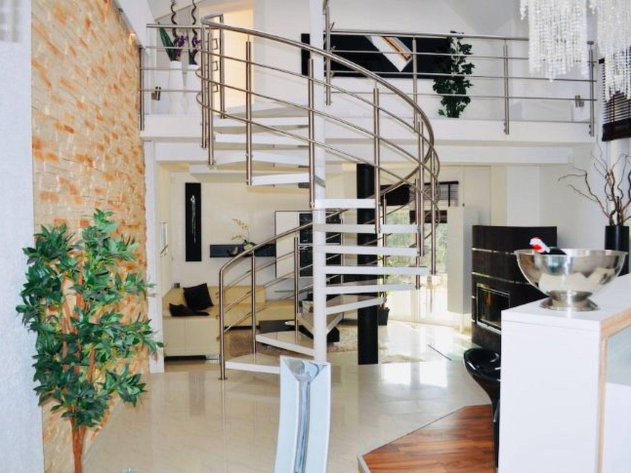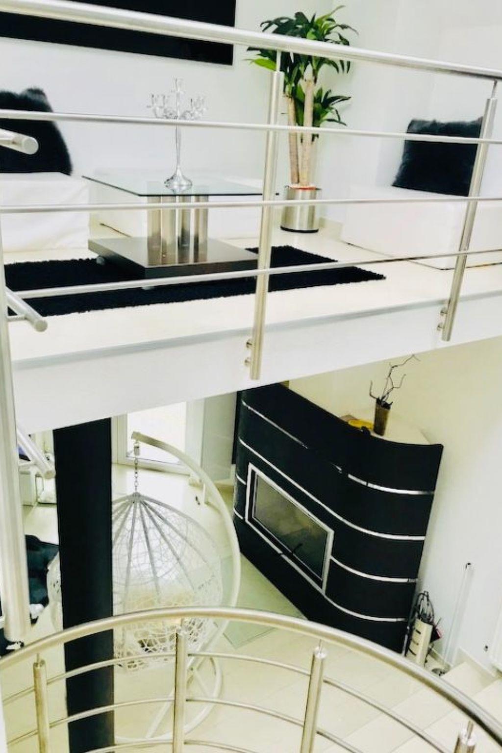 Inside, you will find an exclusive interior that leaves nothing to be desired. The light-flooded living room with modern leather sofa and fireplace promises cosy evenings, while a fully equipped kitchen with lounge bar invites you to linger. There is also a modern bathroom on the ground floor. The two cosy bedrooms on the upper floor and the impressive interior balcony not only offer priceless views, but also a retreat for rest and relaxation. Modern architecture, high-quality designer furniture and a 5.1 home cinema system round off the interior experience.