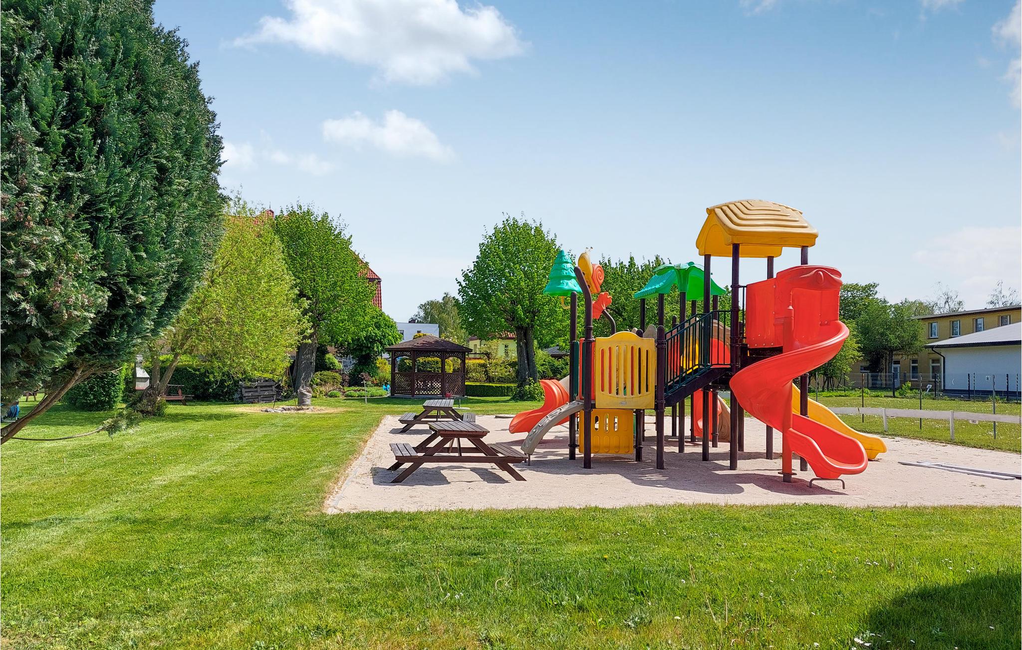 Dette smukke feriehus ligger tæt på stranden i feriestedet Darlówko ved Østersøen. Nyd din ferie med din familie i dette smagfulde og indbydende feriehus. Det smukke hus med moderne indretning strækker sig over to etager og tilbyder dig den perfekte balance mellem fællesareal og rolige soveværelser i et hyggeligt rum. Tilbered dine yndlingsretter i køkkenet eller leg i haven ved spisebordet. Du kan fortsætte underholdningsprogrammet i haven. Se dine børn få ferievenner, mens de leger på legepladsen, og om aftenen kan du bruge den fælles grill og picnicbordet til lækre middage. Tilbring dine dage på den nærliggende Østersøstrand og leg i timevis med dine børn i vandet og sandet. Det er også værd at besøge den nærliggende Darlowo, berømt for sine monumenter og charmerende gamle gader. Glem ikke at tage på krydstogt med en af områdets turistbåde eller fiskerbåde. Cykelture til de nærliggende søer vil også love dig store naturoplevelser!
