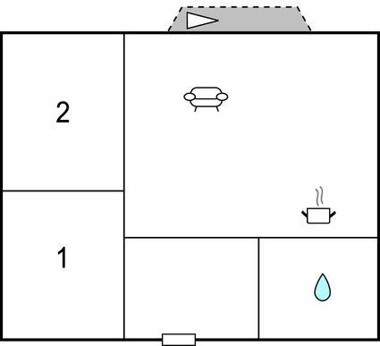 Opholdsstue/køkken - 1 Soveplads. (Sofa, madras eller lignende).