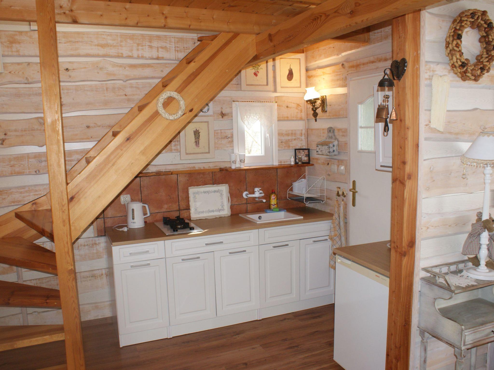 The ground floor of the cottage consists of a room and a kitchen (fridge, cooker, sink, dishes, etc.) and a bathroom. The living room is equipped with a wardrobe, a sofa (fold-out sofa), a TV, armchairs and other small furniture to ensure full comfort of rest.