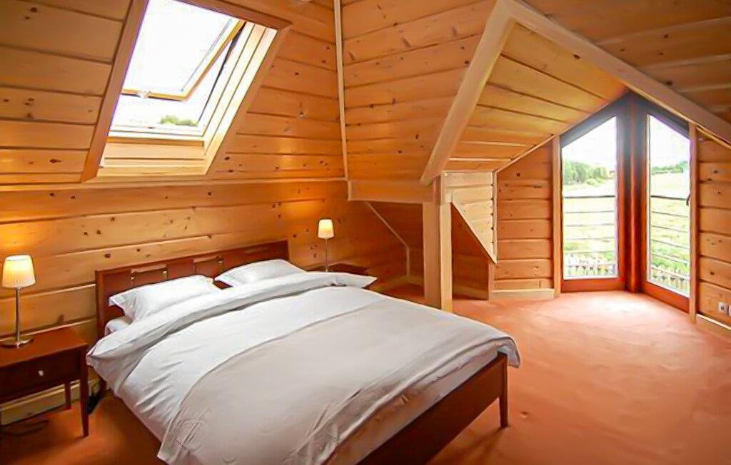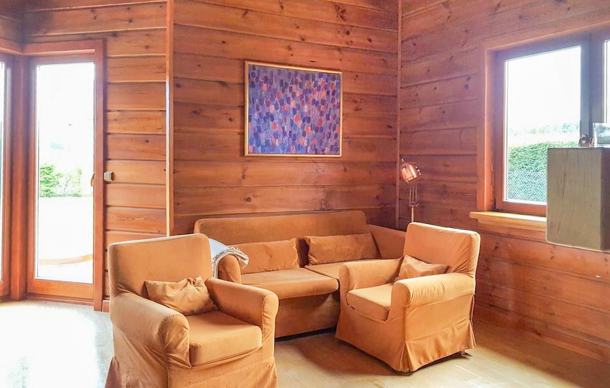 Nyd afslappende dage i dette rummelige træhus med pool og sauna.