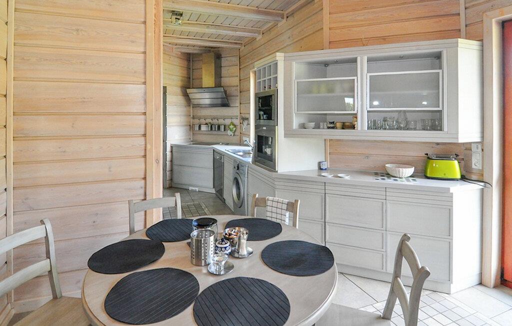 Træd indenfor og oplev et feriehus, der øjeblikkeligt fremkalder en følelse af komfort med sin varme træarkitektur og rigelige naturlige lysindfald. Den åbne opholdsstue byder jer velkommen med komfortable lænestole, en sofa og en pejs i natursten, der skaber en hyggelig atmosfære på kølige aftener. Læn jer tilbage, læs en god bog eller tilbring kvalitetstid sammen med at se fjernsyn. Brug det store spisebord til afslappende måltider eller sjove spilleaftener. Tilbered jeres yndlingsretter med lethed i det lyse køkken med rigelig opbevaringsplads. Bagefter kan I forkæle jer selv med lidt afslapning i saunaen og lægge hverdagen bag jer.
