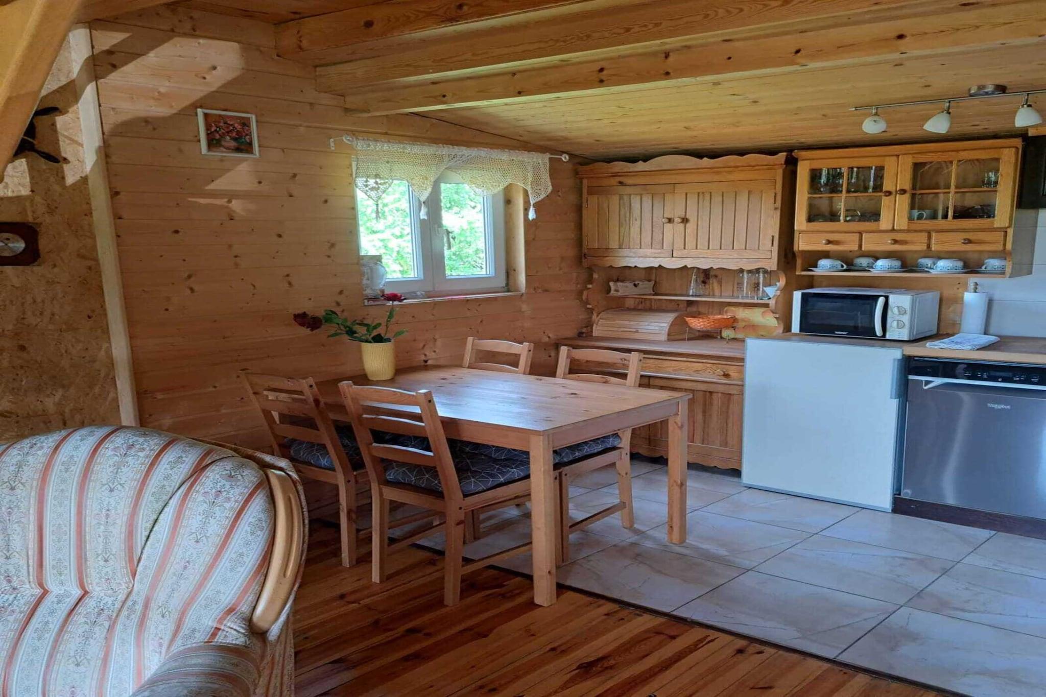 Hyggeligt træhus med pejs på en skøn, rummelig have/naturgrund nær Koscierzyna. Ideel til familier med hunde. Nyd freden og slap af i hængekøjen. Og kan du lide det mere aktivt, kan du udforske området på en cykeltur eller ro ud på søen i en robåd. Regionen kaldes også det kashubiske Schweiz og byder på et smukt skov- og sølandskab. Særligt attraktivt for naturelskere og dem, der søger afslapning Aktiviteter i nærheden: Besøg damplokomotivmuseet i Koscierzyna. Byen har også en smuk kerne med et hovedtorv og gode restauranter. Der er endda musikfestivaler om sommeren. I Lubiana har keramikfabrikken af samme navn en lagerforretning. Andre seværdigheder er i Stezyca, omkring 20 km væk (den længste bræt i verden, et hus på hovedet).