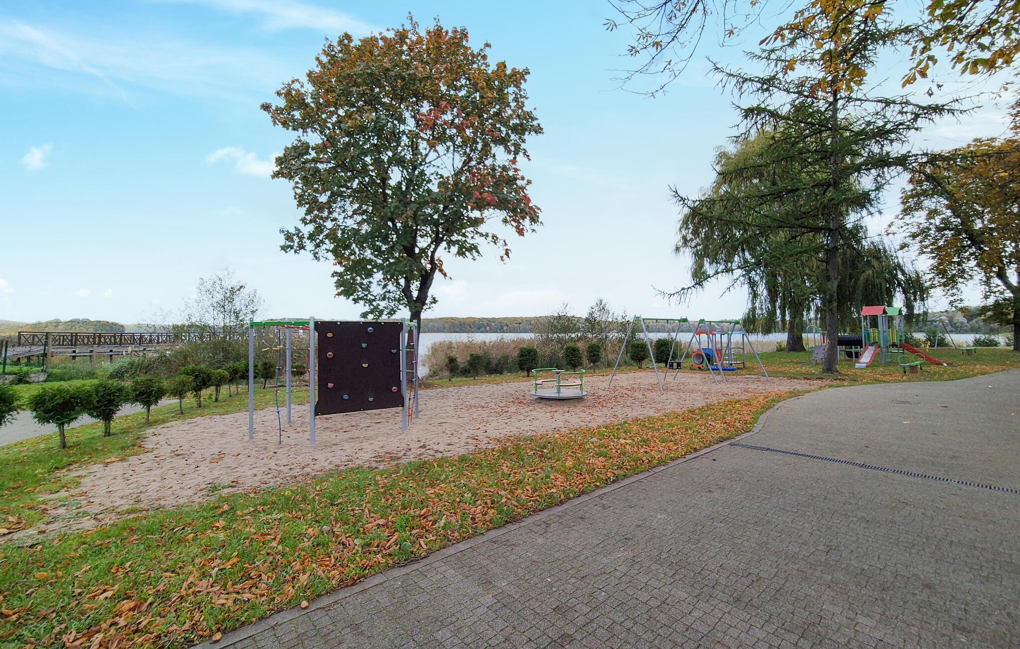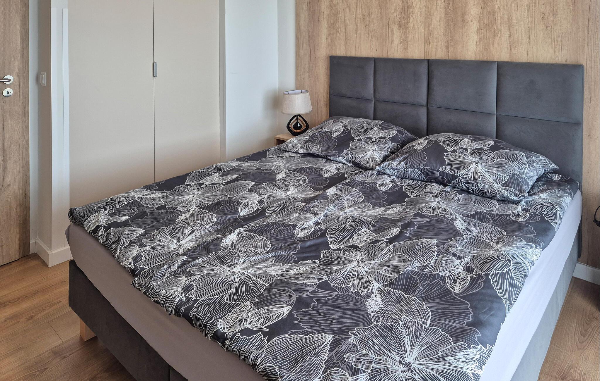 Denne moderne ferielejlighed byder på stilfuldt design og varme træelementer, der skaber en behagelig atmosfære. Den lyse opholdsstue tilbyder komfort og hygge, og på balkonen kan du nyde udsigten over søen – et perfekt sted at starte eller afslutte feriedagene afslappet. Komplekset har desuden en pool og et wellnessområde med sauna og liggeområde, ideelt til en afslappende pause.