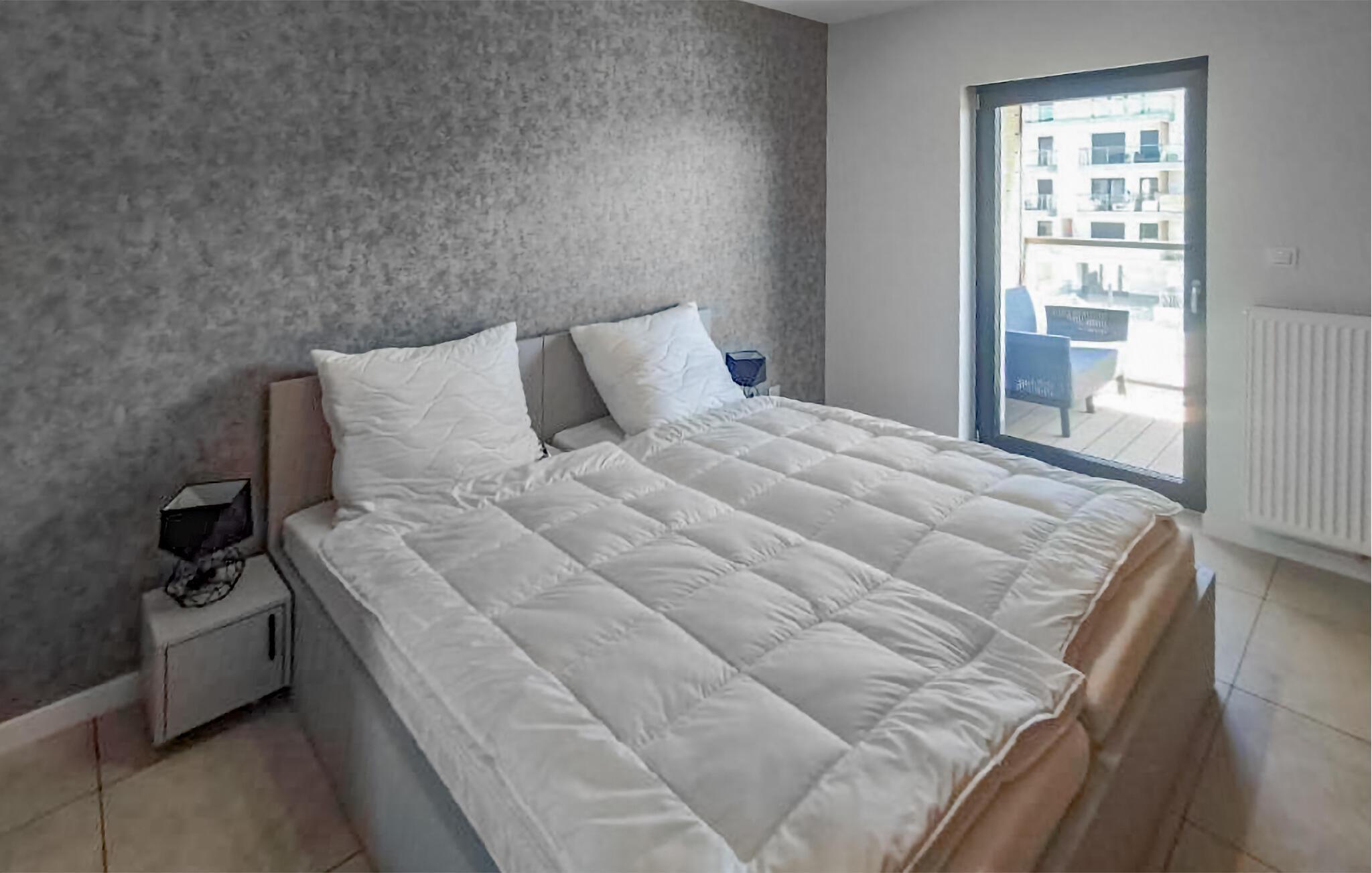 Velkommen til denne komfortable lille ferielejlighed, som er placeret i en luksuriøs etageejendom i første række til havet. Den flotte, enkle indretning kombineret med farverige detaljer giver jer skønne rammer til at slappe af. Boligen er godt indrettet til en familie eller to vennepar, der holder ferie sammen. Ud over den skønne lejlighed finder I en altan, hvor I kan nyde dagens måltider og udsigten over Østersøen.