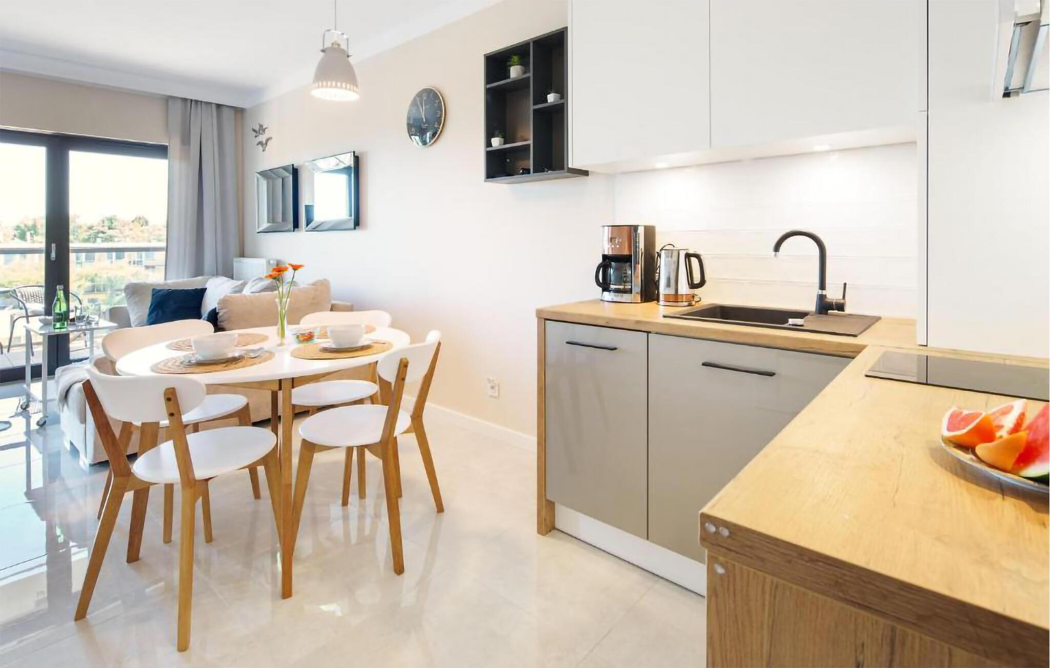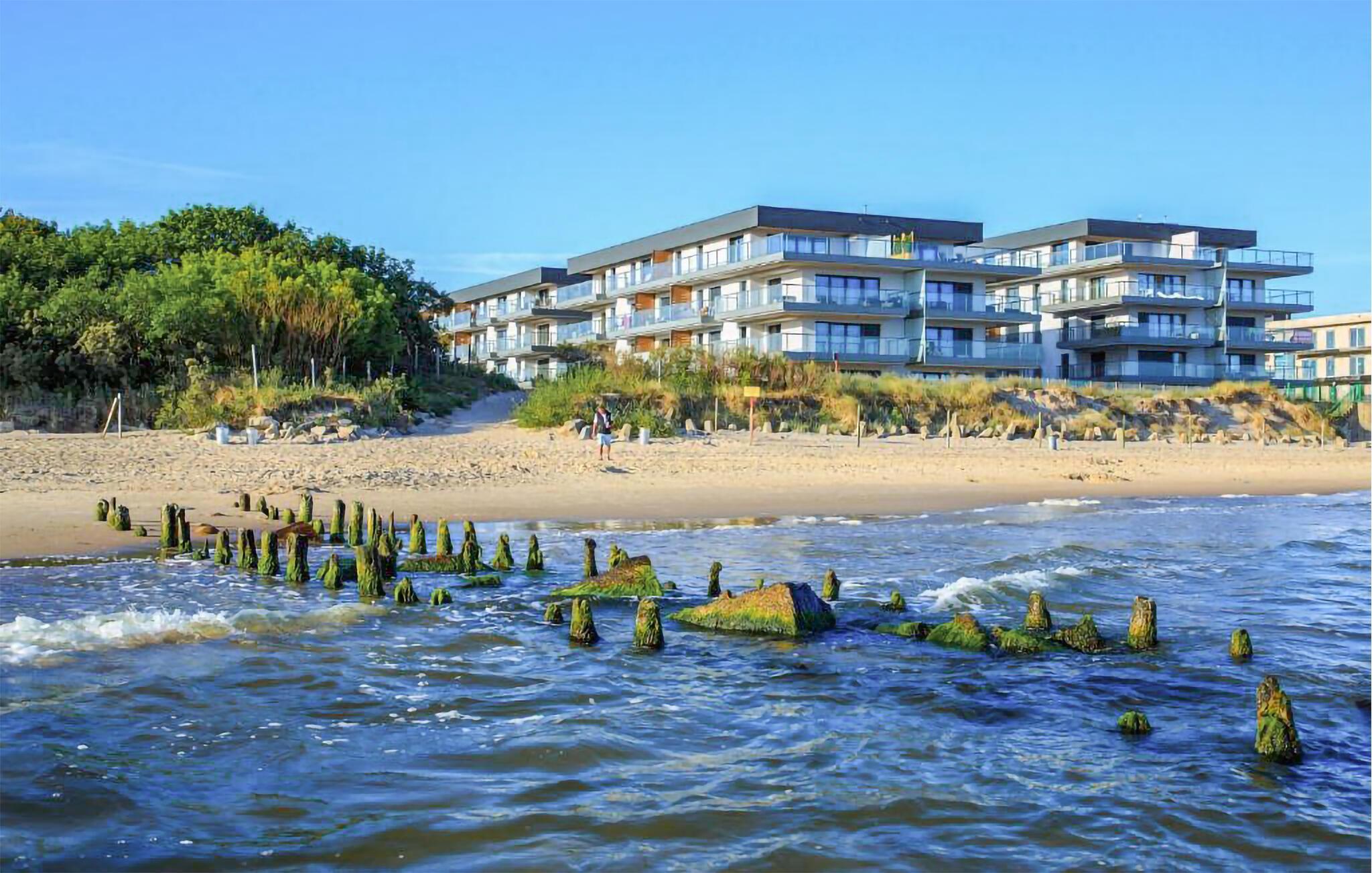 Velkommen til denne komfortable og kompakte ferielejlighed i en luksuriøs etageejendom i første række til havet. Den indbydende indretning og den kærlige udsmykning giver jer en god -oplevelse. Her kan I slappe af med familien eller opleve en afslappende ferie med et par venner. Udover den skønne lejlighed finder I en altan, hvor I kan spise jeres måltid og nyde udsigten over Østersøen.